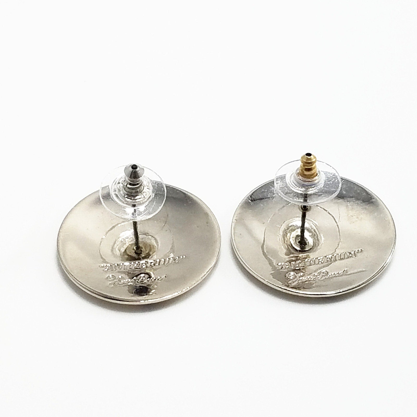*Condition: Great vintage condition. May see signs of wear under magnification. The earrings are in amazing condition. The mirror like silver tone shows me and my camera in its reflection. The earring backs have one gold tone and one silver tone push back closures.