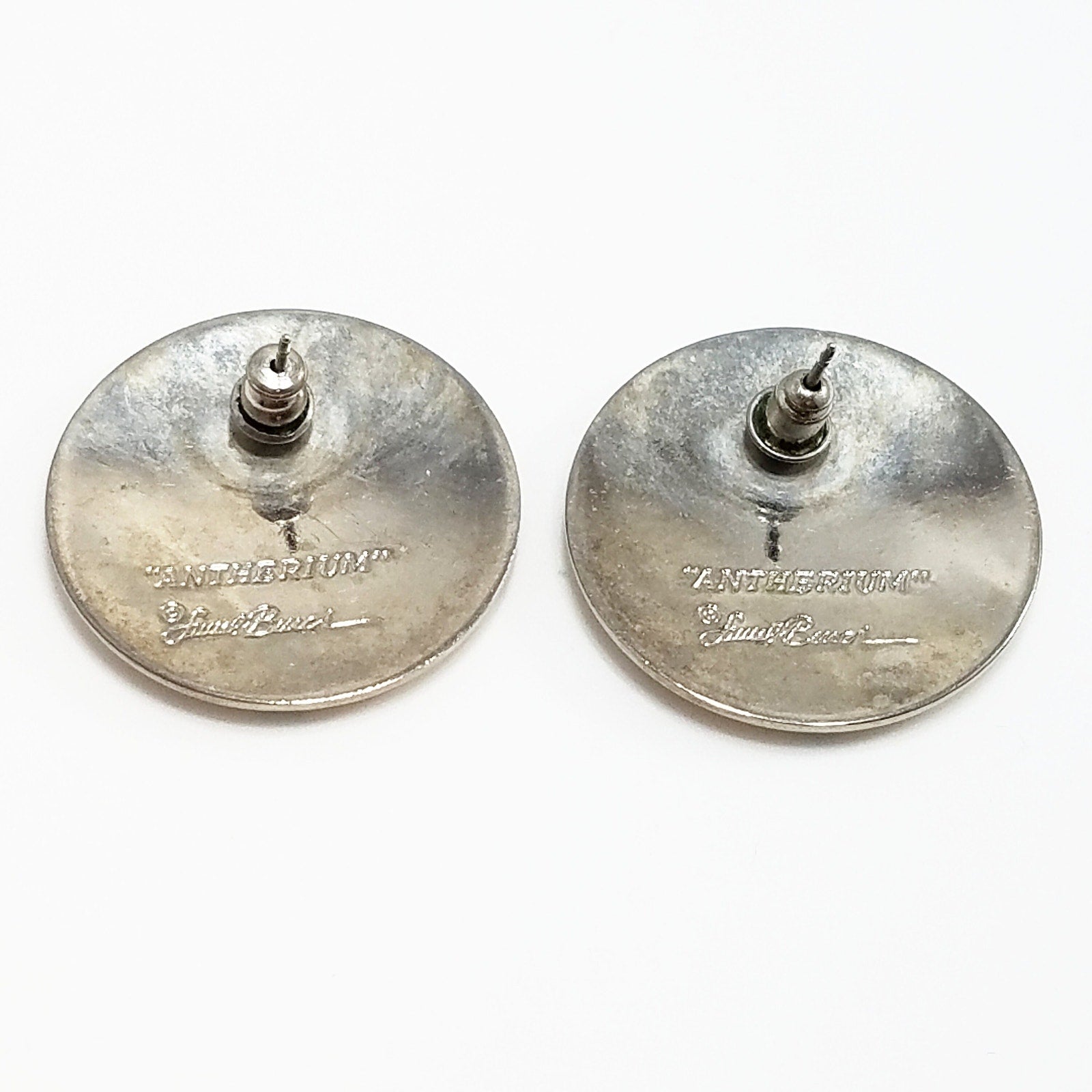 Vintage Laurel Burch "Antherium" Earrings, Rhodium Plated, 1980s Vintage Jewelry