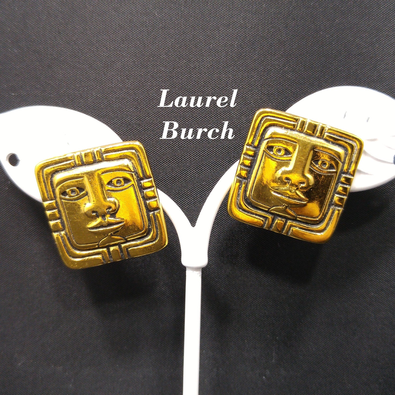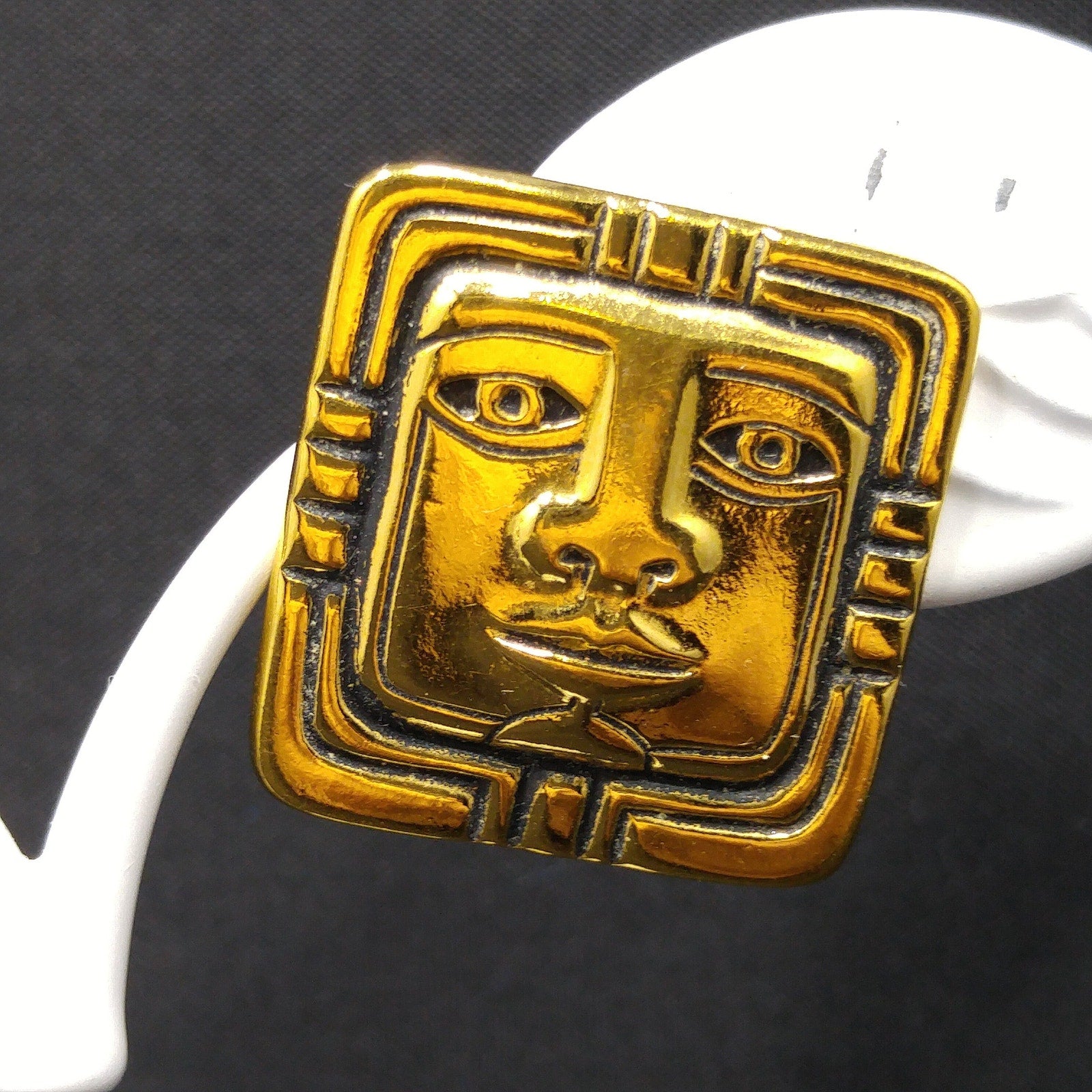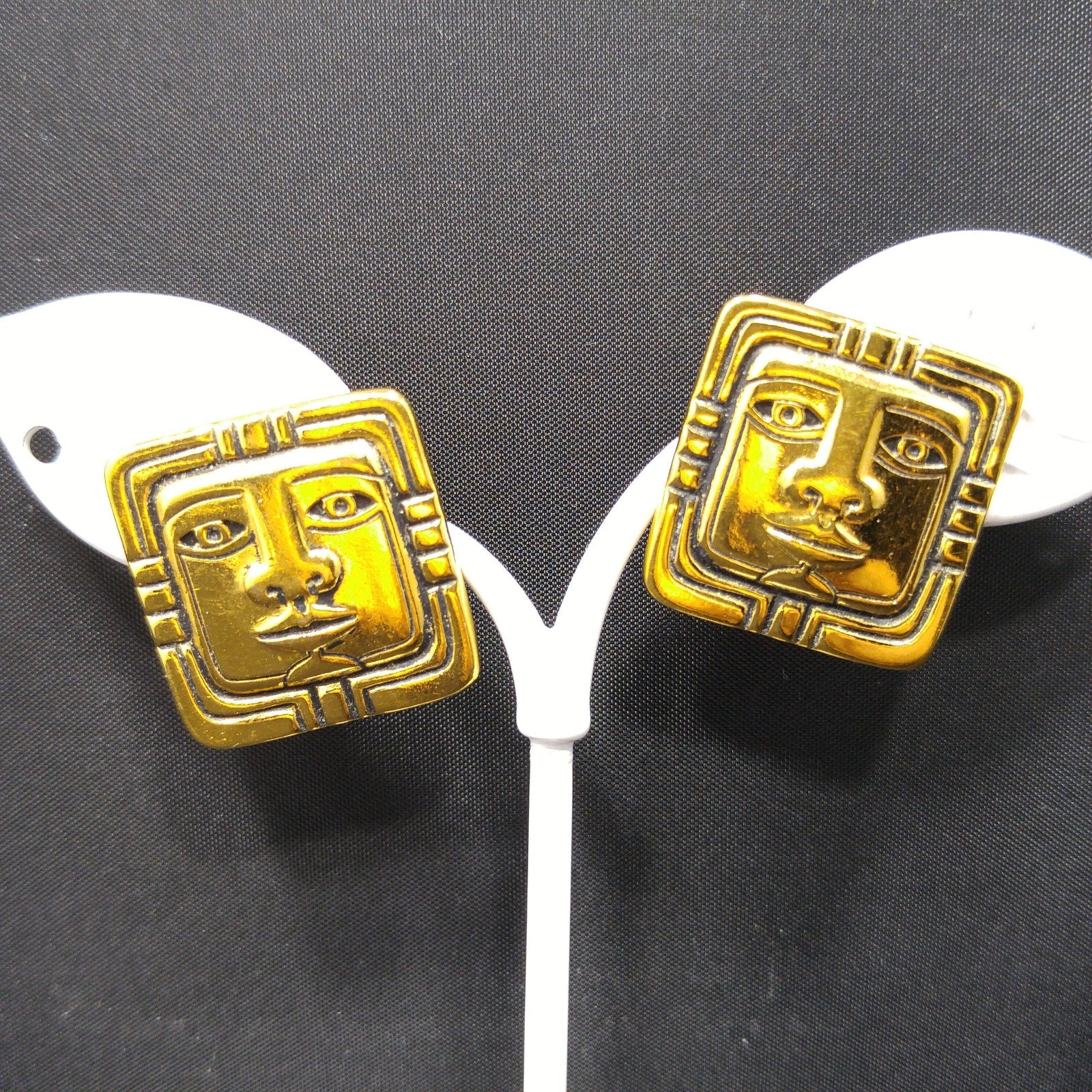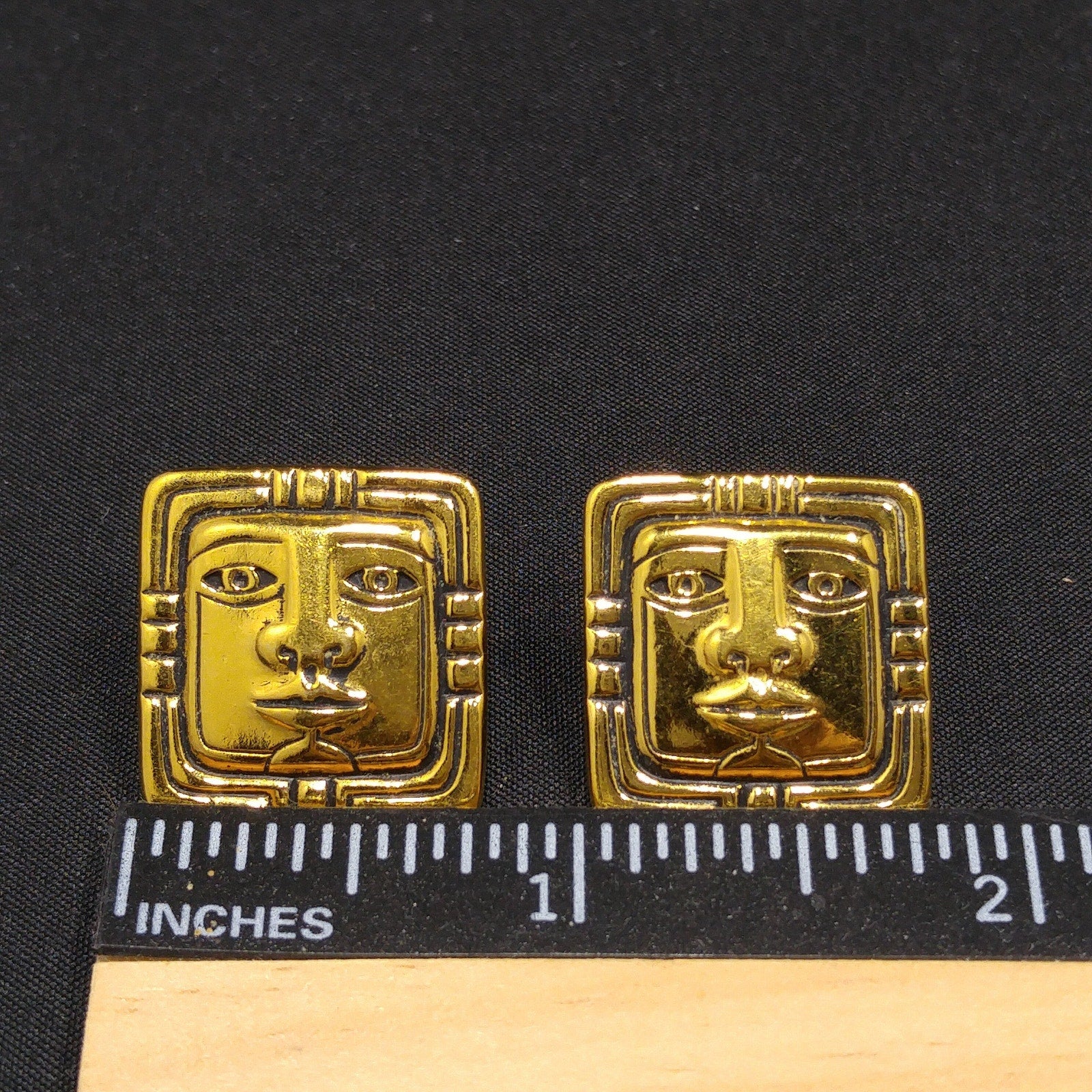 *Description: This is a great pair of Laurel Burch Aztec face post earrings which are gold plated from the 1980s. These earrings are in great condition and would be a great addition to your vintage jewelry collection or make a great vintage gift!
