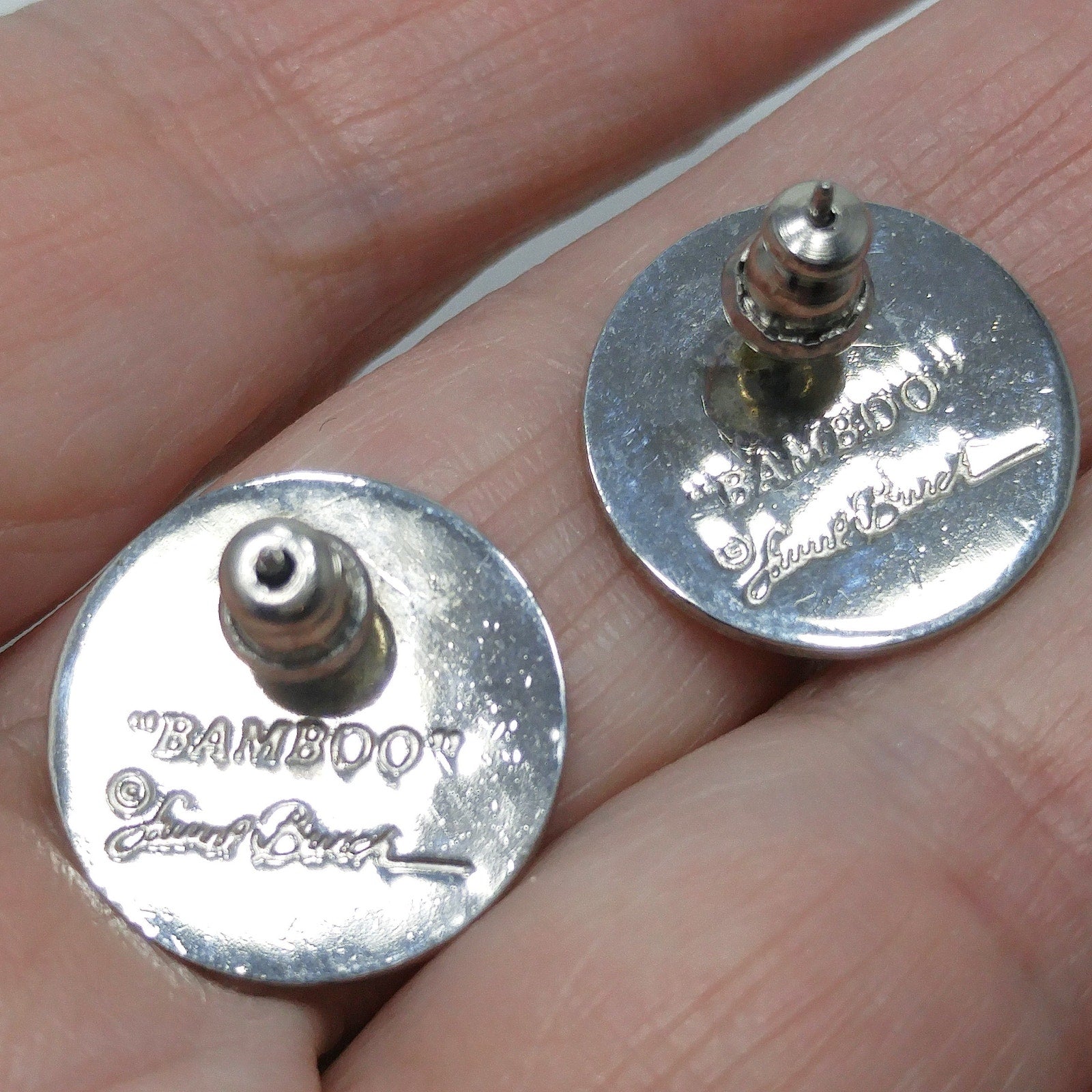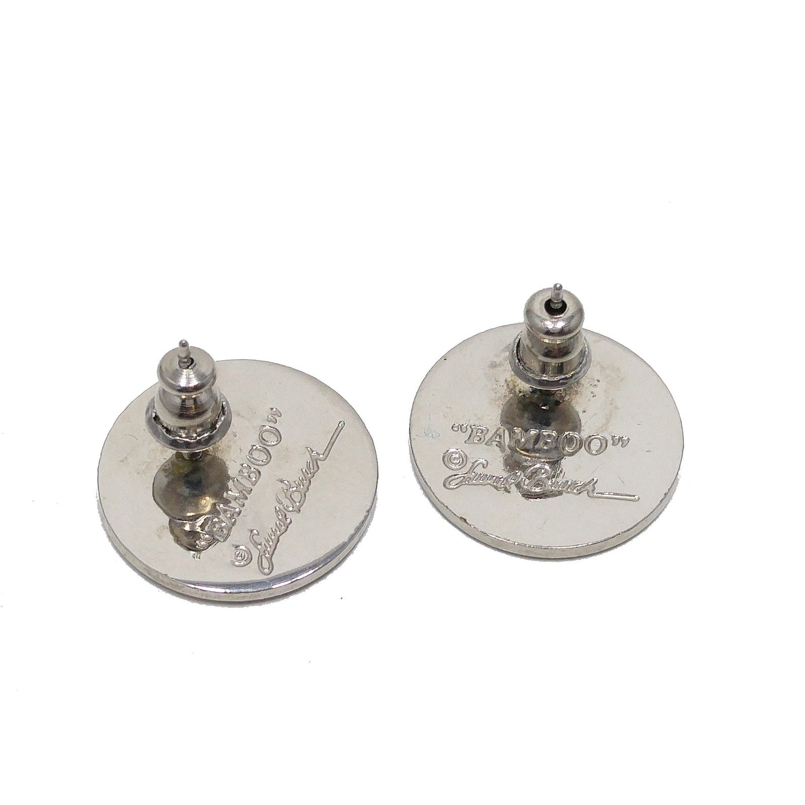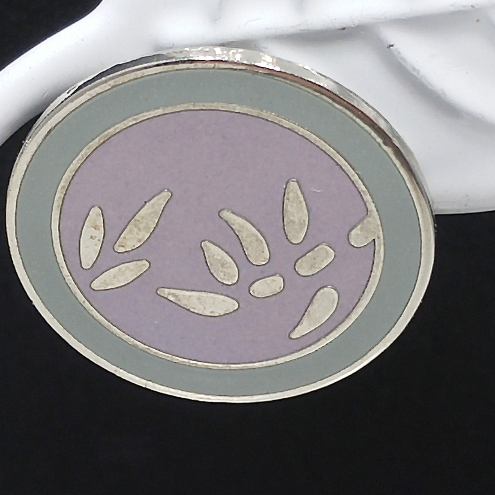 *Description: This is a beautiful pastel pair of Laurel Burch "Bamboo" post earrings from the 1980s. The cloisonne and backing a silver tone gold plate and the enamel is a pink/lavender center with silver bamboo; outlined in a mint green/gray enamel. The color of these earrings look slightly different depending on the lights. The color combination is beautiful and are lovely pastel enamel colors.