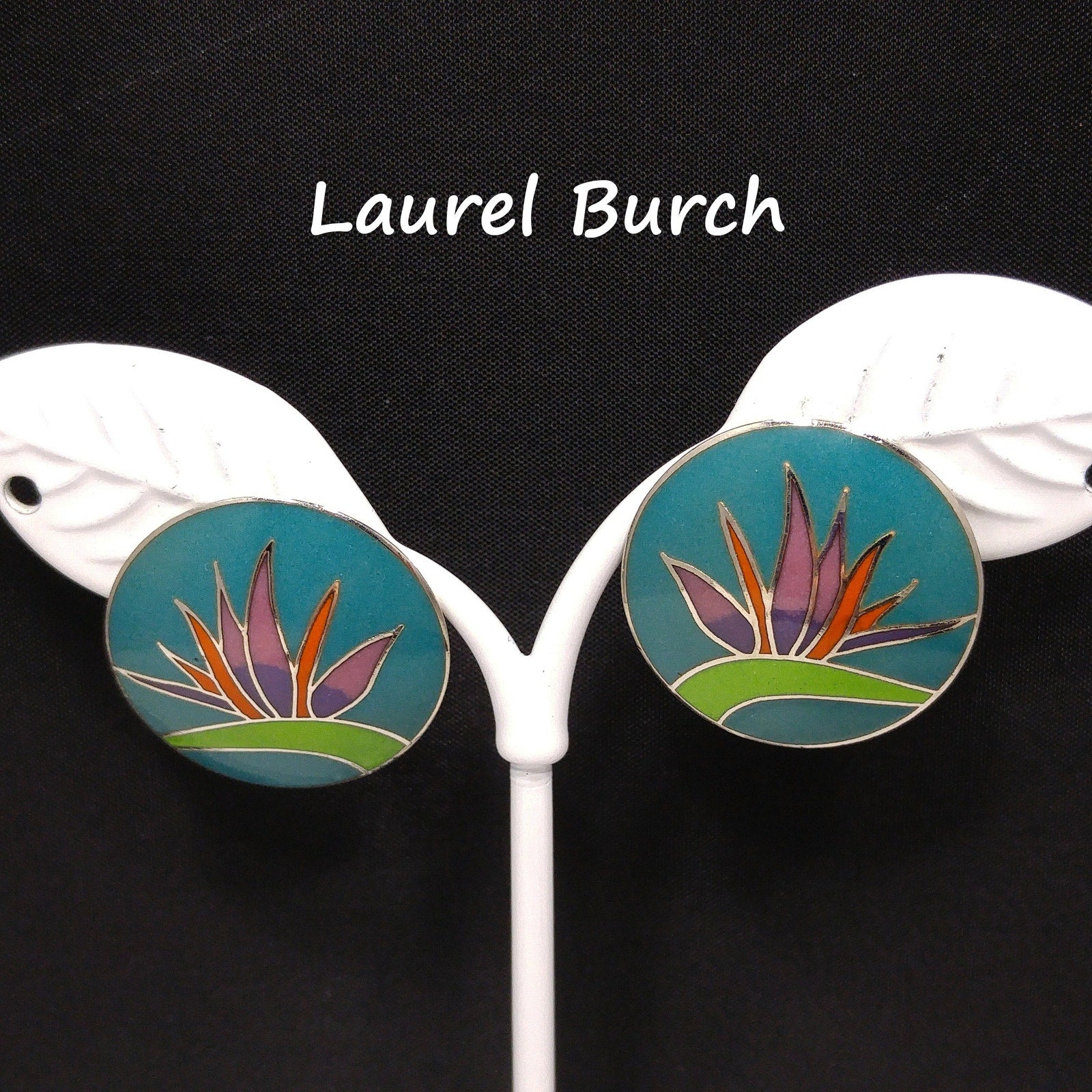 *Description: This is a beautiful pair of floral Bird of Paradise Laurel Burch earrings in silver tone cloisonné & pastel enamel in teal, green, purple, lavender and orange. The earrings are silver toned, gold plated and stamped LAUREL BURCH on the back of each earring. They are a little under an inch, measuring 15/16 inch in length and width. The posts are gold filled. This beautiful pair of Laurel Burch bird of paradise post earrings would be a great addition to your vintage jewelry collection or make a great vintage gift!