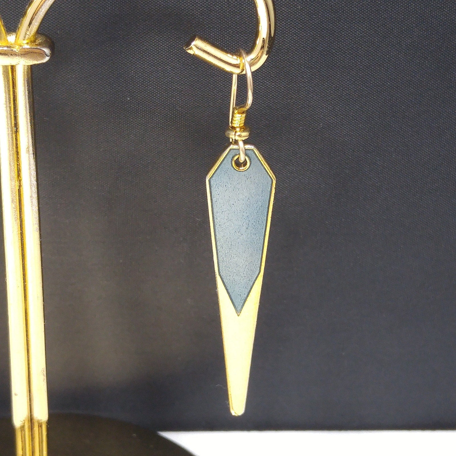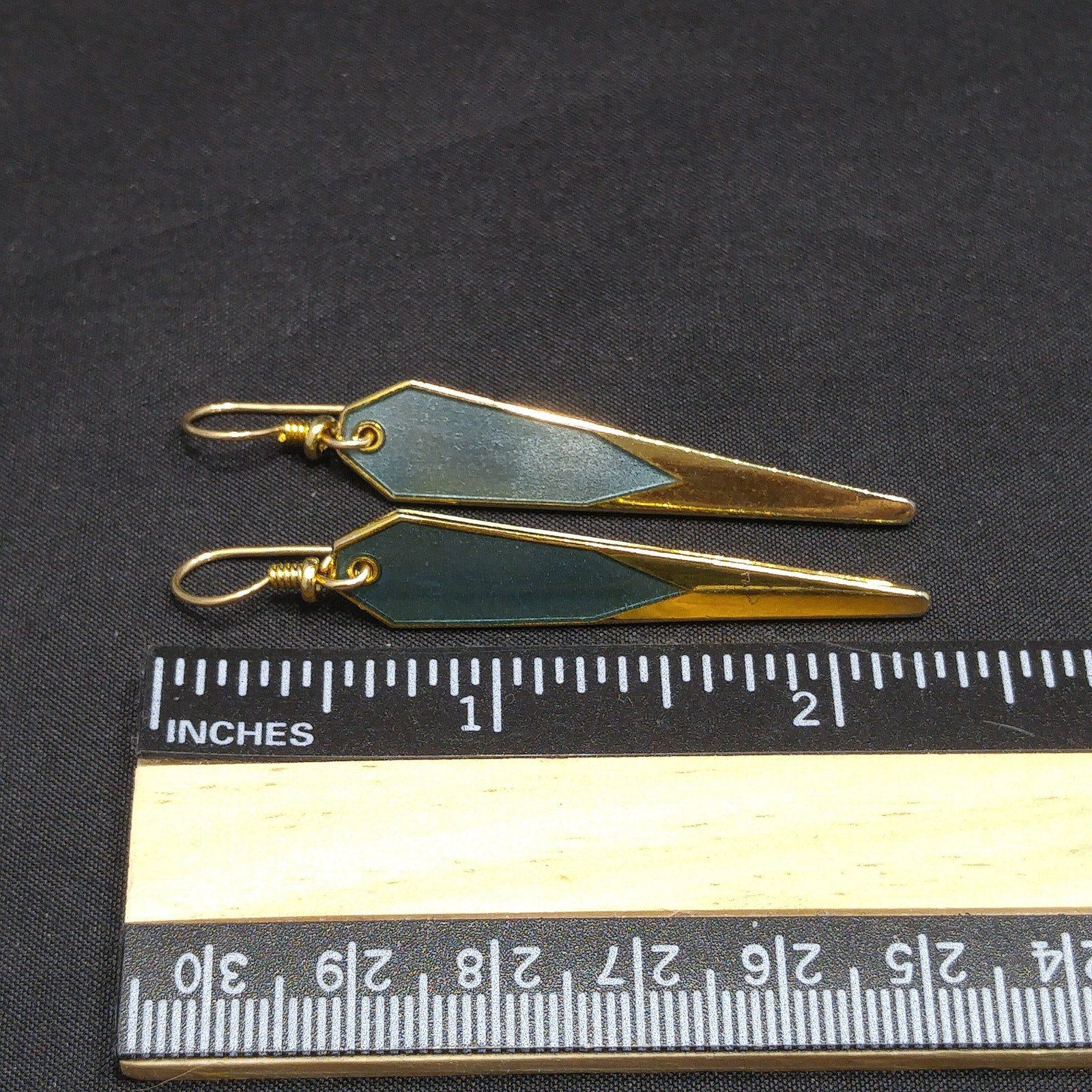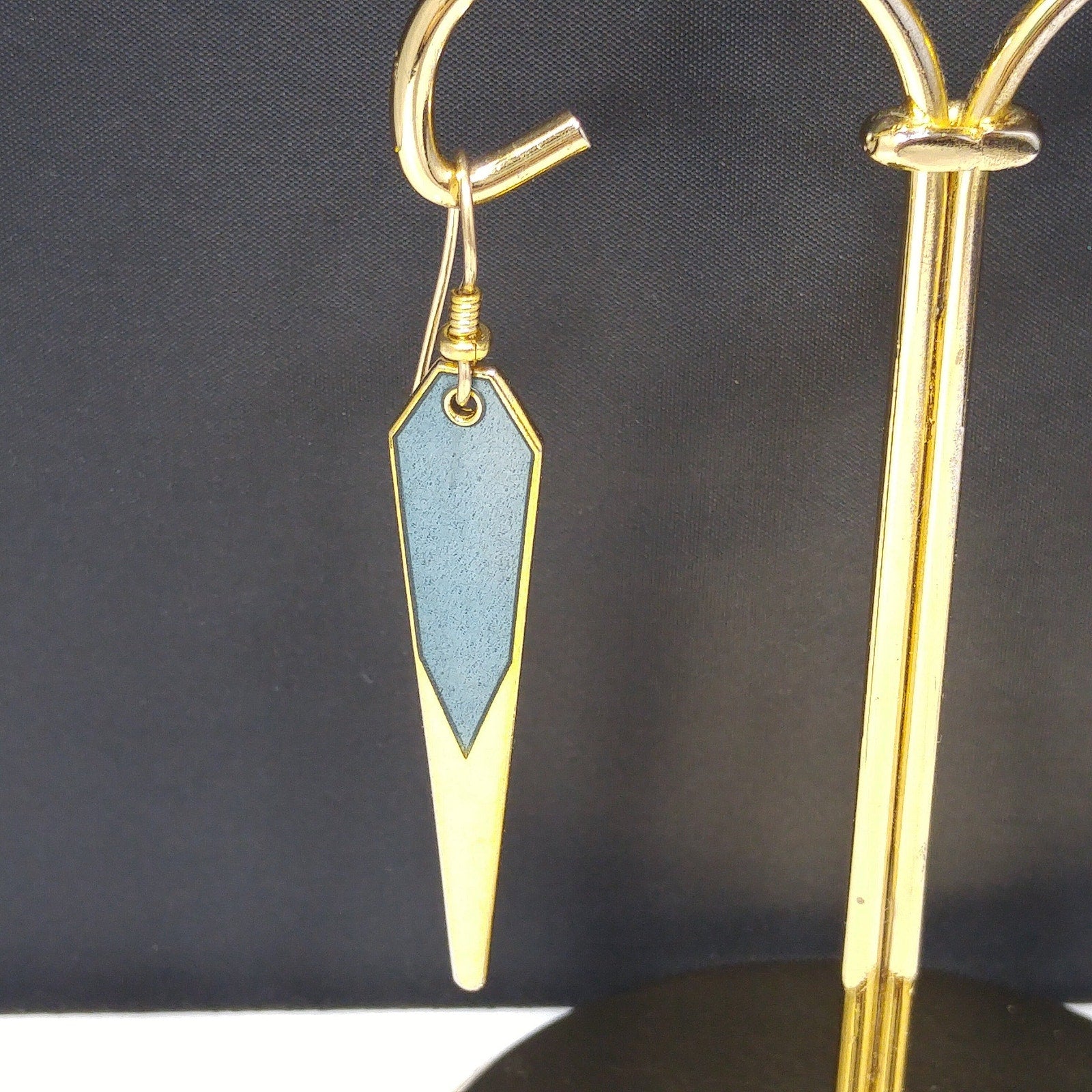 *Description - This is a great pair of long Laurel Burch metallic blue enamel and gold plated earrings in a modern style from the 1980s. The lower portion of the earrings are gold plated and very reflective. The upper portion is a metallic blue. The ear wires are gold filled and look great! This would be a great addition to your vintage jewelry collection or make a great vintage gift!