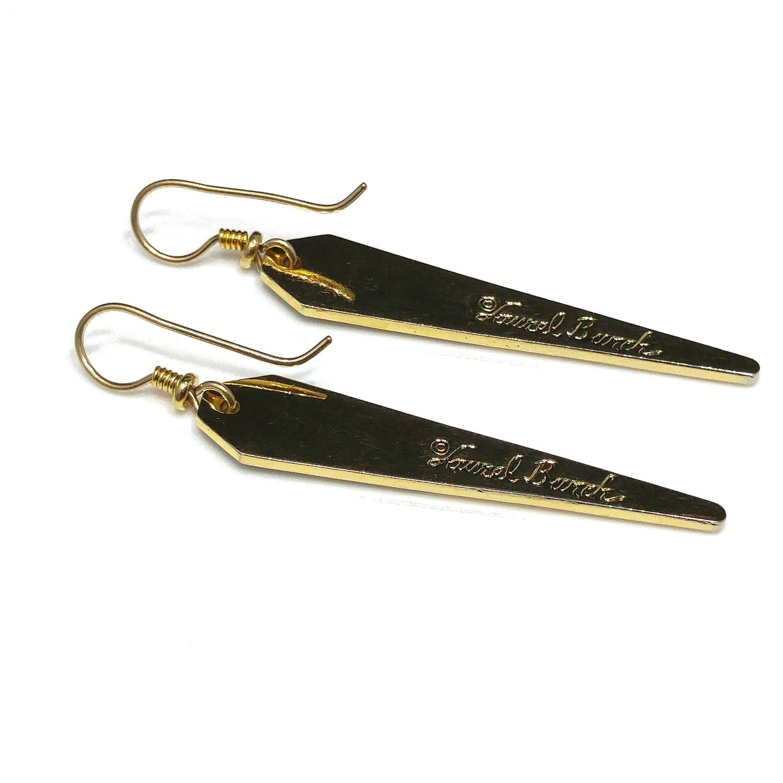 Vintage Laurel Burch Blue Metallic Long Earrings, Gold Plated
