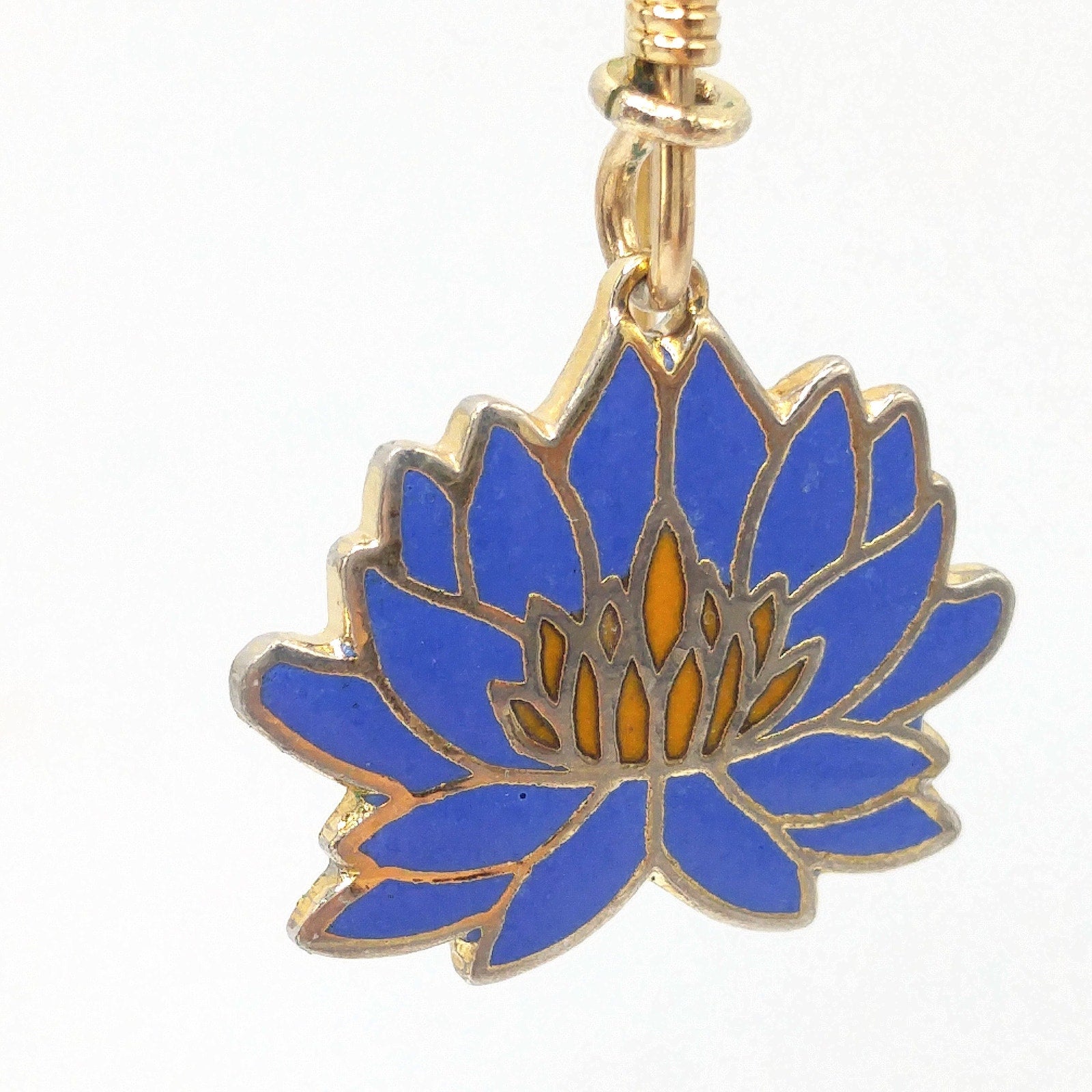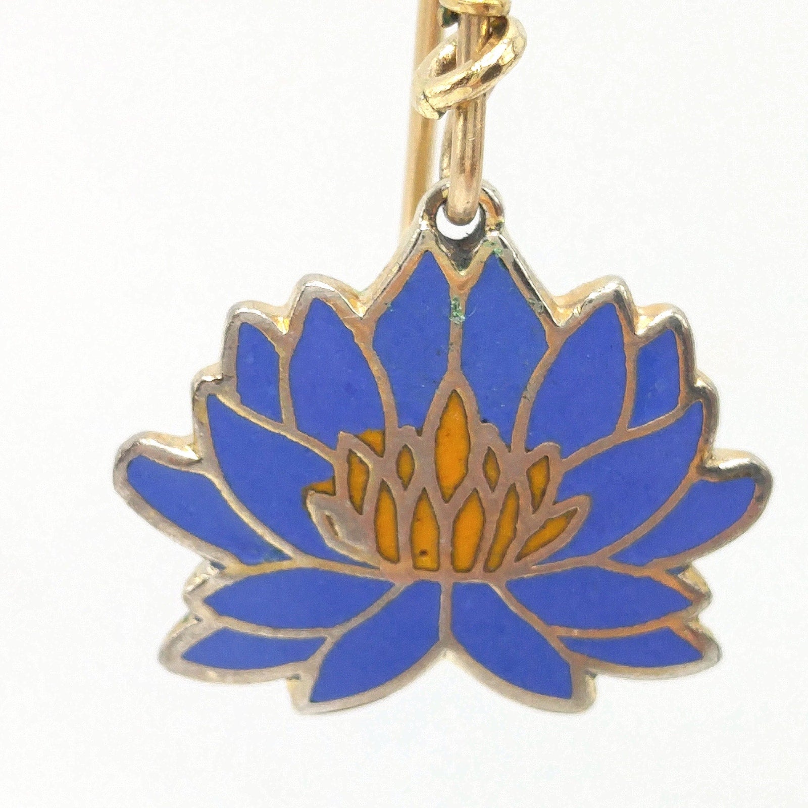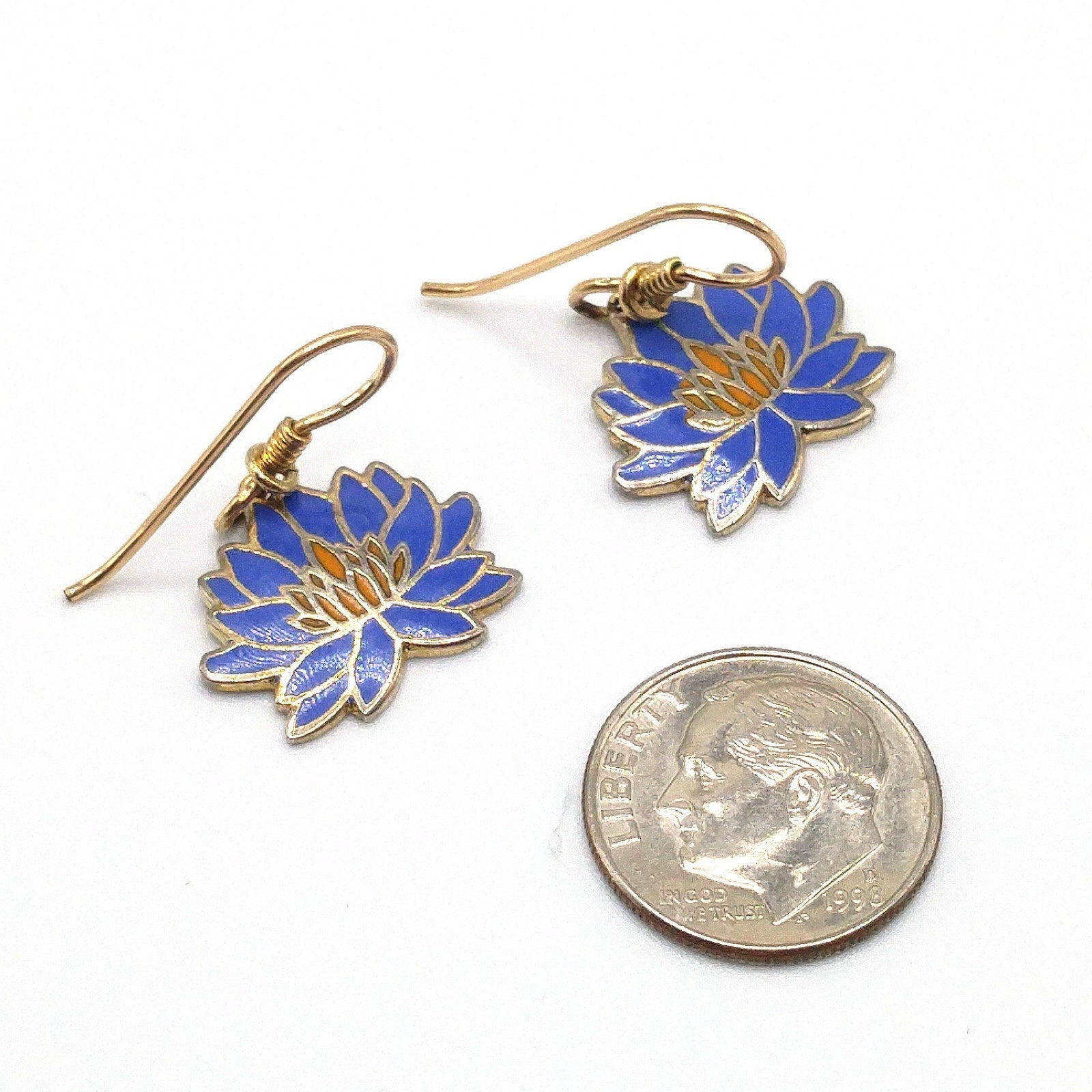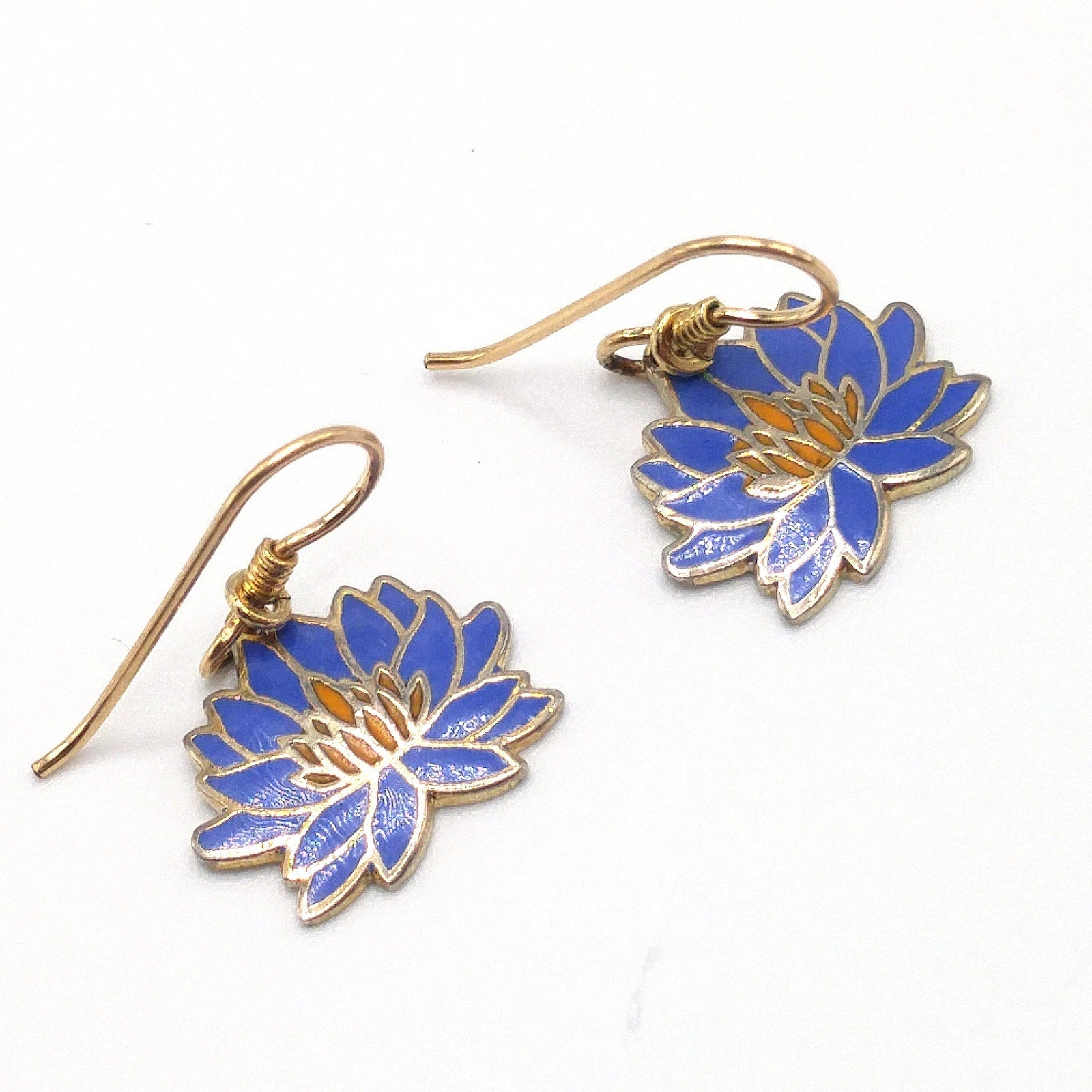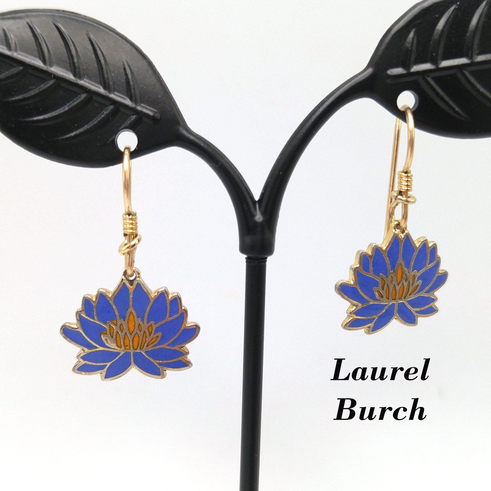 *Description: This is vintage pair of Laurel Burch Blue and Orange Lily Flower Earrings in cloisonne enamel on a gold plated background with gold filled ear wires from the 1980s. This would be a great addition to your vintage jewelry collection or make a great vintage gift!