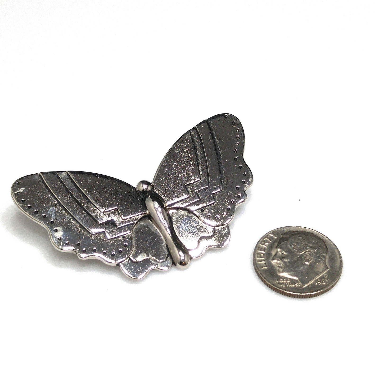 Vintage Laurel Burch Butterfly Brooch Rhodium Plate with Black Enamel