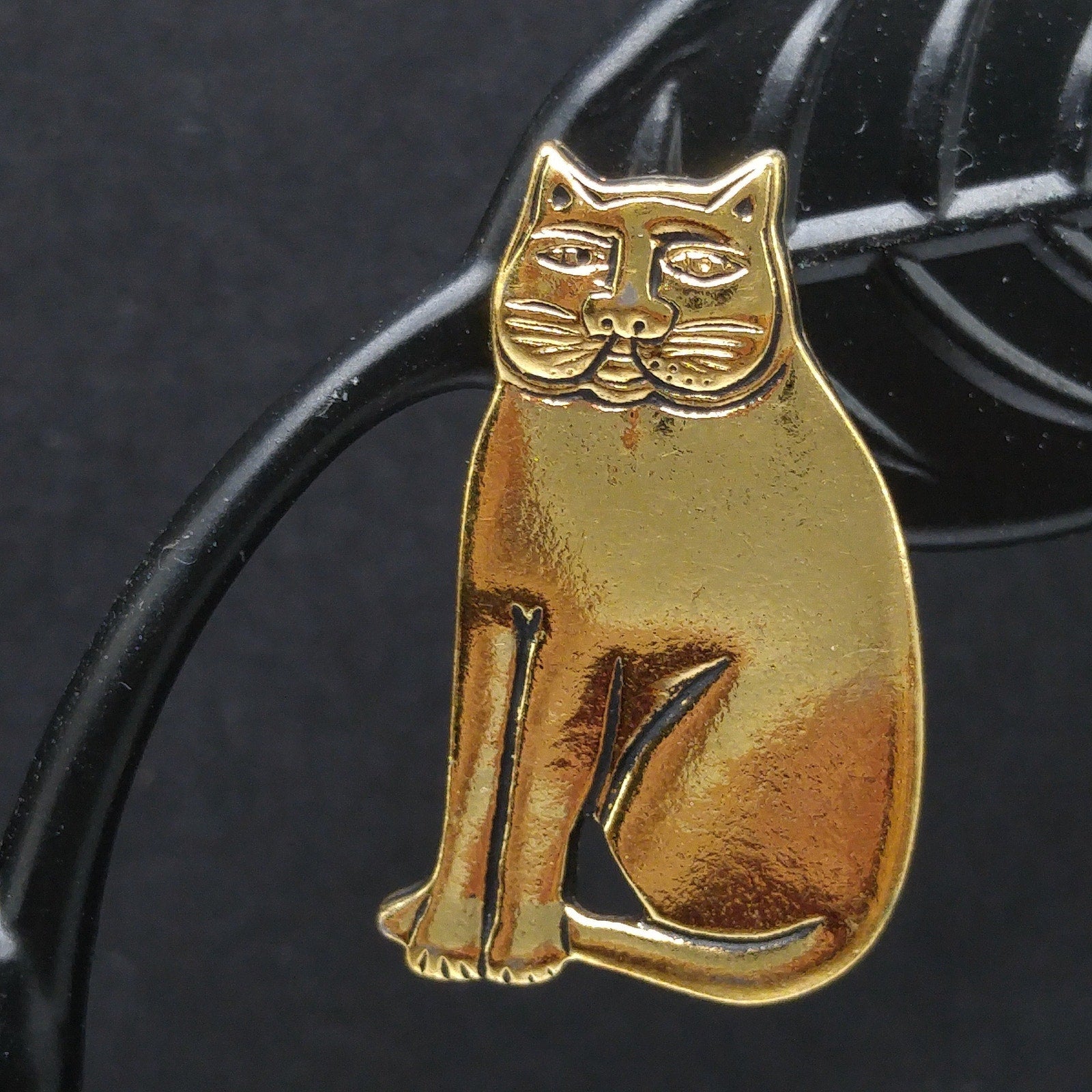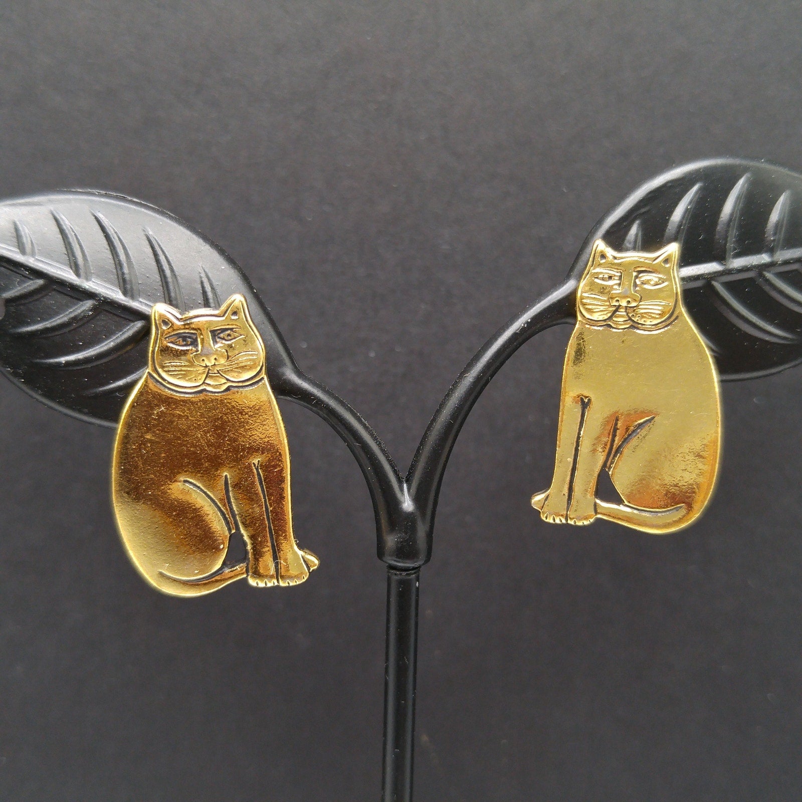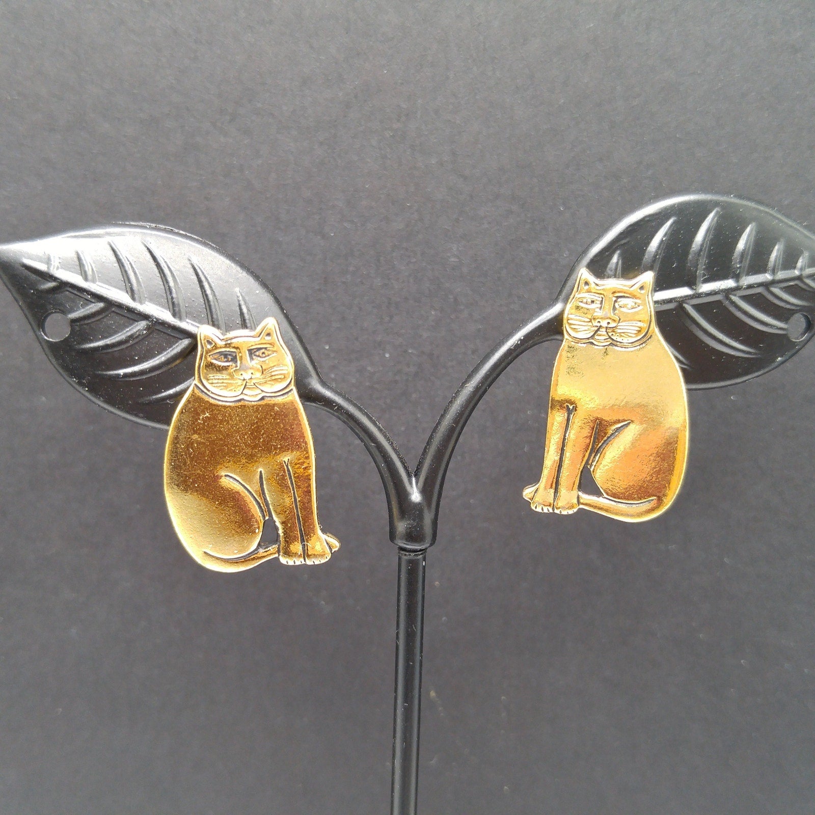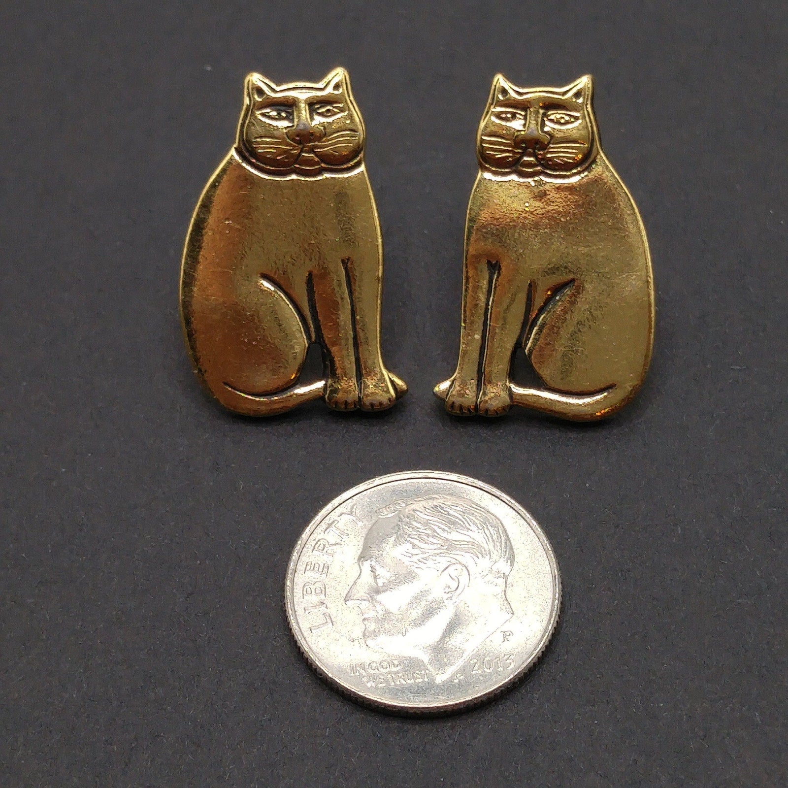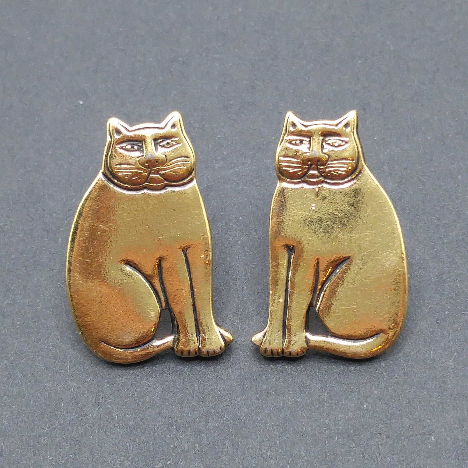 Vintage Laurel Burch Cat Post Earrings, Sitting Cats, Gold Plated