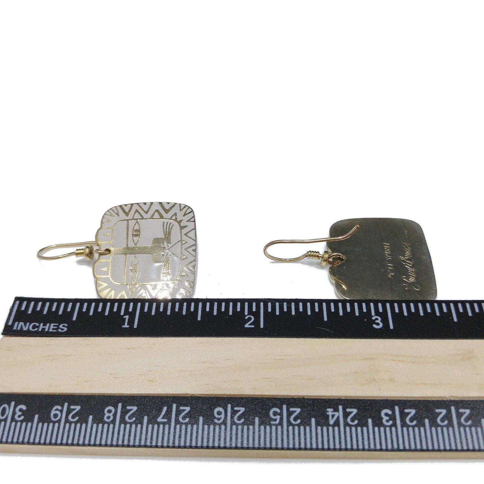 *Condition: Very good vintage condition. The gold plating on the back has been lovingly worn around the edges. The gold filled ear wires are a little misshapen. Will see signs of wear under magnification particularly on backs.