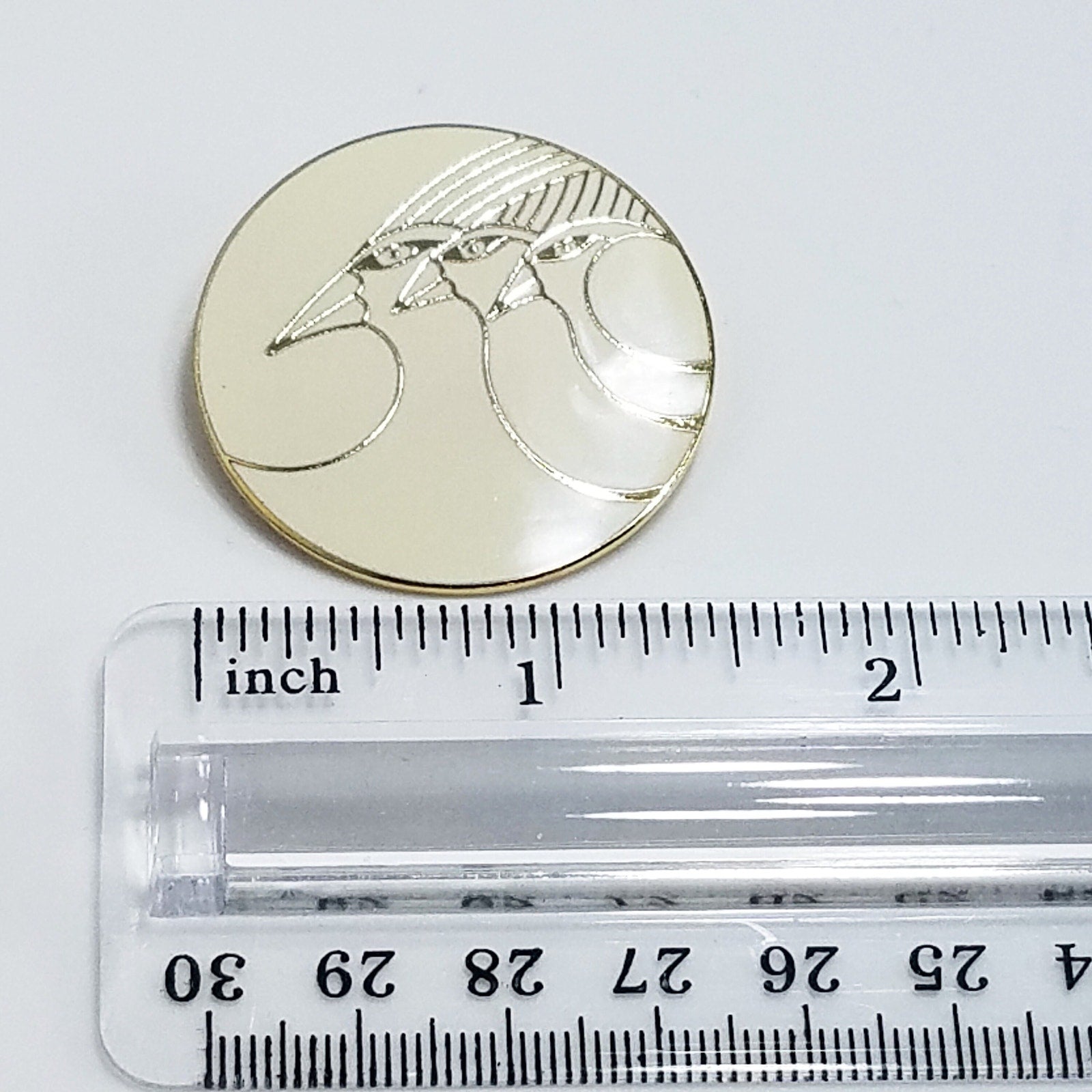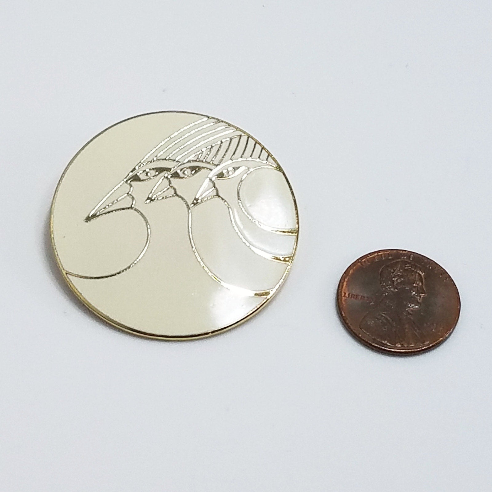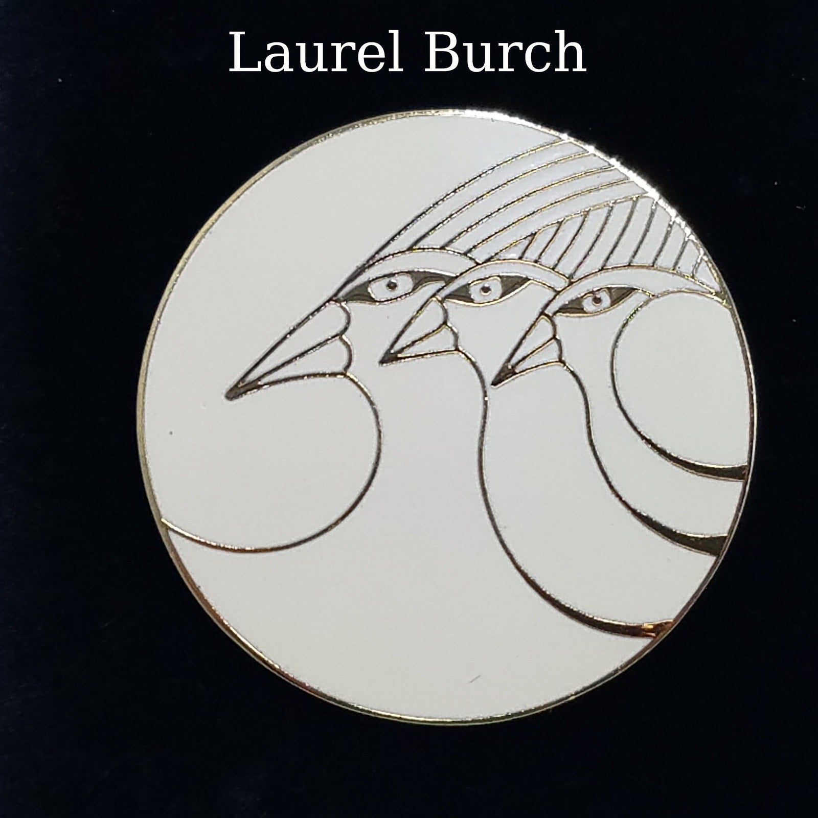 *Description: This is a beautiful brooch by artist Laurel Burch, Celestial Birds. This brooch is gold plated using the cloisonne technique with a creamy white enamel. Three birds' profile are facing to your left, outlined in gold. This brooch is in great condition and would be a wonderful gift for any nature lover or a great addition to your Laurel Burch jewelry collection.