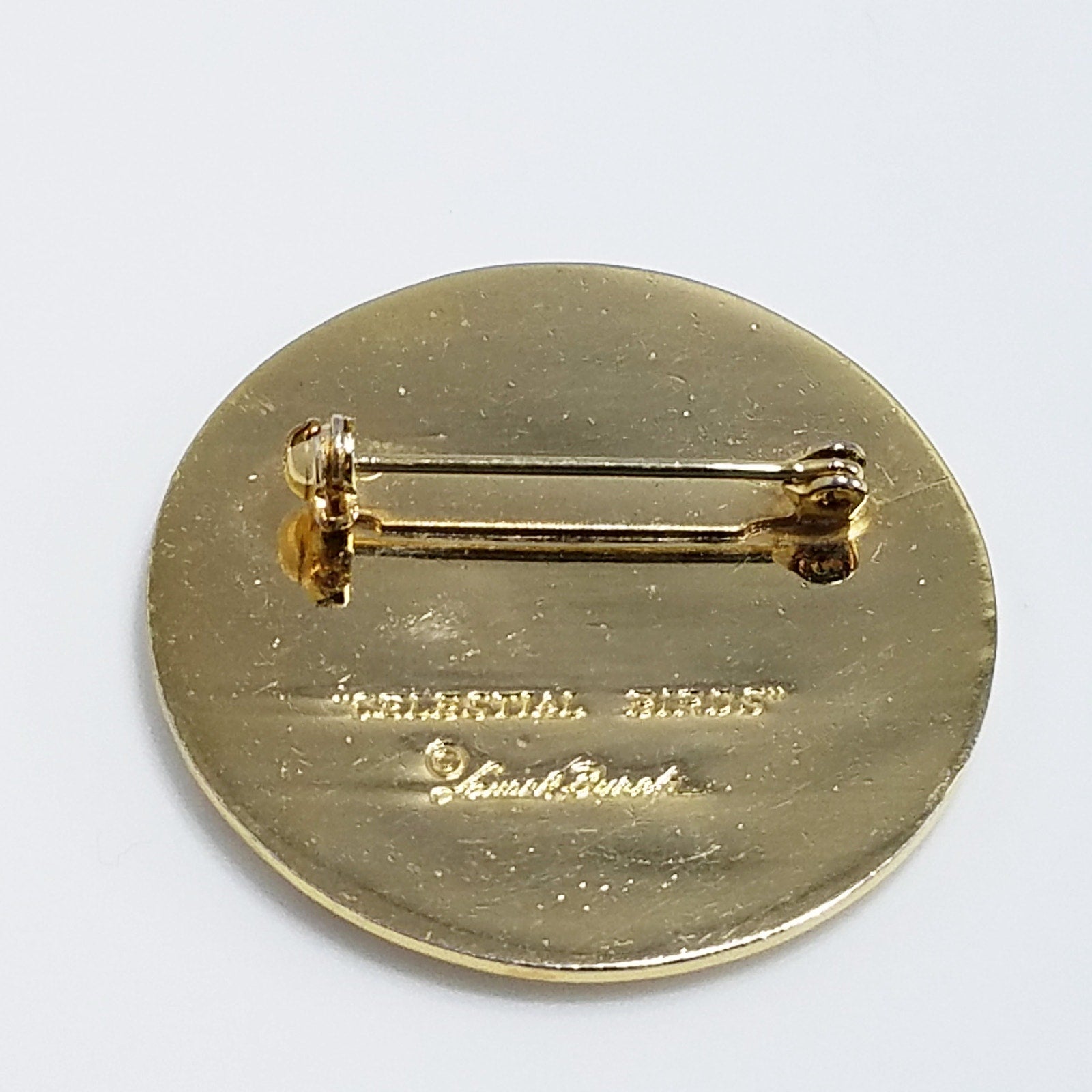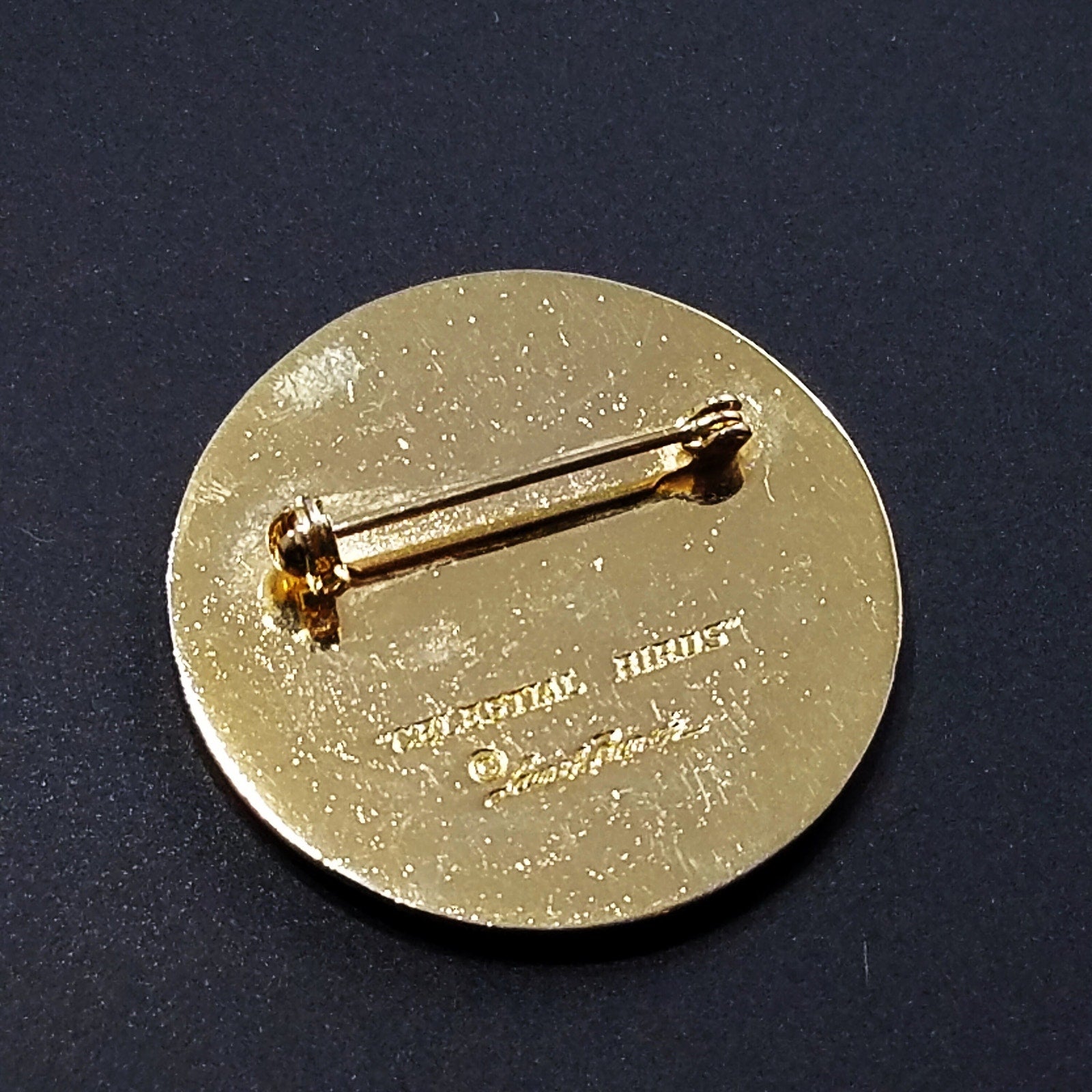Vintage Laurel Burch Celestial Birds Brooch, Gold Plated Cloisonne, 1980s
