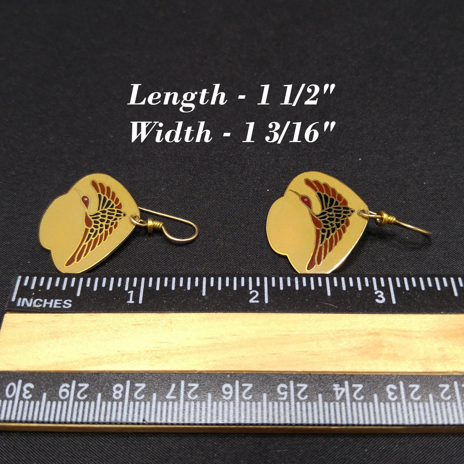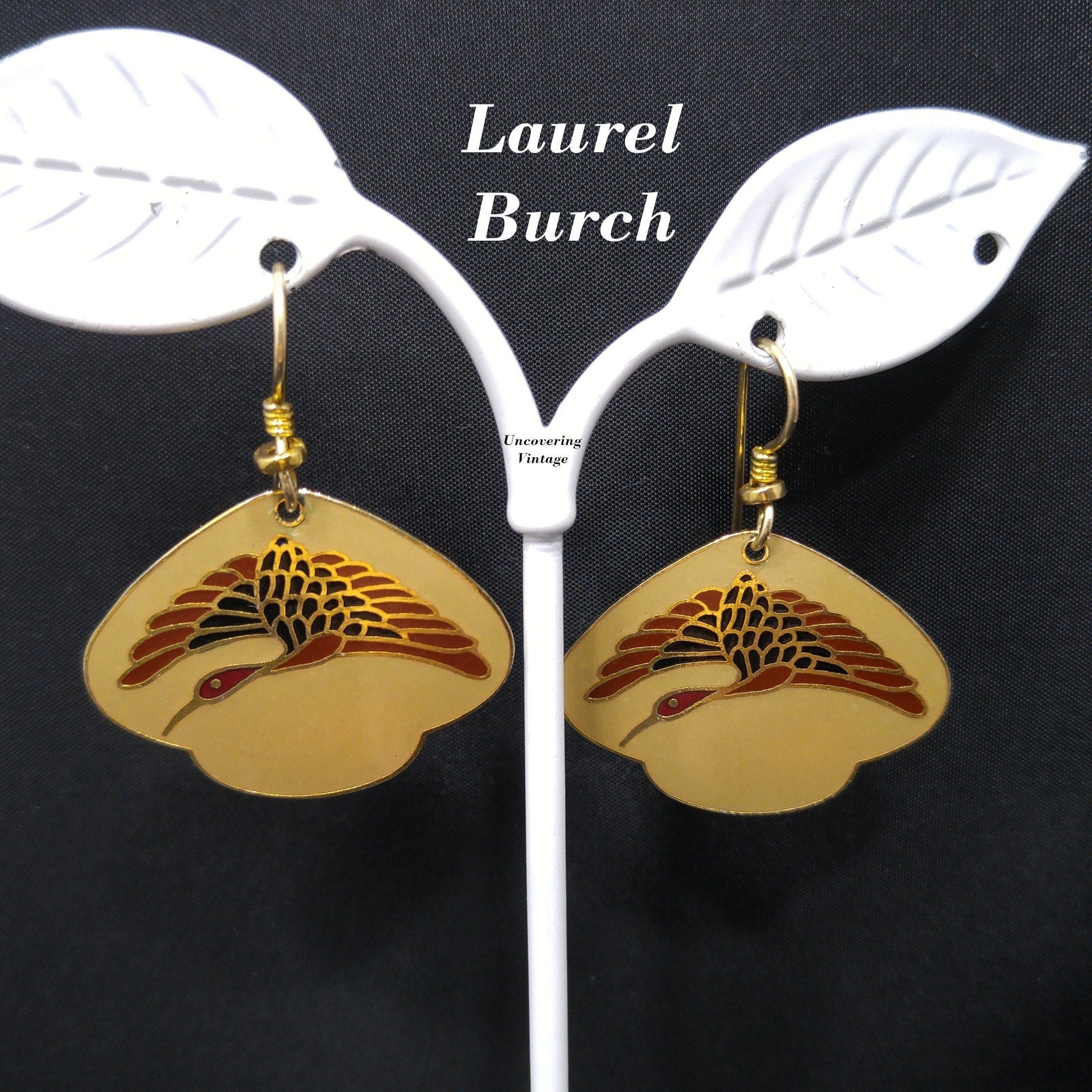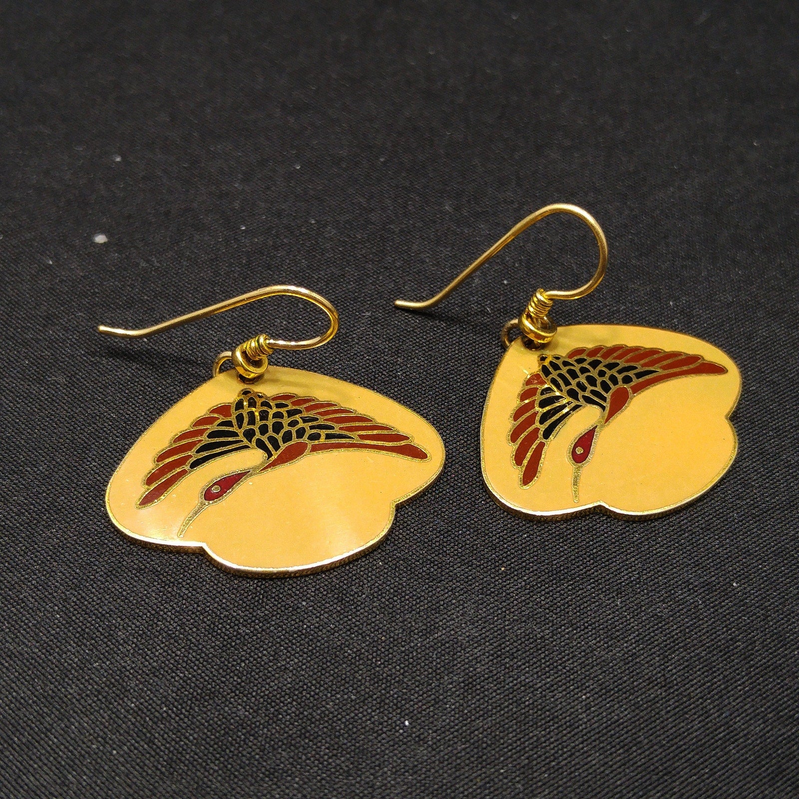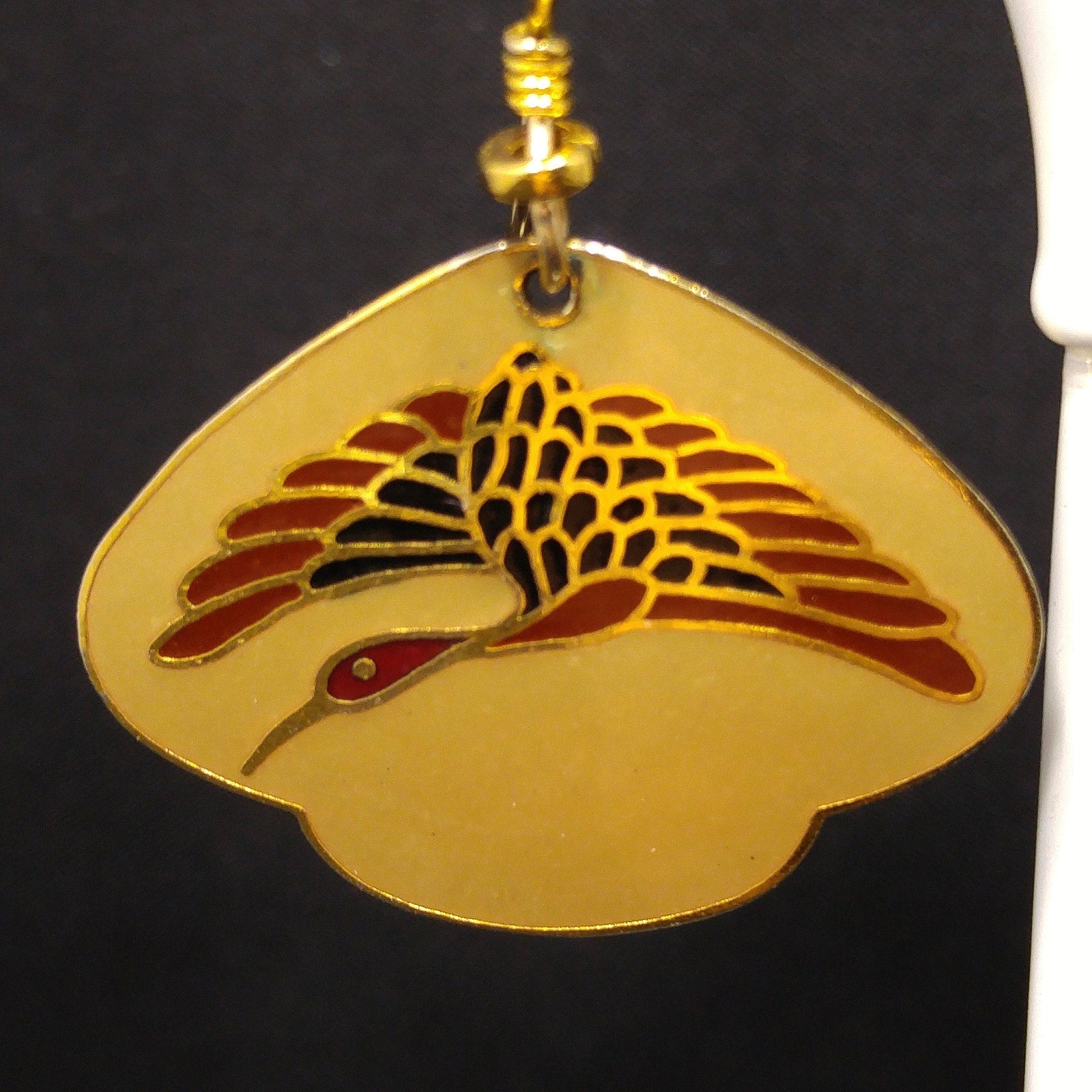*Description: This is a beautiful pair of Laurel Burch flying crane bird earrings of cloisonne gold plate and enamel colors in beige tan, black and dark red from the 1980s. This is a very popular design by Laurel Burch. This would be a great addition to your vintage jewelry collection or make a great vintage gift!