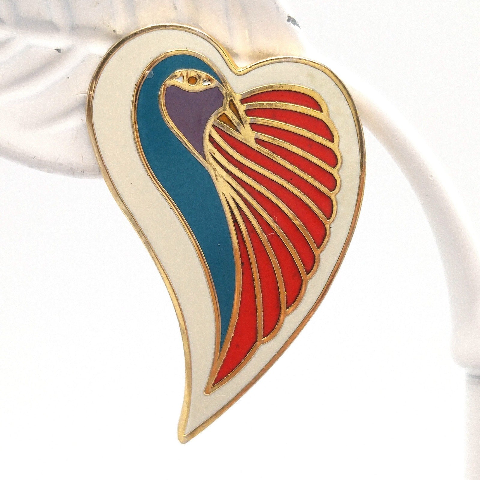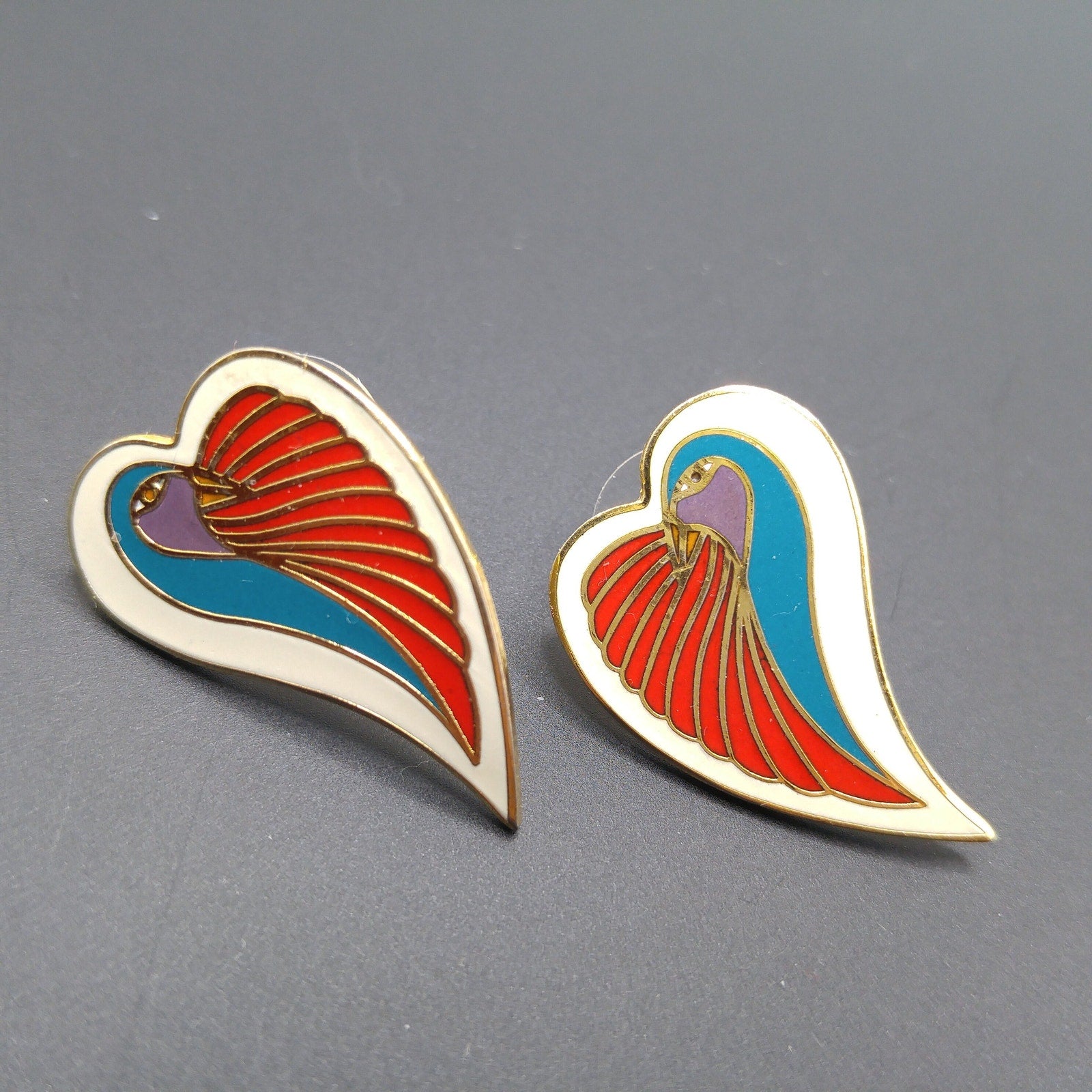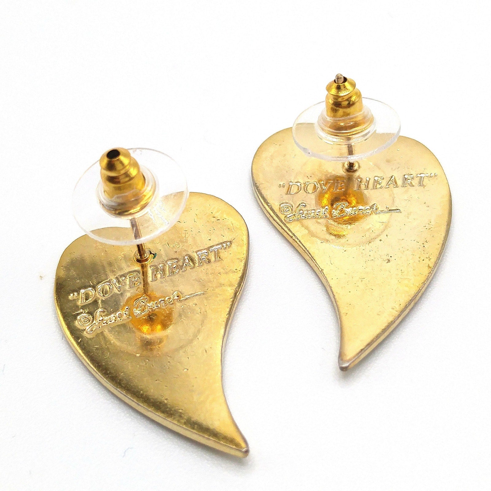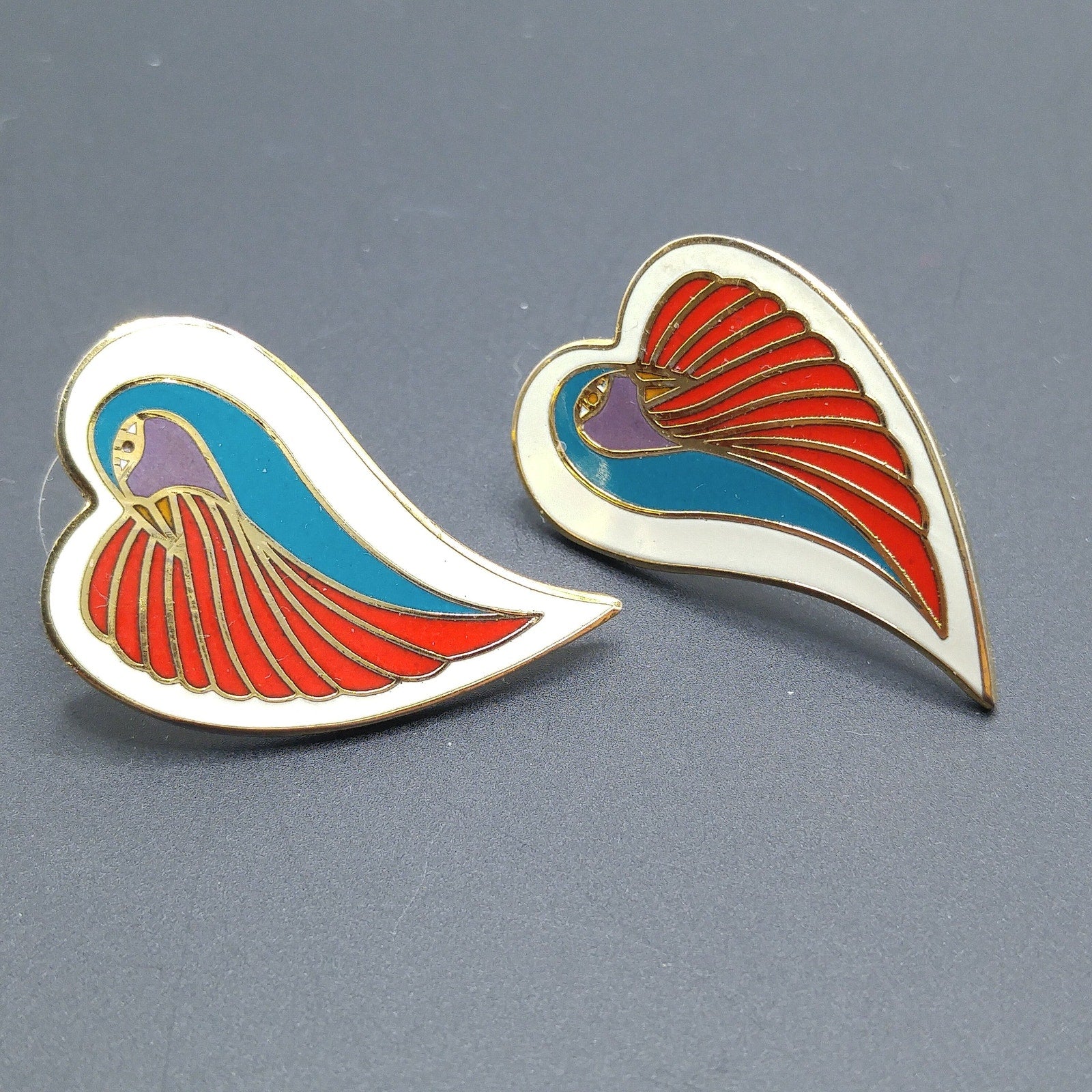 Vintage Laurel Burch "Dove Heart" Post Earrings, Cloisonne Enamel, Gold Plated