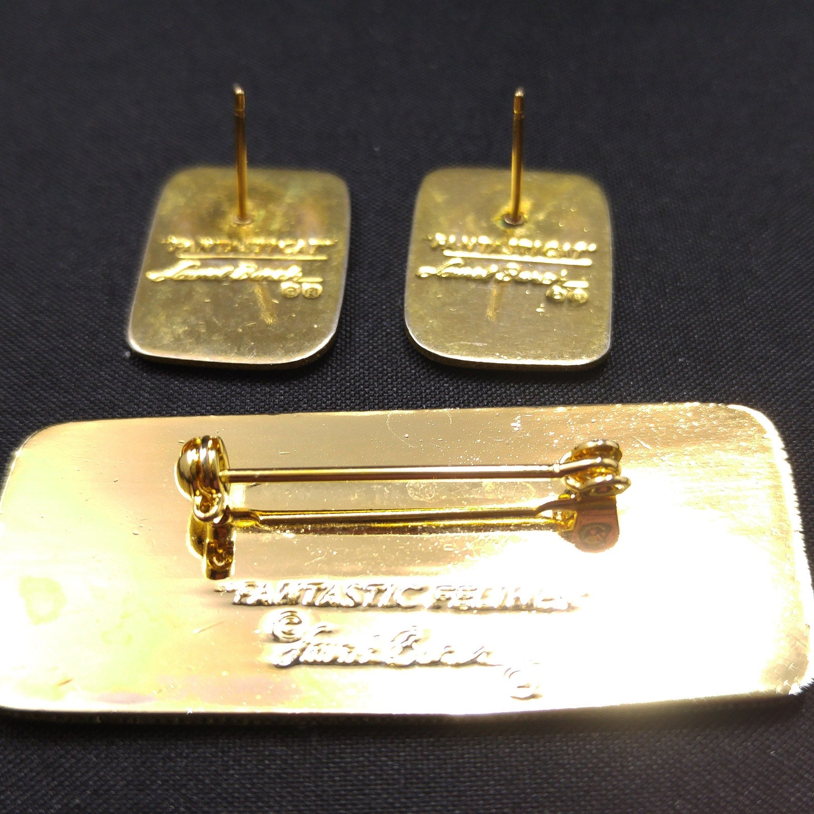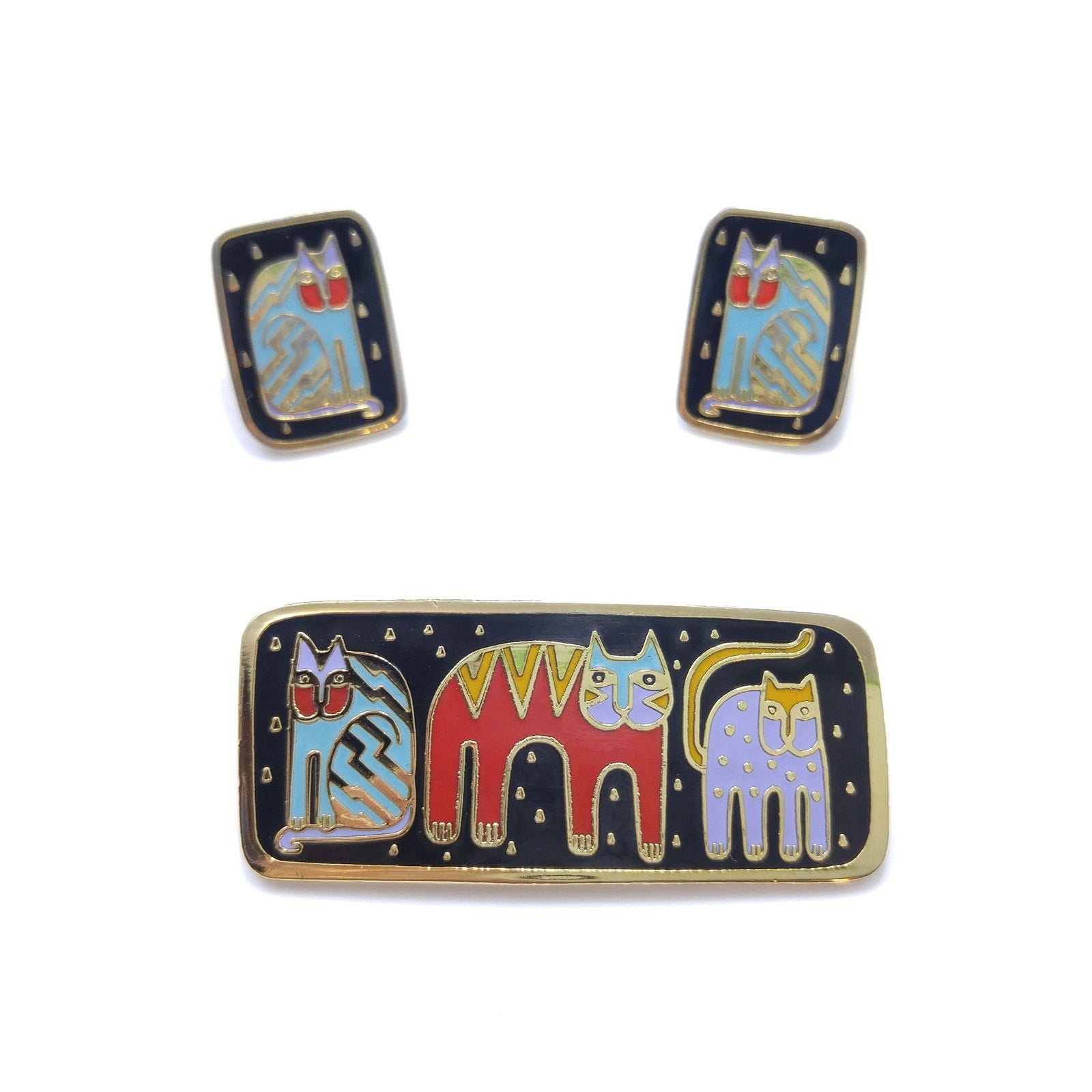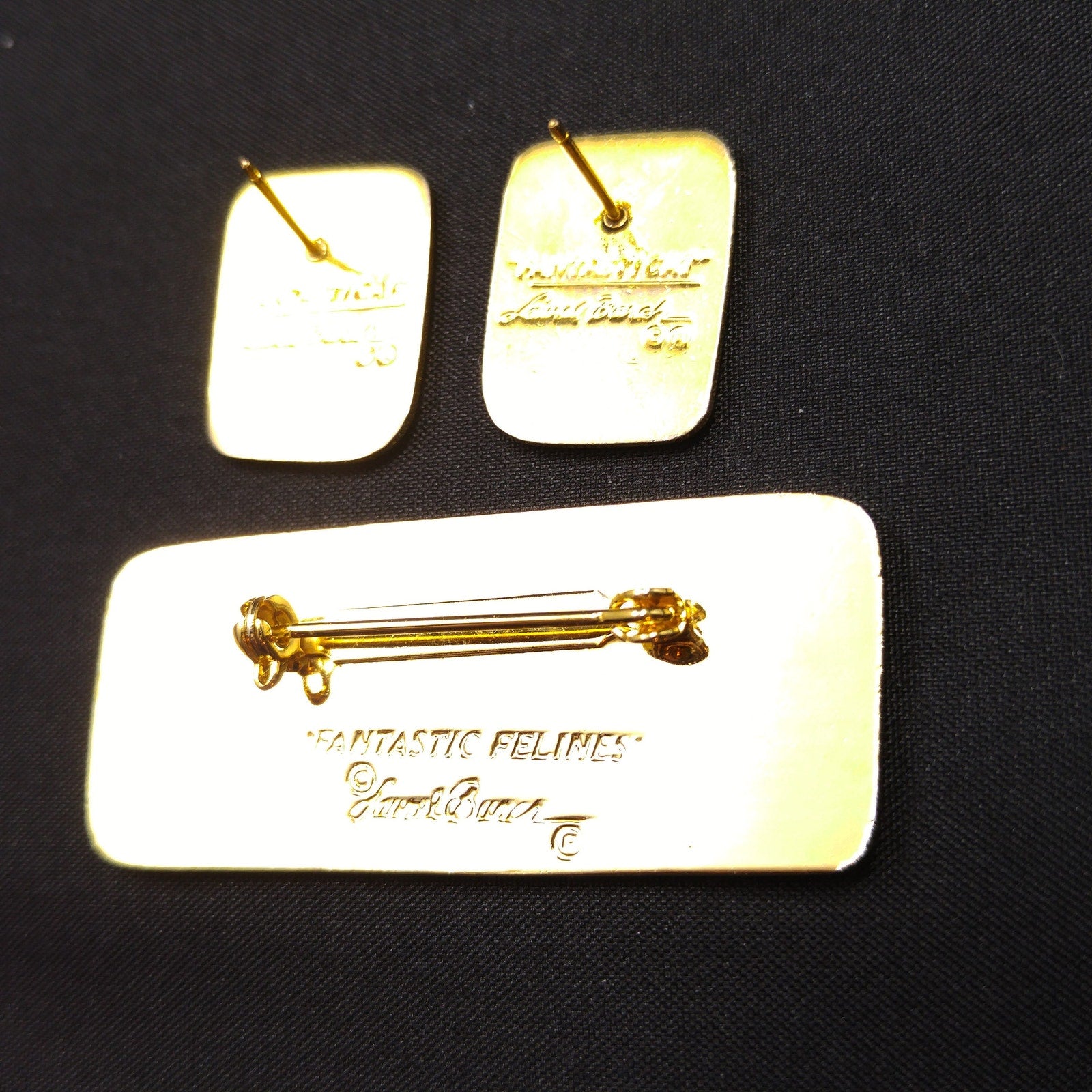 Vintage Laurel Burch "Fantastic Felines" Brooch & Earrings, 1980s