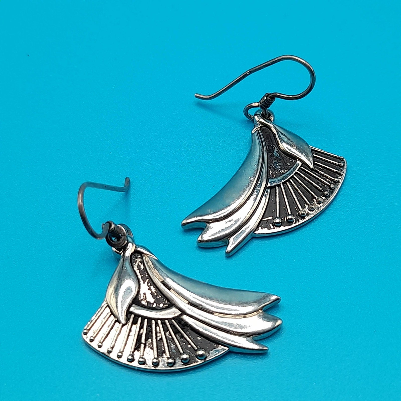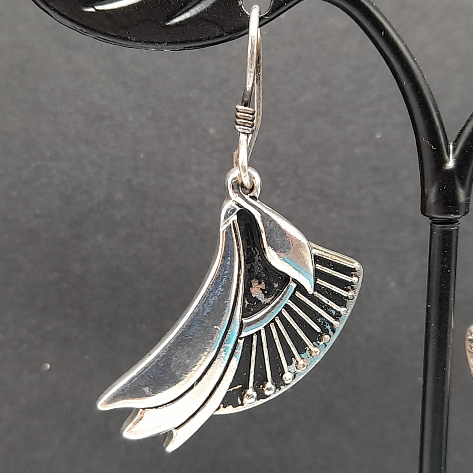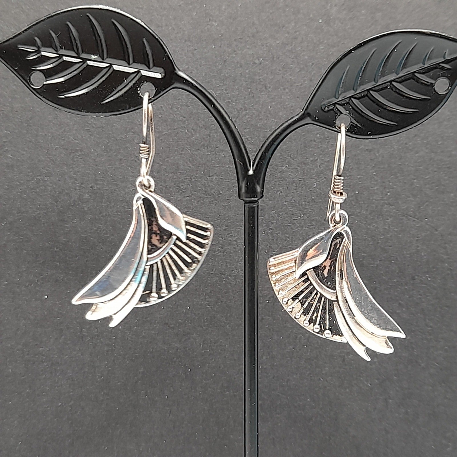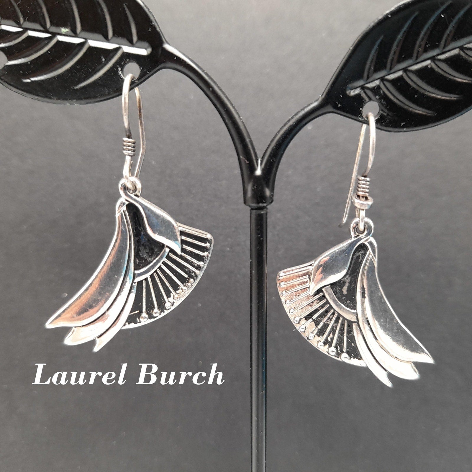 *Description: This is a pair of Laurel Burch floral lily drop earrings which are rhodium plated with silver plated ear wires from the 1980s. The design was accented with black enamel. With time on the rhodium plated designs, much or at least some of the black enamel has worn off. Please review photos for details. In many of her vintage designs there is no black enamel remaining on the rhodium plated earrings. This pair has quite a bit of the enamel in tack. This would be a great addition to your vintage jewelry collection or make a great vintage gift!