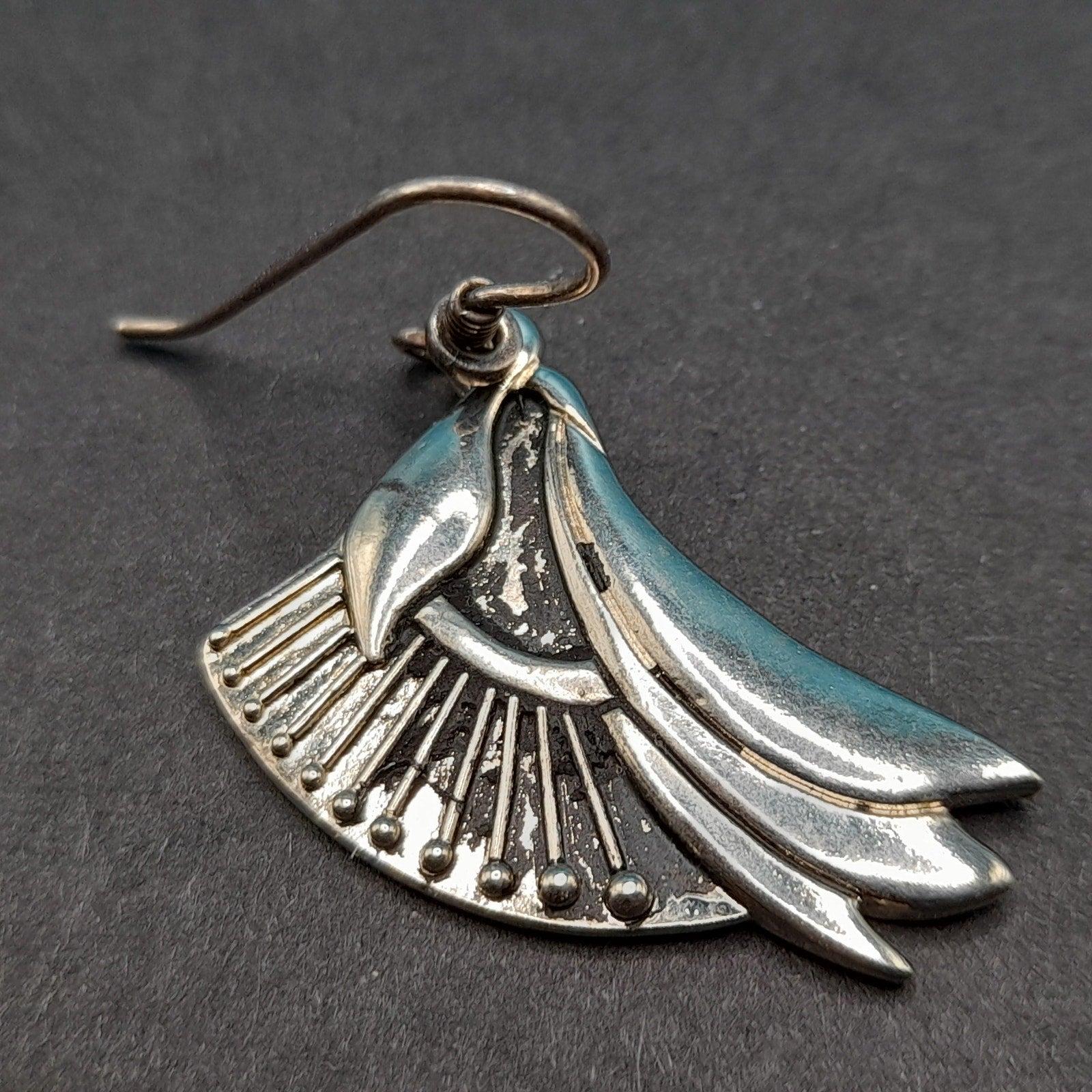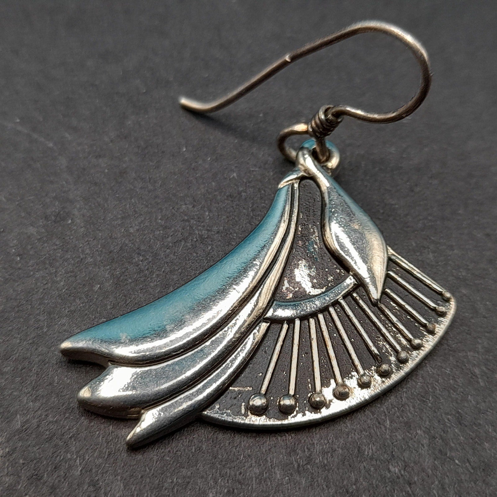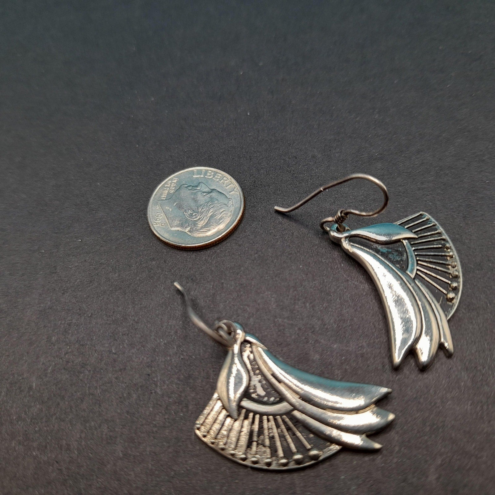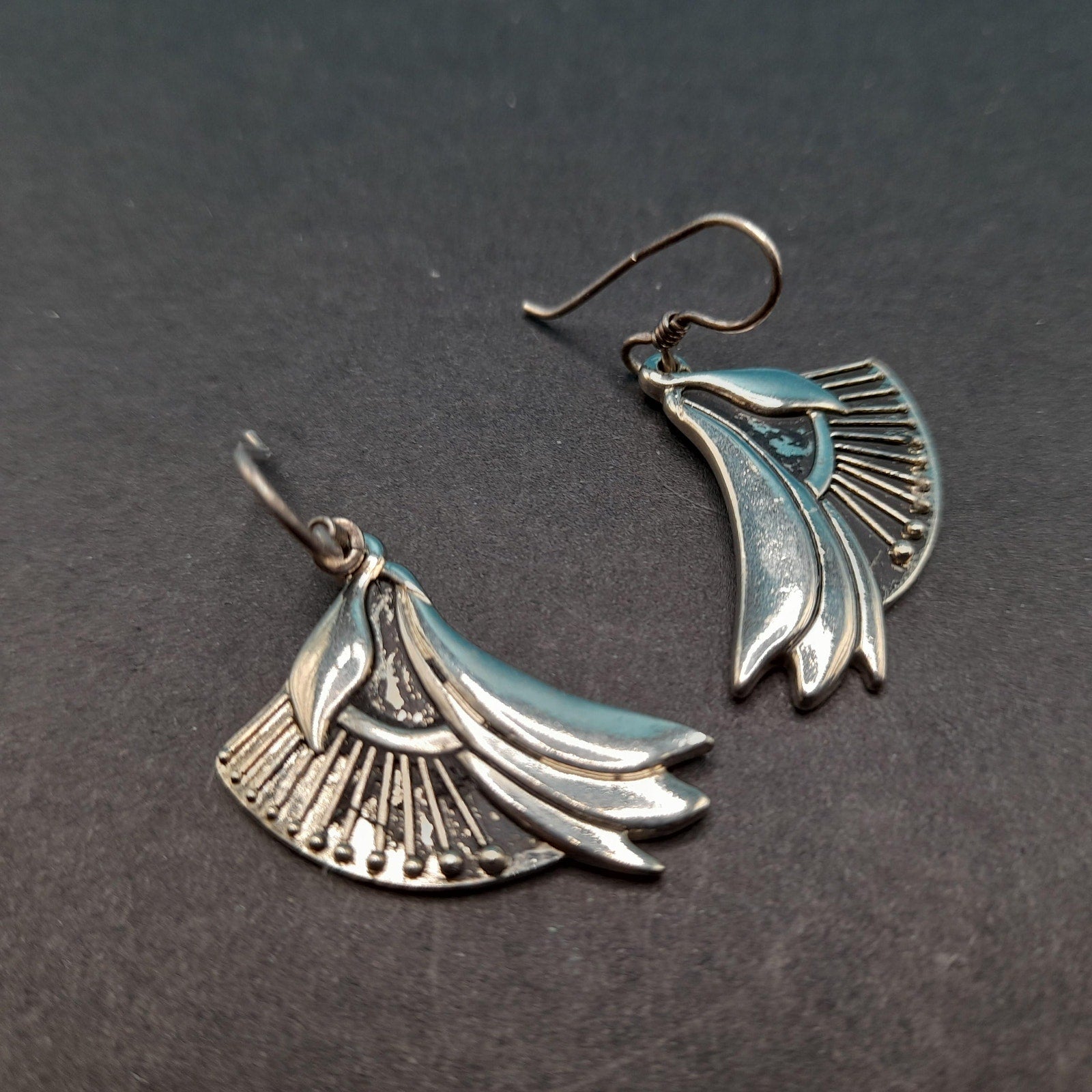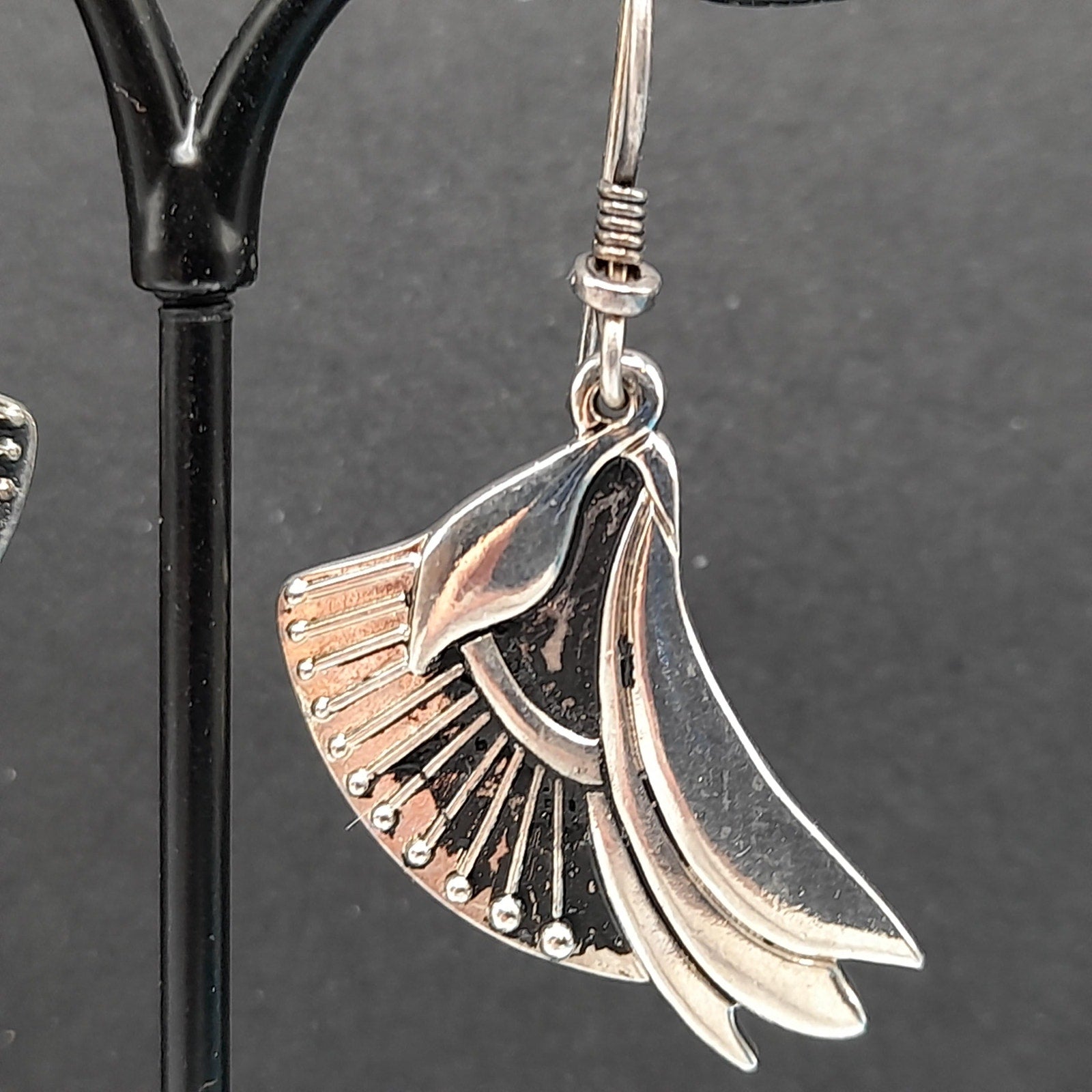 *Description: This is a pair of Laurel Burch floral lily drop earrings which are rhodium plated with silver plated ear wires from the 1980s. The design was accented with black enamel. With time on the rhodium plated designs, much or at least some of the black enamel has worn off. Please review photos for details. In many of her vintage designs there is no black enamel remaining on the rhodium plated earrings. This pair has quite a bit of the enamel in tack. This would be a great addition to your vintage jewelry collection or make a great vintage gift!