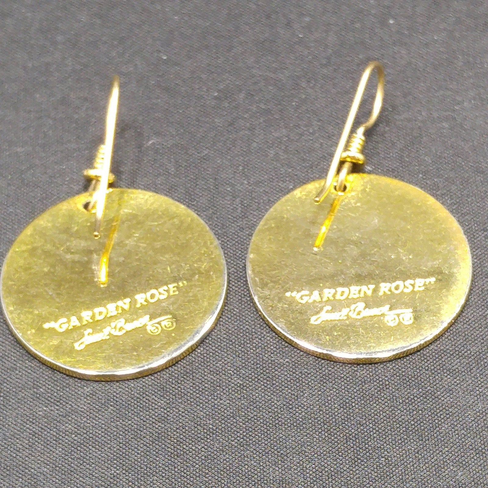 Vintage Laurel Burch "Garden Rose" Earrings, Cloisonné Gold Plated