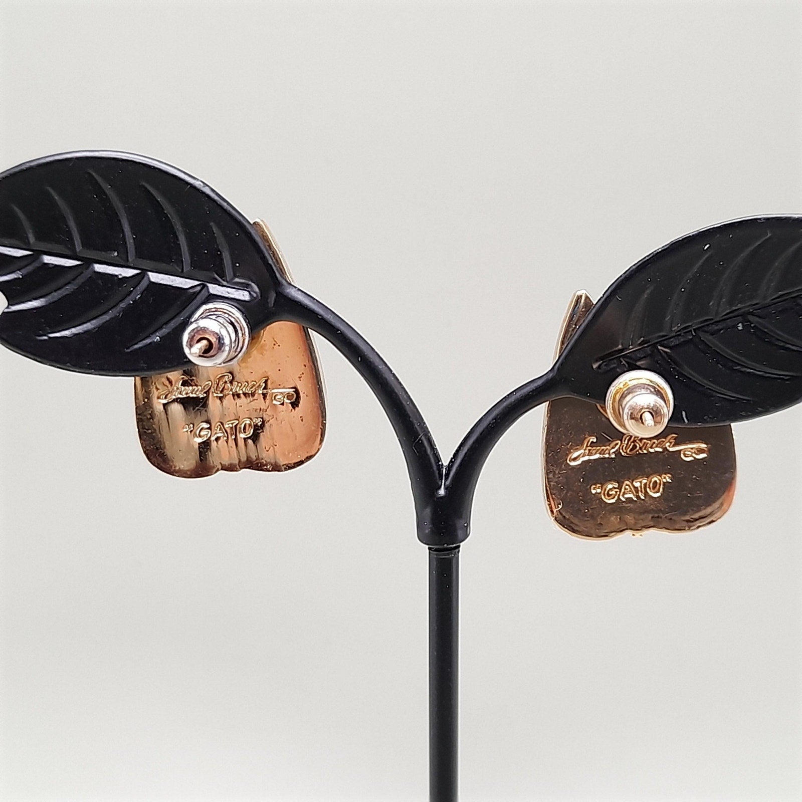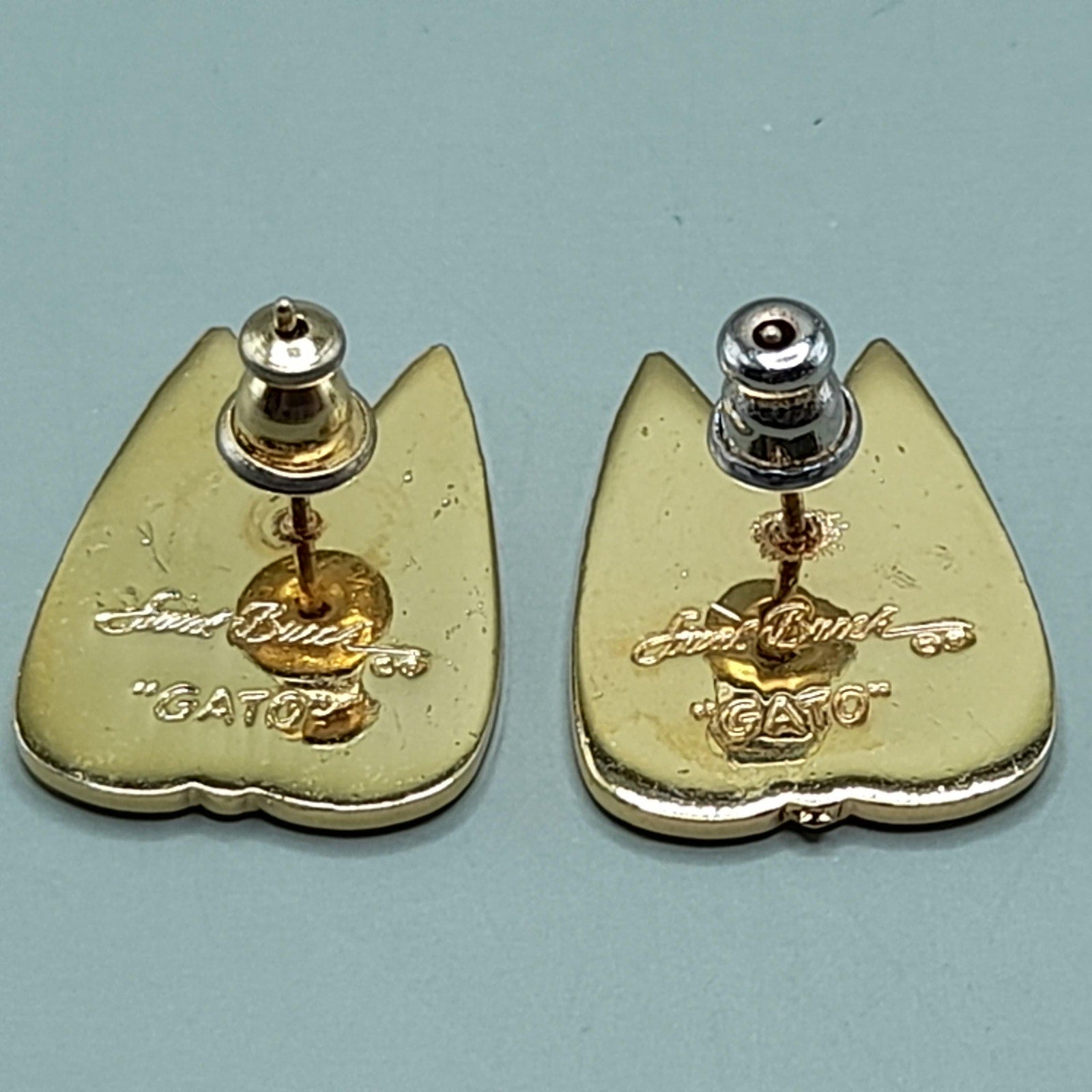 Vintage Laurel Burch "Gato" Cat Post Earrings, Enamel, Gold Plated, 1980s