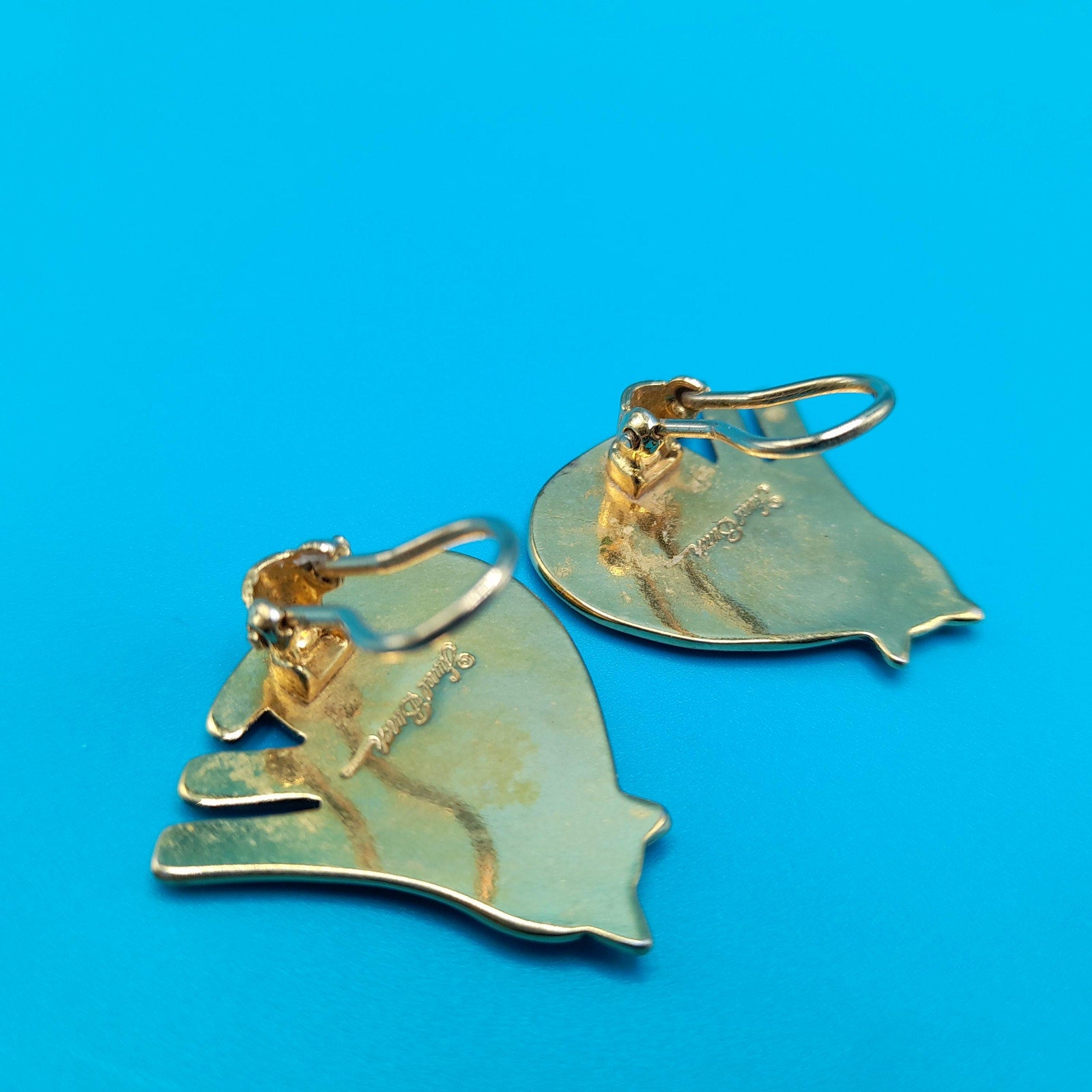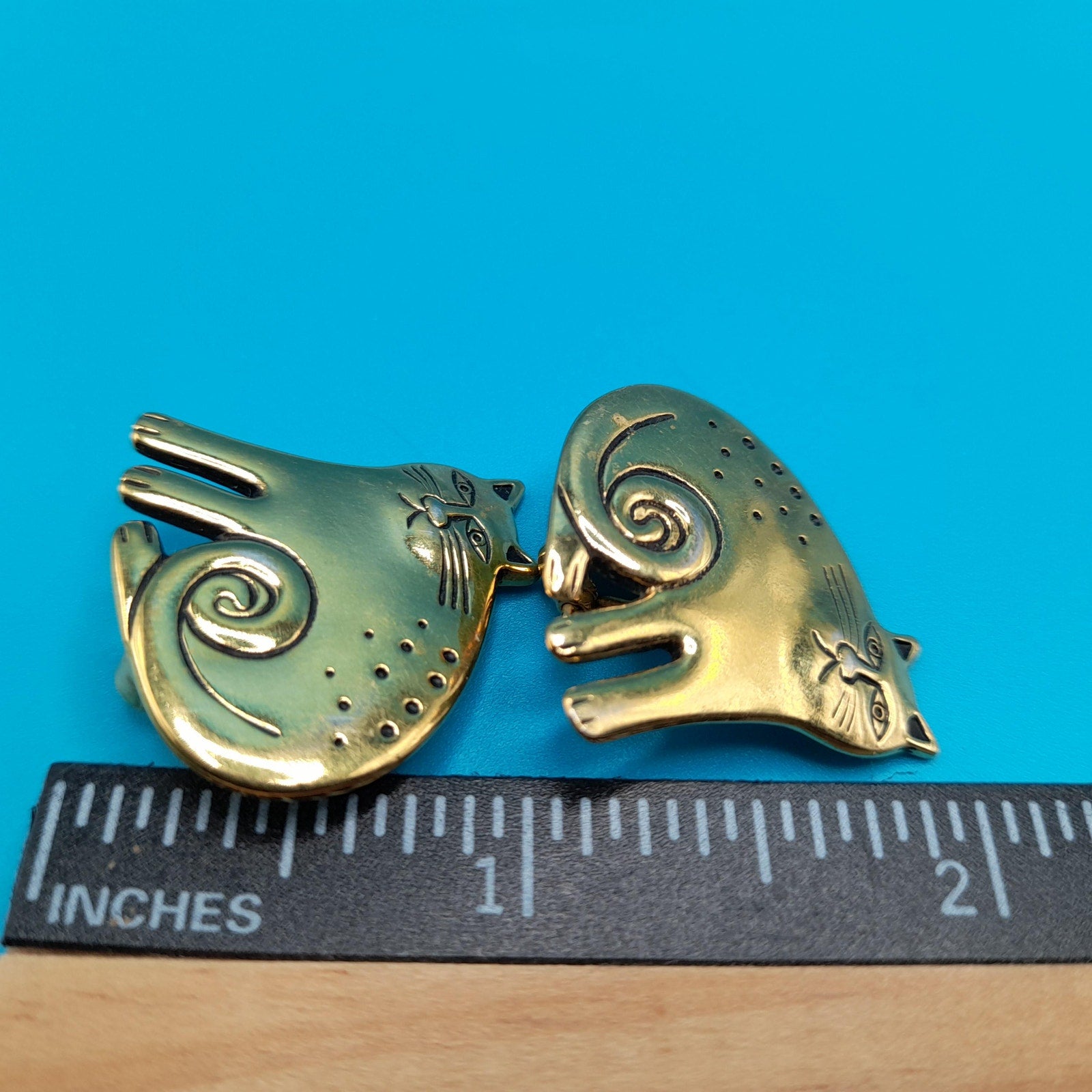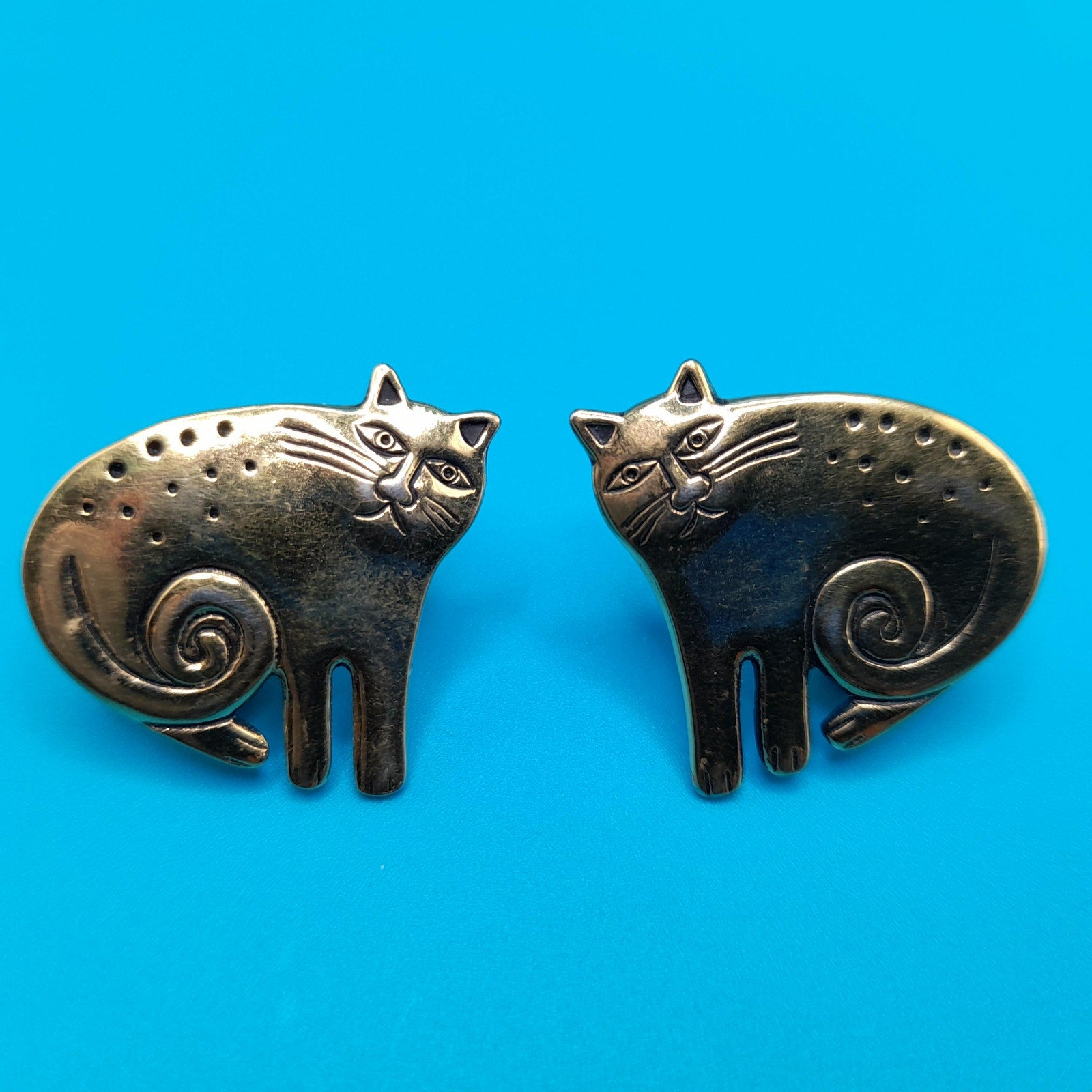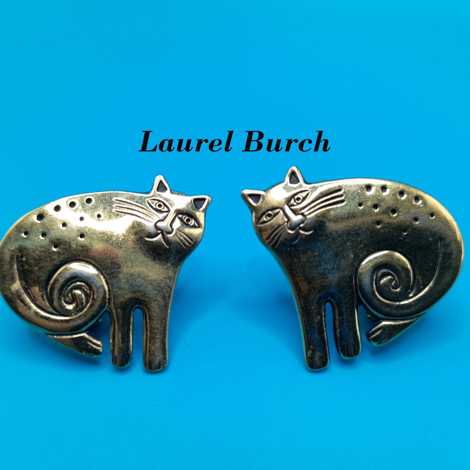 *Description: This is a great pair of Laurel Burch gold plated cat clip on earrings from the 1980s. Both earrings are stamped Laurel Burch and have an open clip which is very comfortable. The earrings have black enamel in the line work. This would be a great addition to your vintage jewelry collection or make a great vintage gift!