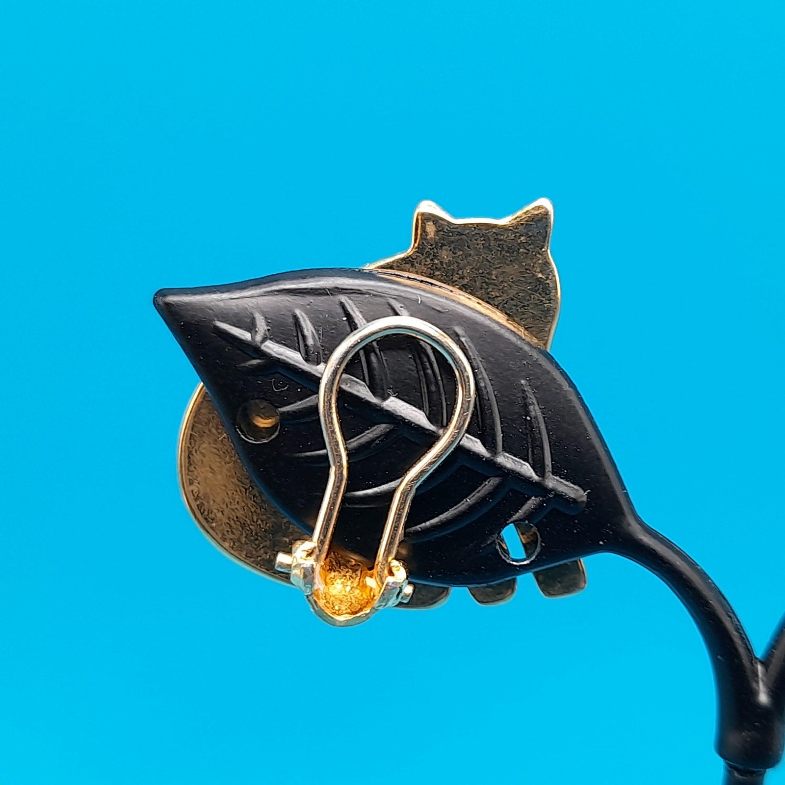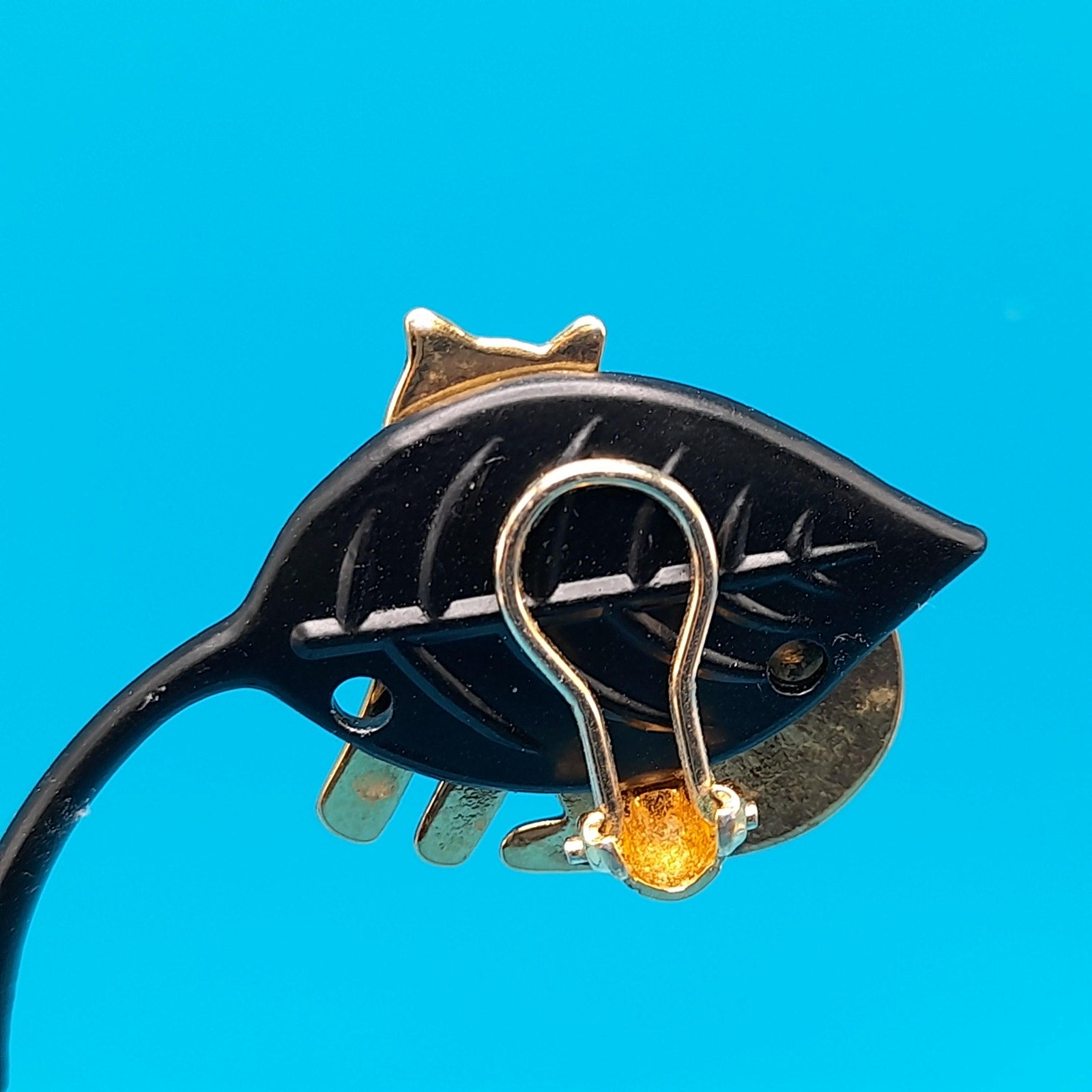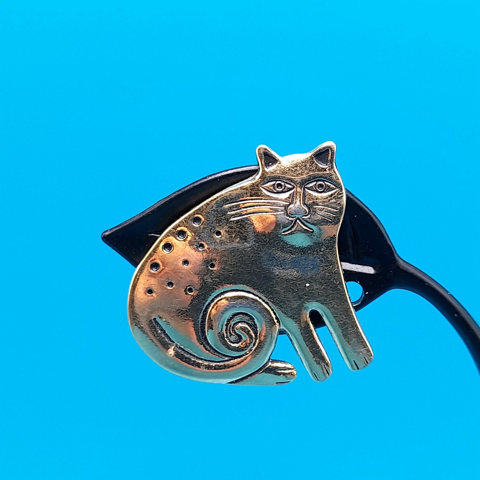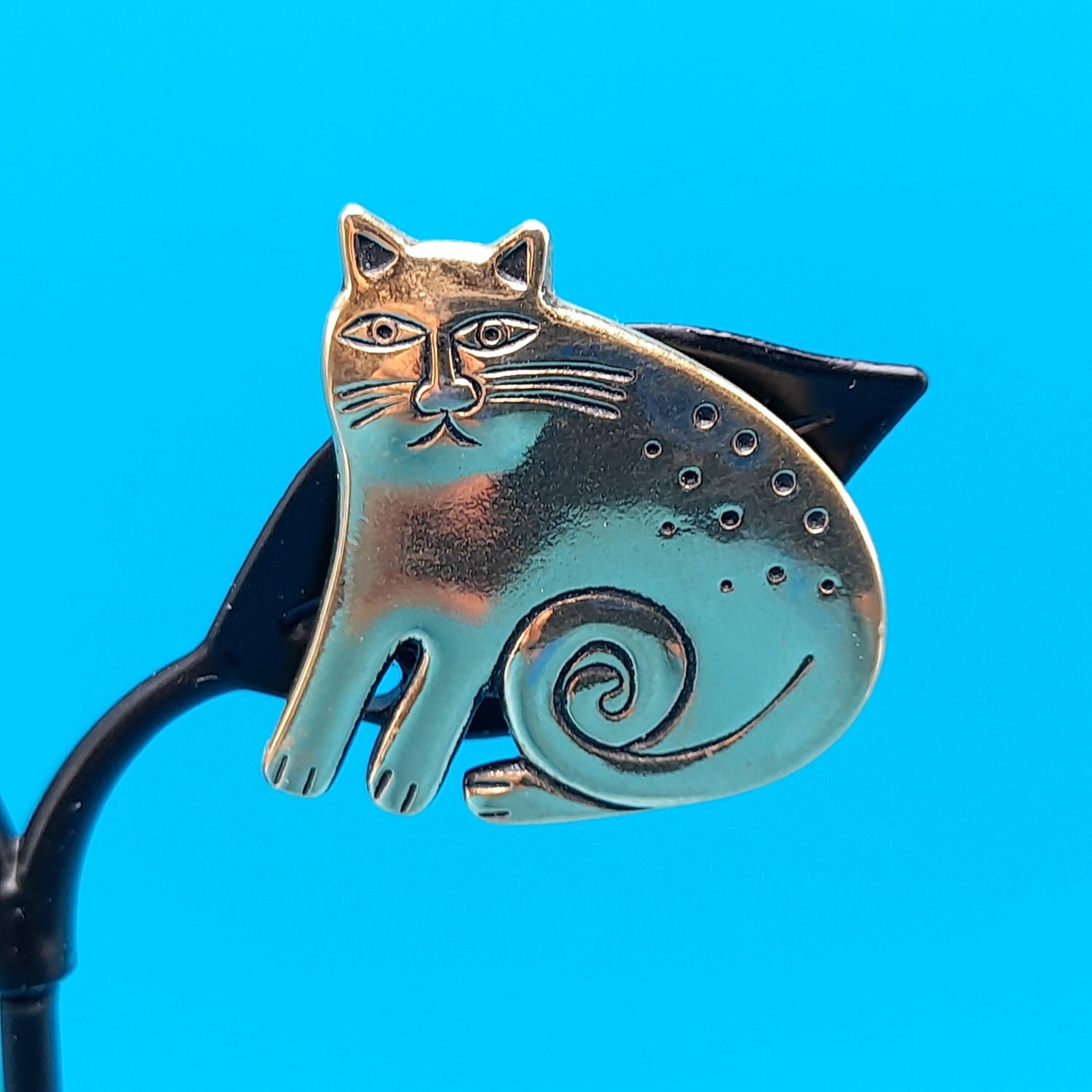 *Description: This is a great pair of Laurel Burch gold plated cat clip on earrings from the 1980s. Both earrings are stamped Laurel Burch and have an open clip which is very comfortable. The earrings have black enamel in the line work. This would be a great addition to your vintage jewelry collection or make a great vintage gift!