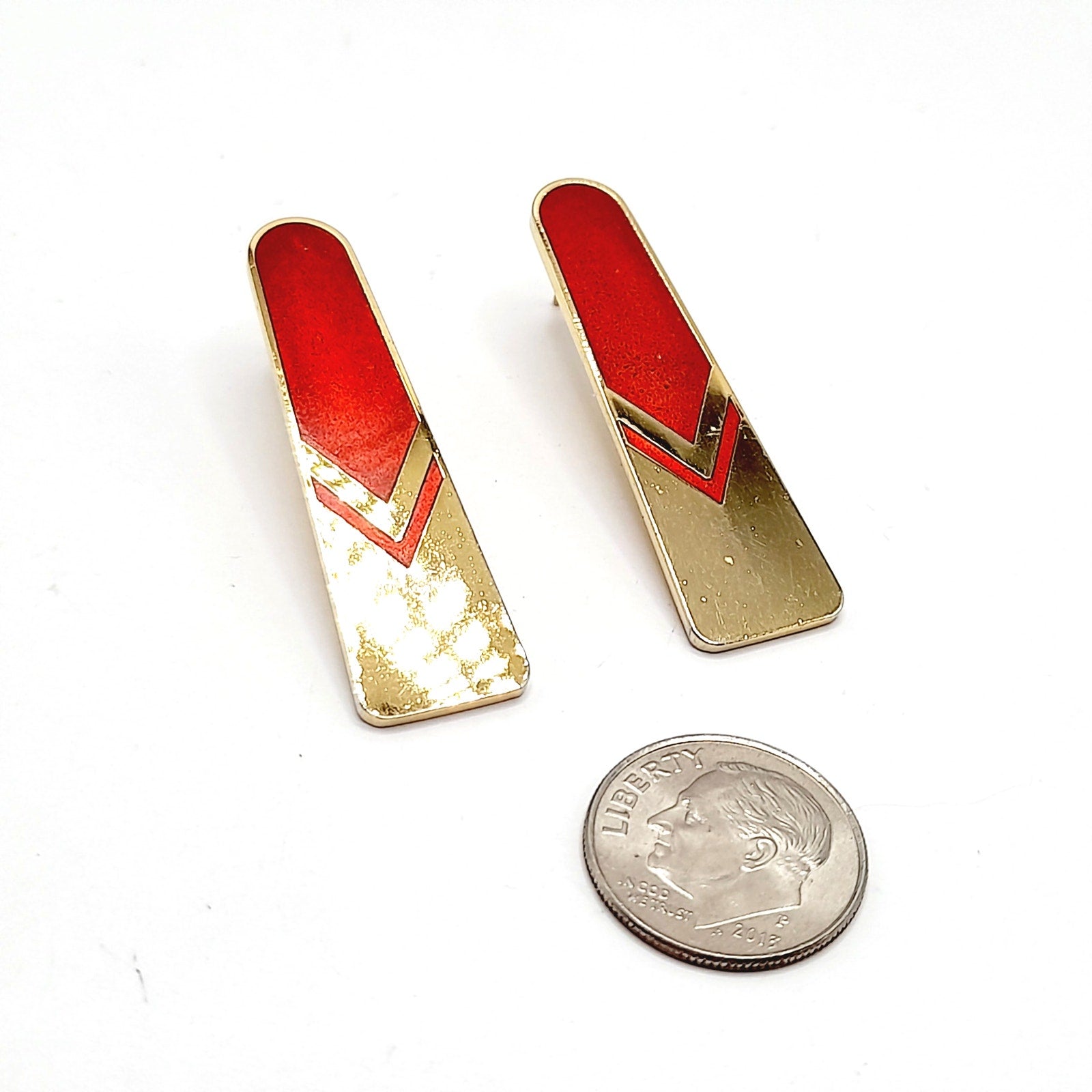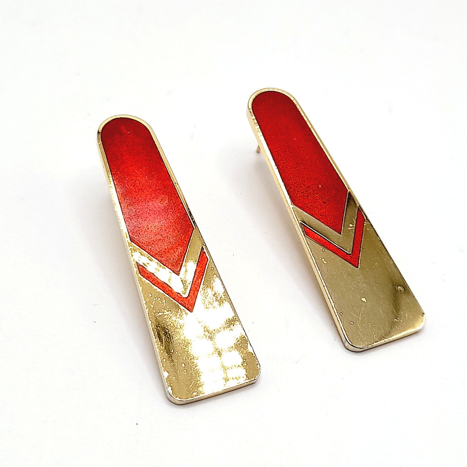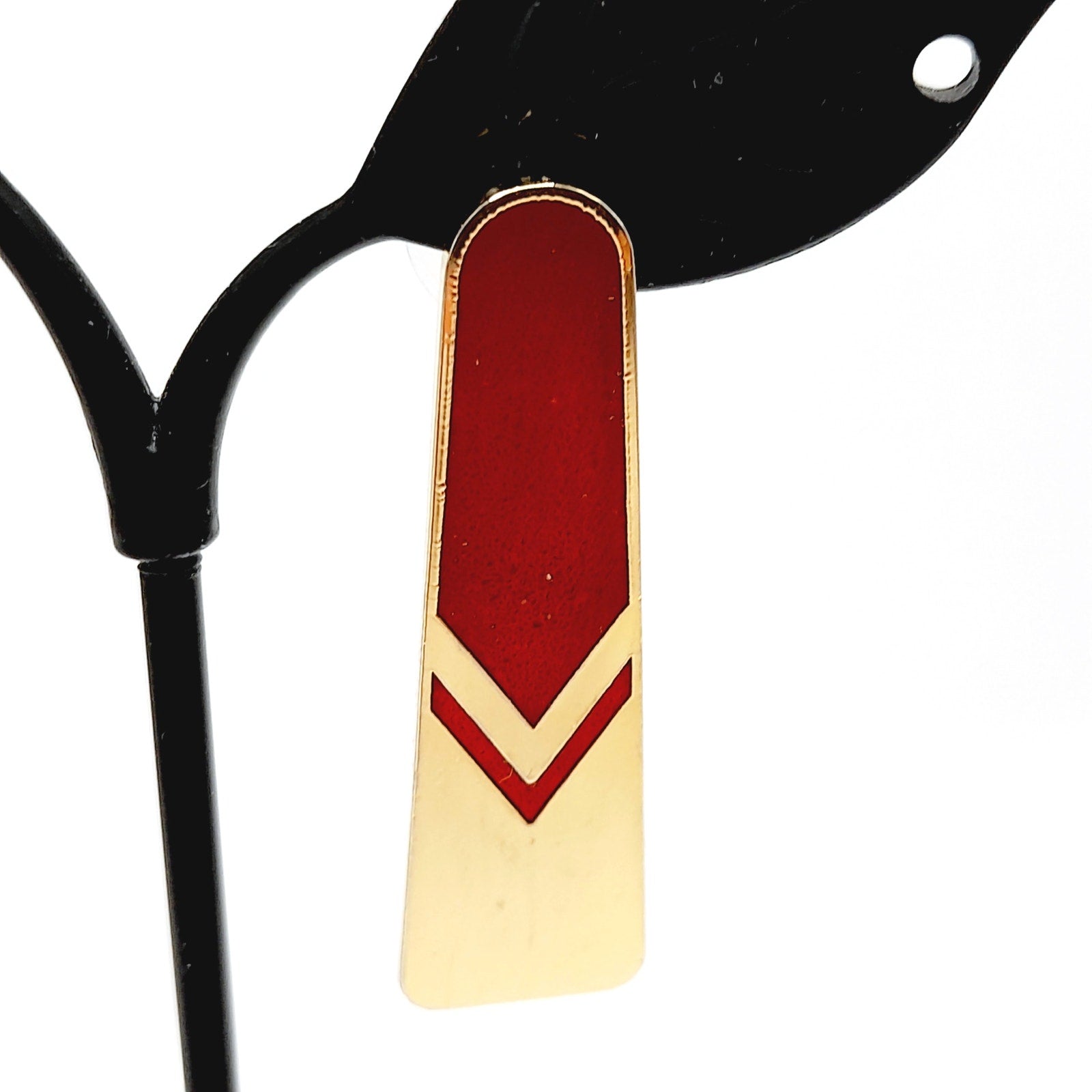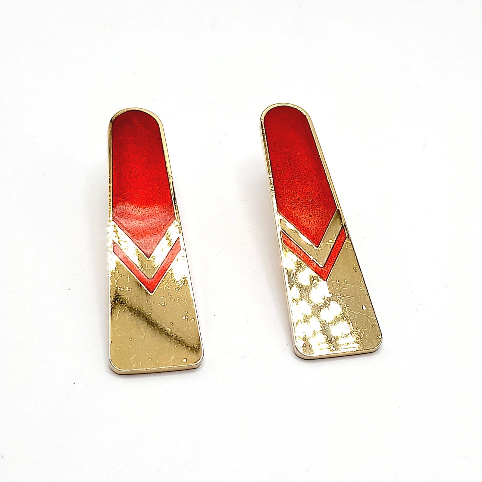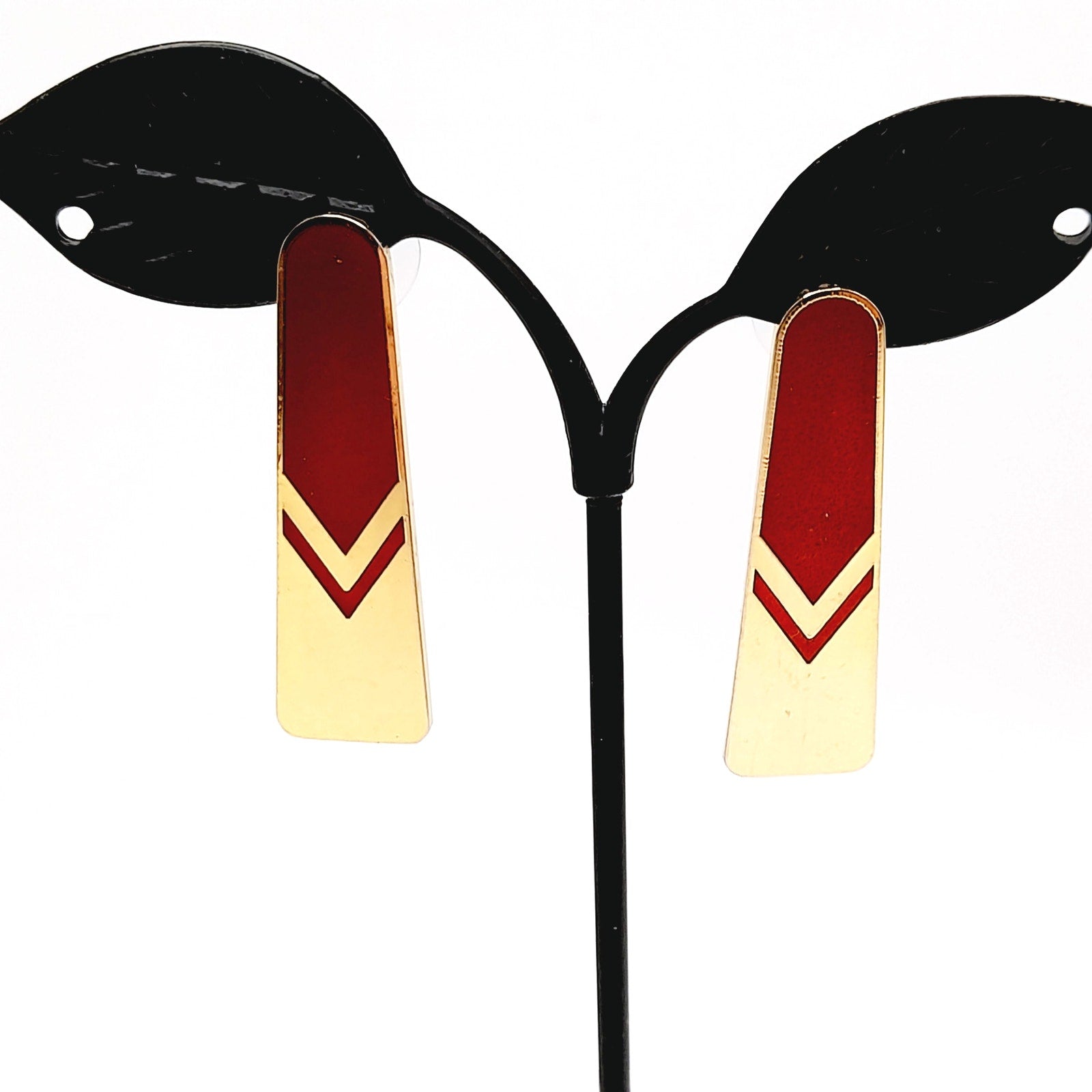 Vintage Laurel Burch Gold Red Chevron Post Earrings, 1980s, Gold Plated
