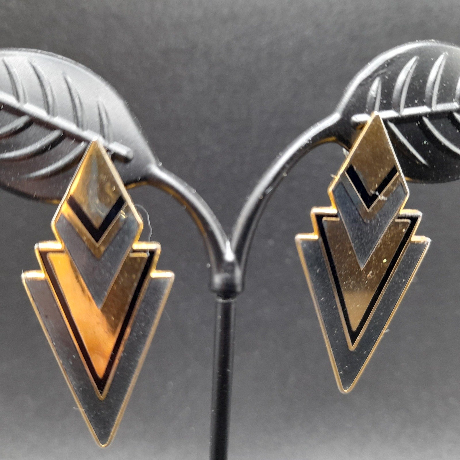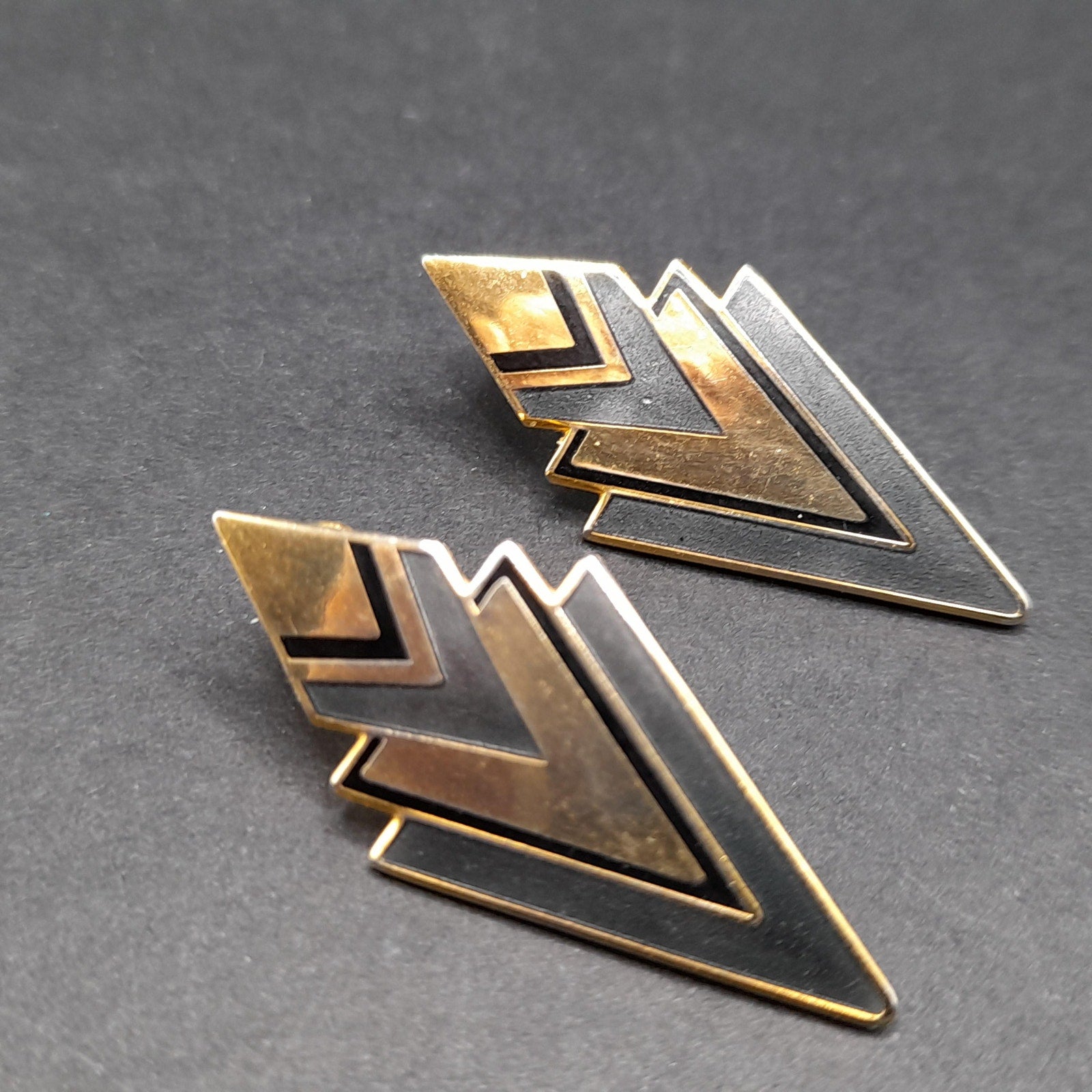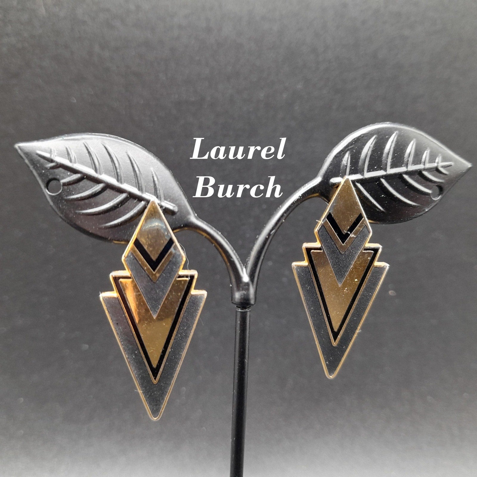 *Description: This is a great pair of Laurel Burch geometric post earrings with gray and black enamel on a gold plated diamond shape posts from the 1980s. This would be a great addition to your vintage jewelry collection or make a great vintage gift!