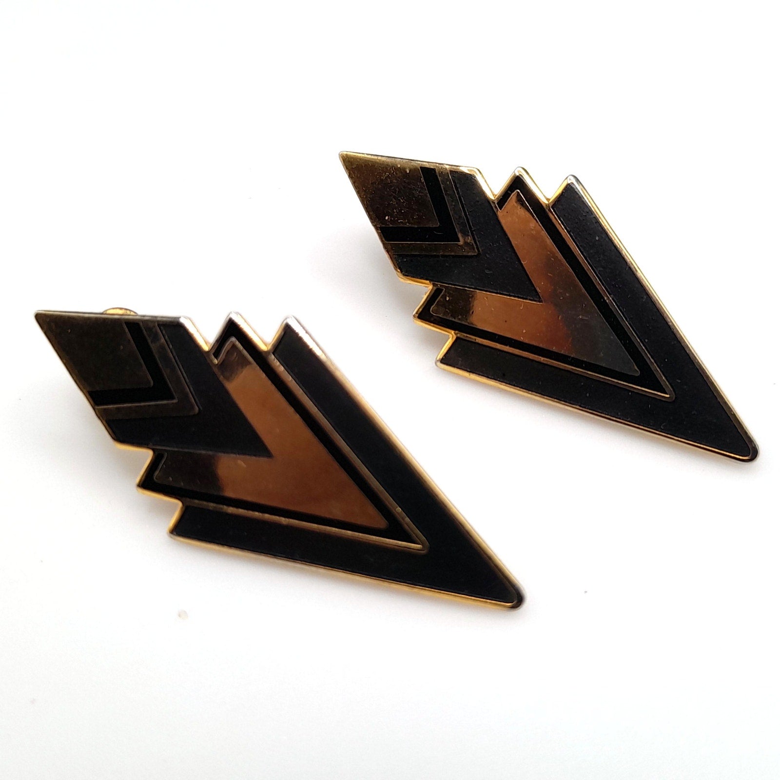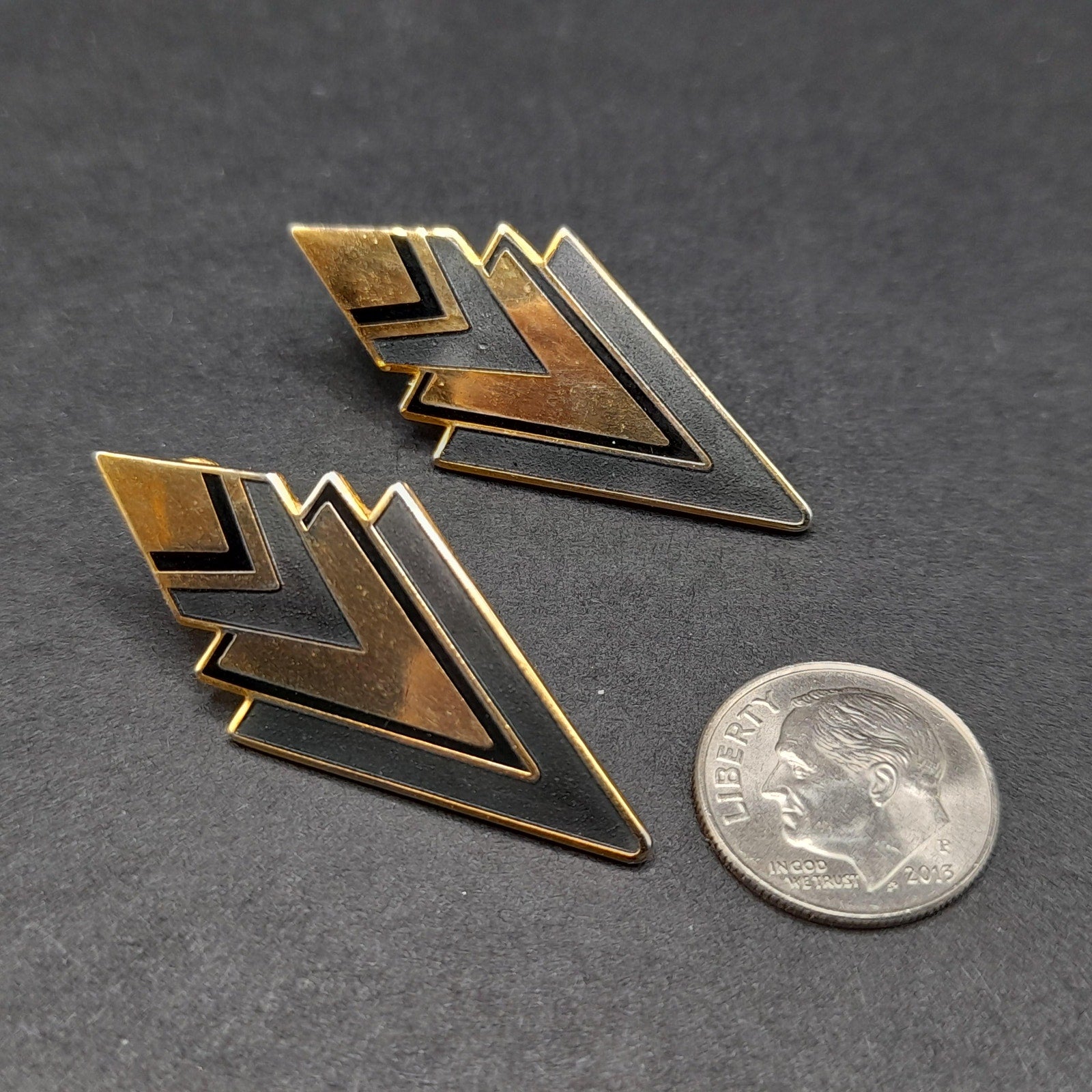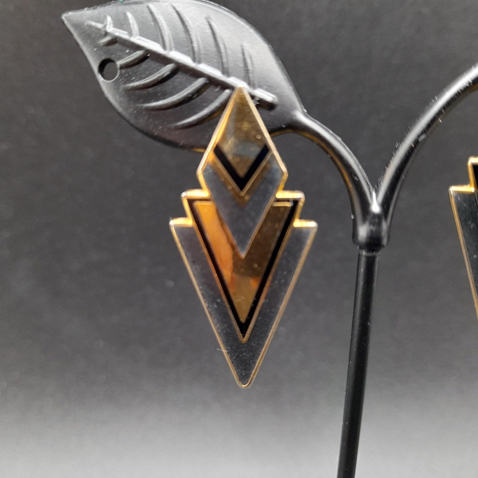 *Description: This is a great pair of Laurel Burch geometric post earrings with gray and black enamel on a gold plated diamond shape posts from the 1980s. This would be a great addition to your vintage jewelry collection or make a great vintage gift!