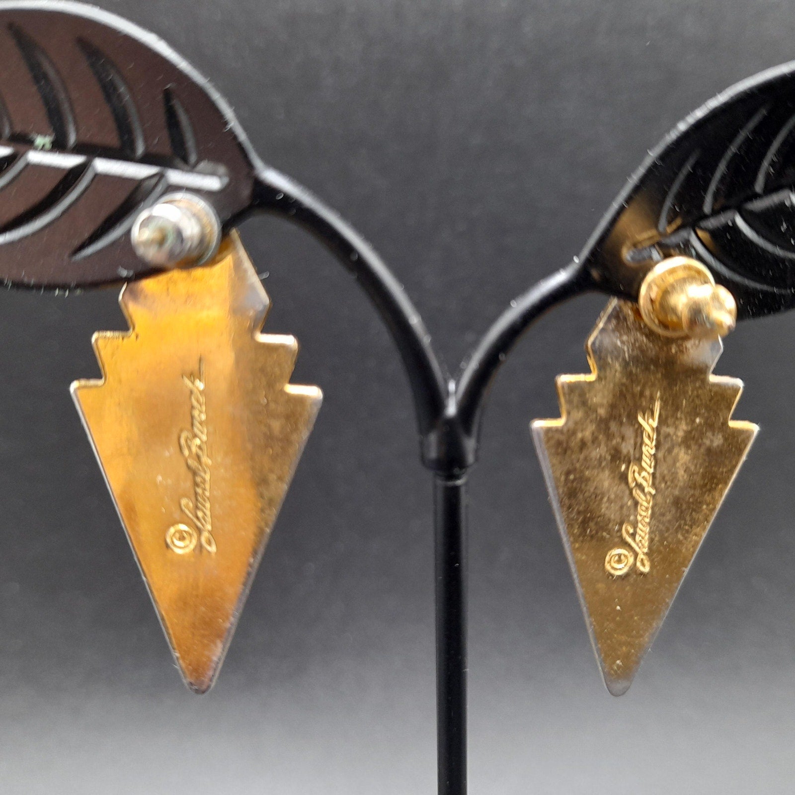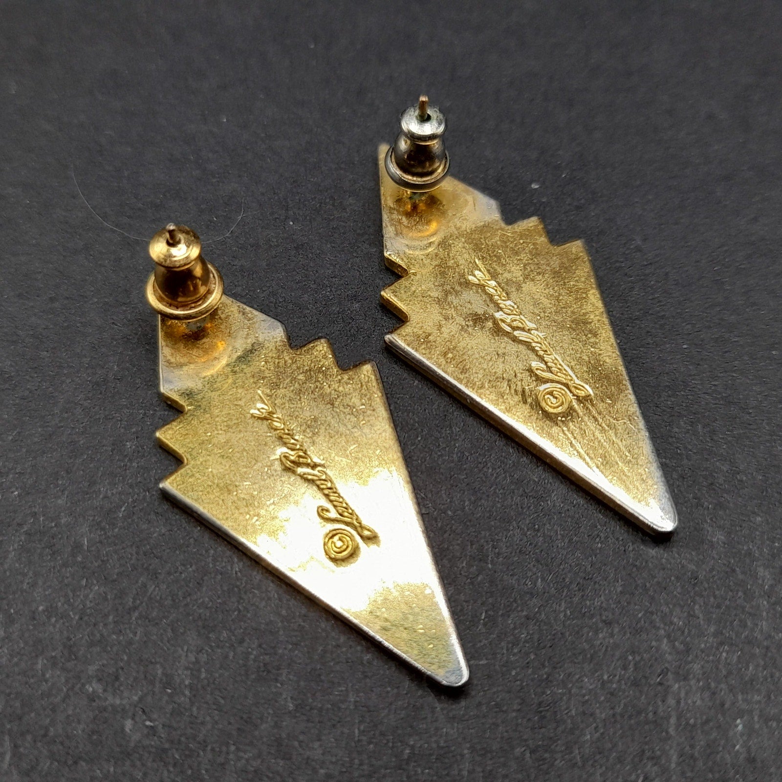 Vintage Laurel Burch Gray Gold Post Earrings, Geometric Gold Plated