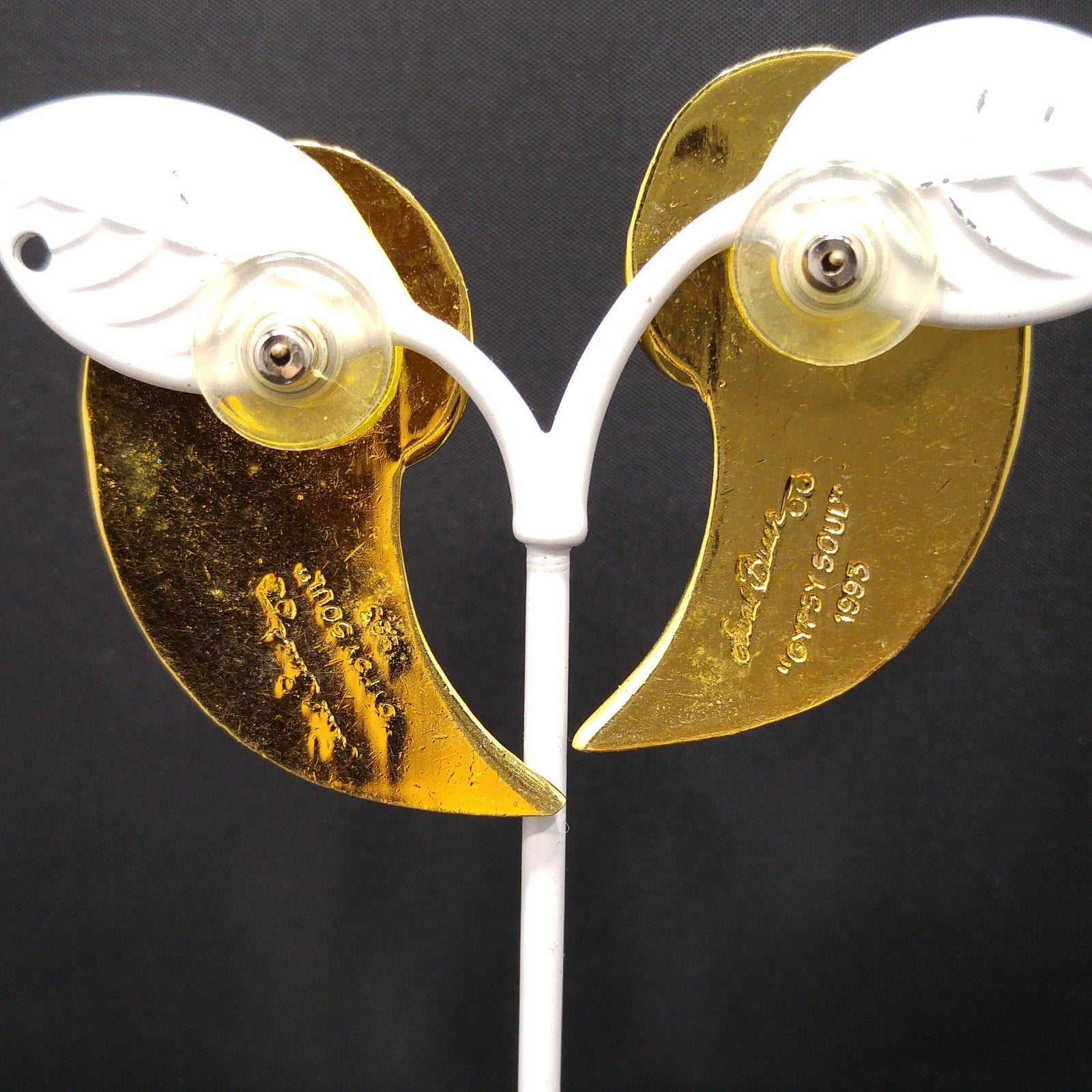 Vintage Laurel Burch "Gypsy Soul 1993" Post Earrings, Gold Plated, Enamel, 1990s