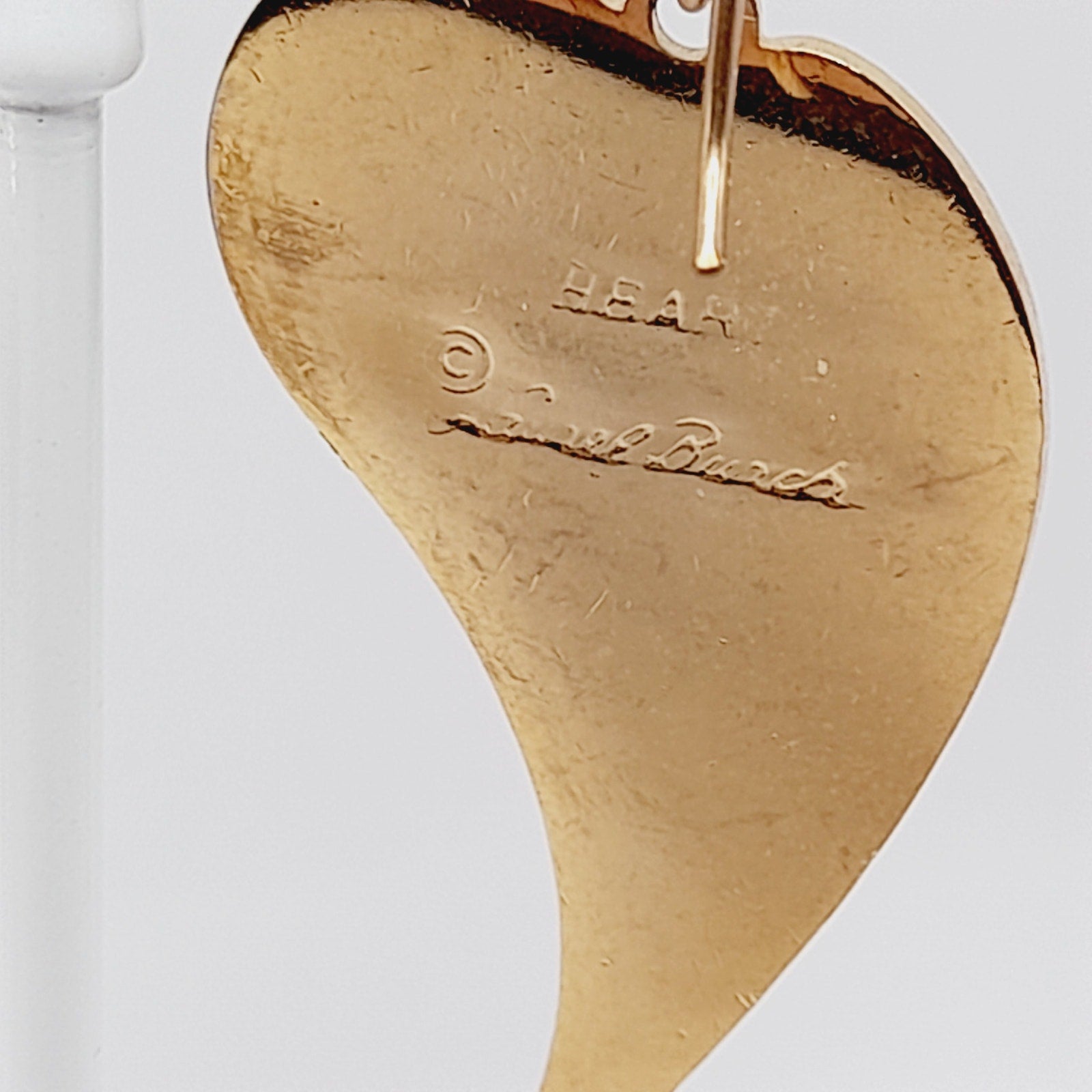 Add a touch of whimsical charm to your jewelry collection with these vintage Laurel Burch heart dangle earrings. Featuring vibrant blue enamel with intricate detailing, each heart is framed in warm gold-plated metal that captures the light beautifully. The playful yet elegant design reflects Laurel Burch’s signature style—bold colors, joyful shapes, and timeless artistry. Measuring approximately 2 inches long, these earrings are lightweight and comfortable to wear, perfect for adding a pop of color to any outfit. A wonderful gift for collectors, art jewelry lovers, or anyone who appreciates unique vintage treasures.