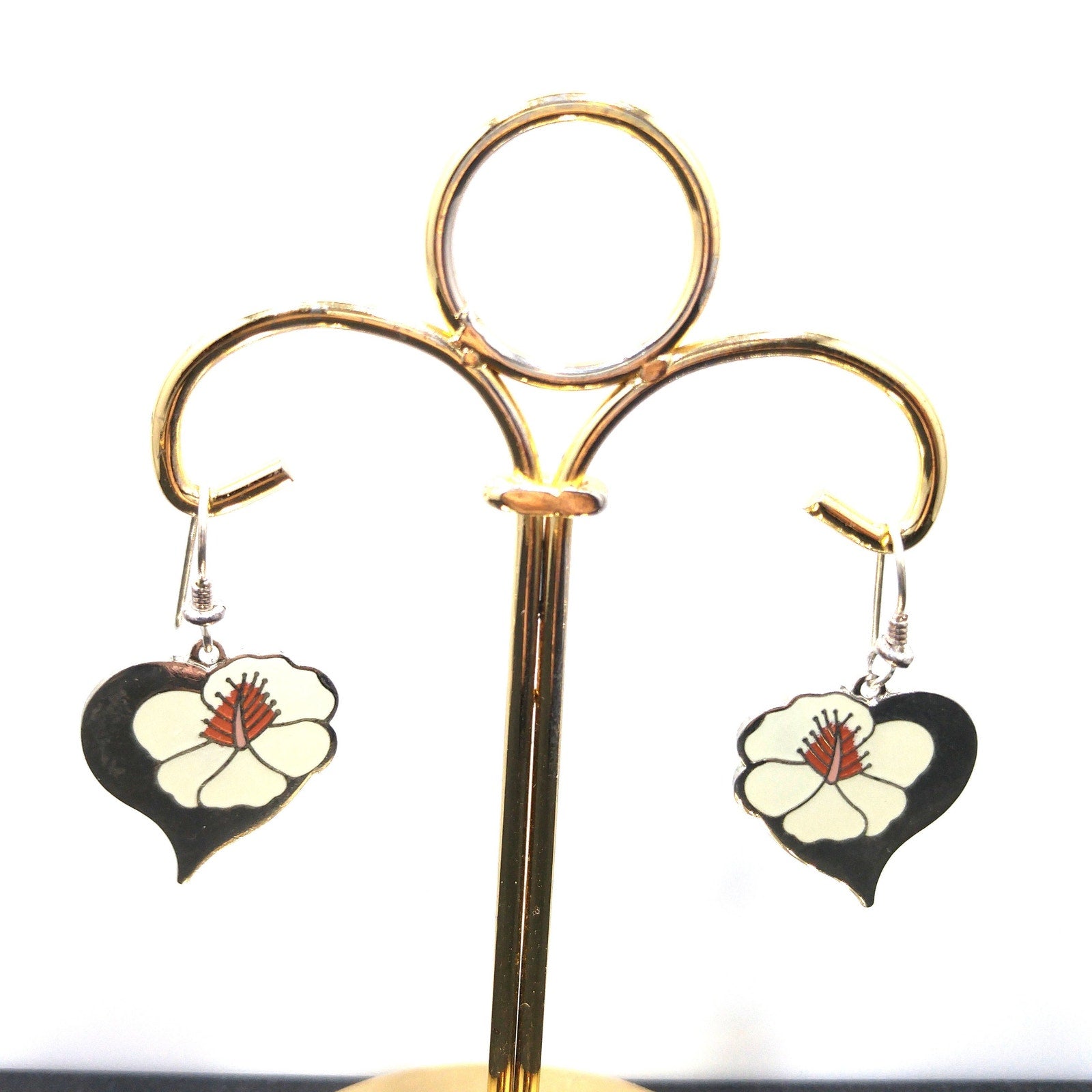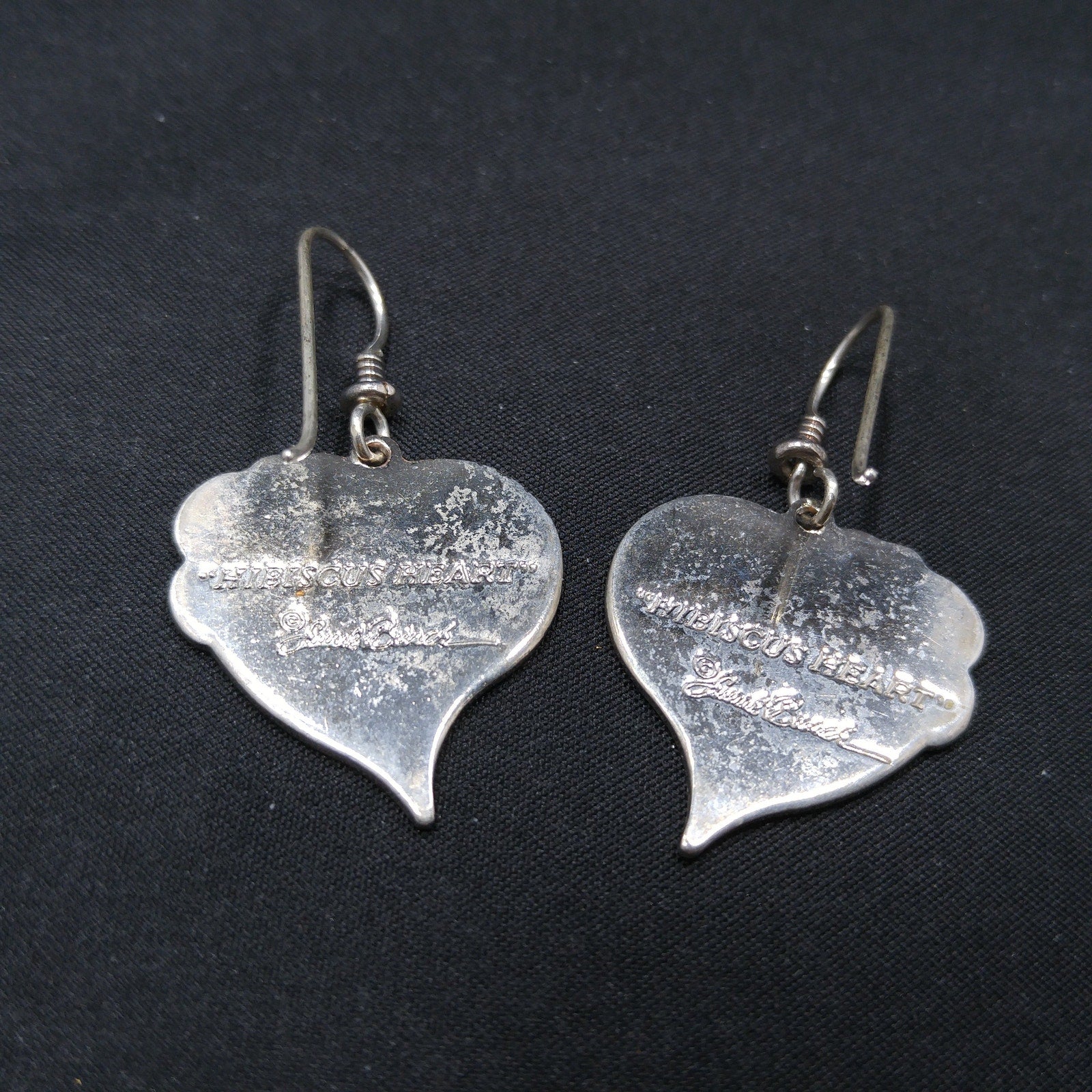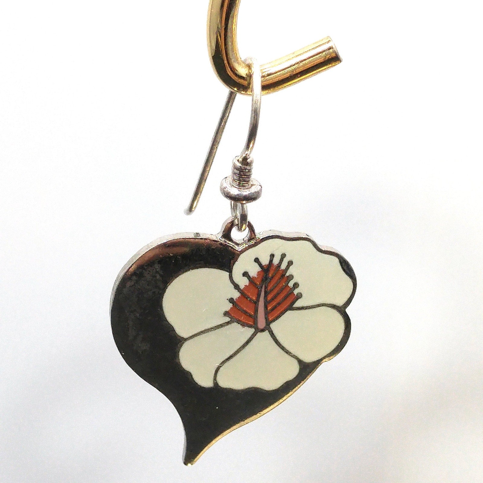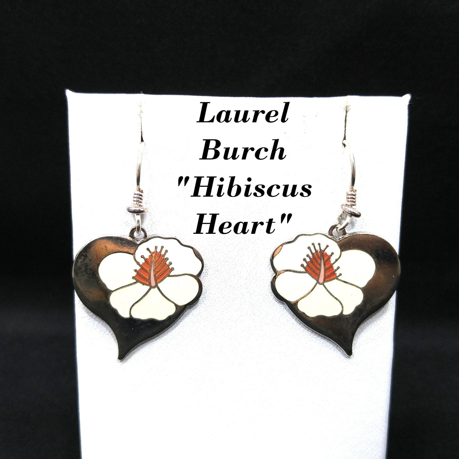 Vintage Laurel Burch "Hibiscus Heart" Earrings, Enamel Rhodium Plated