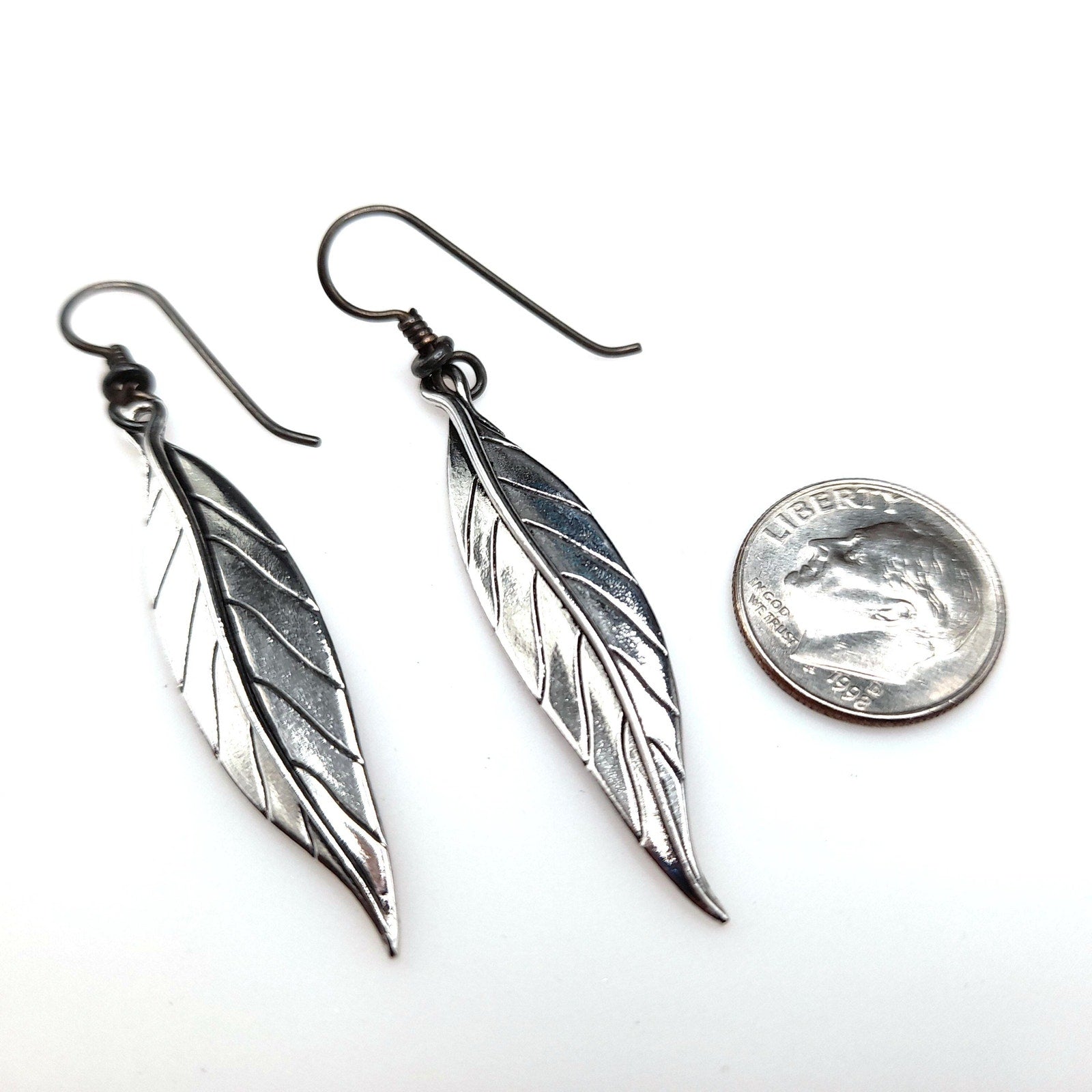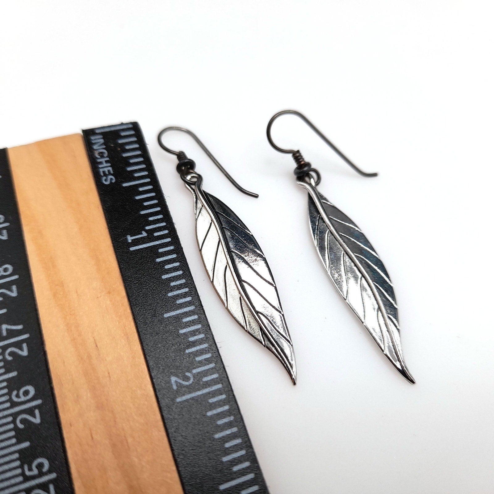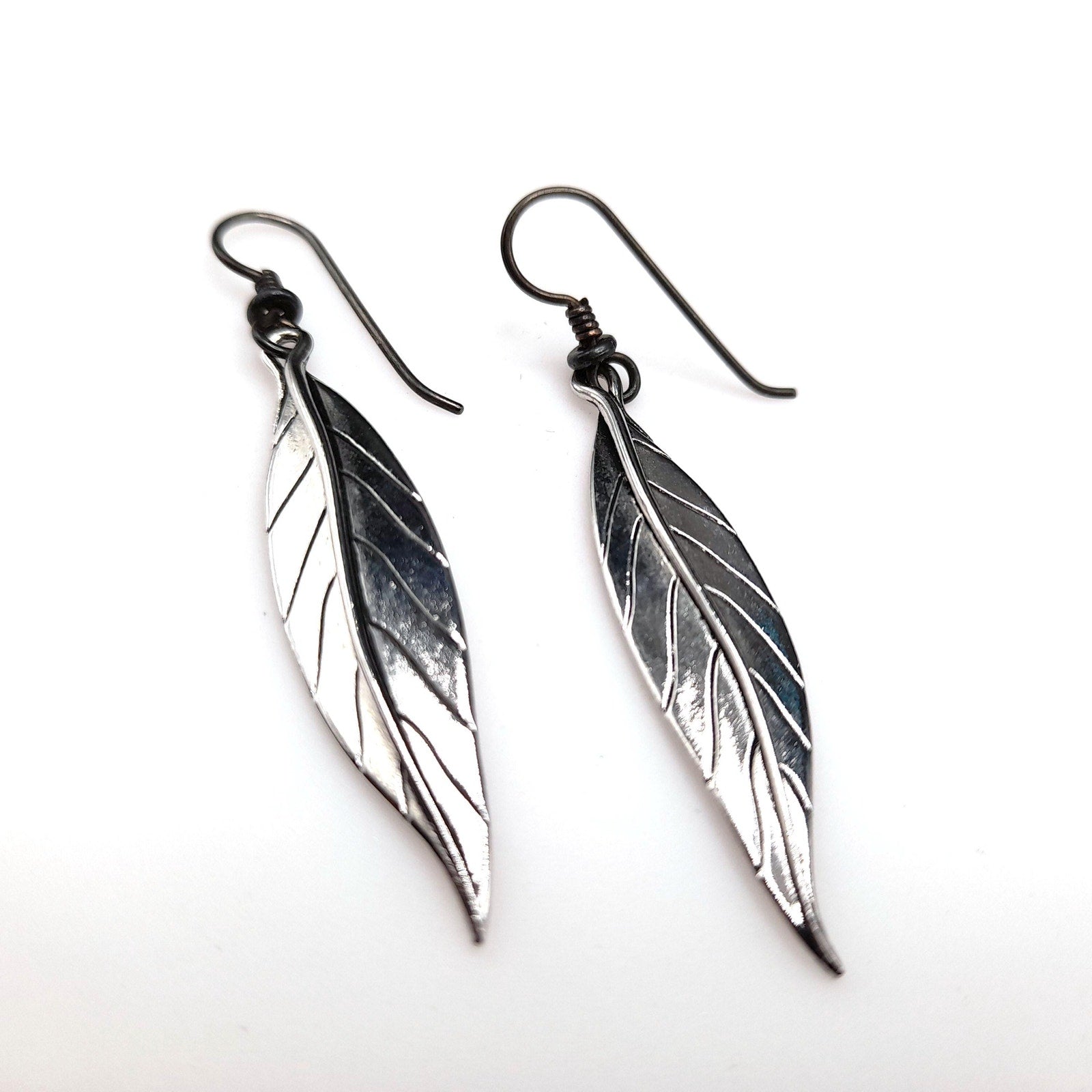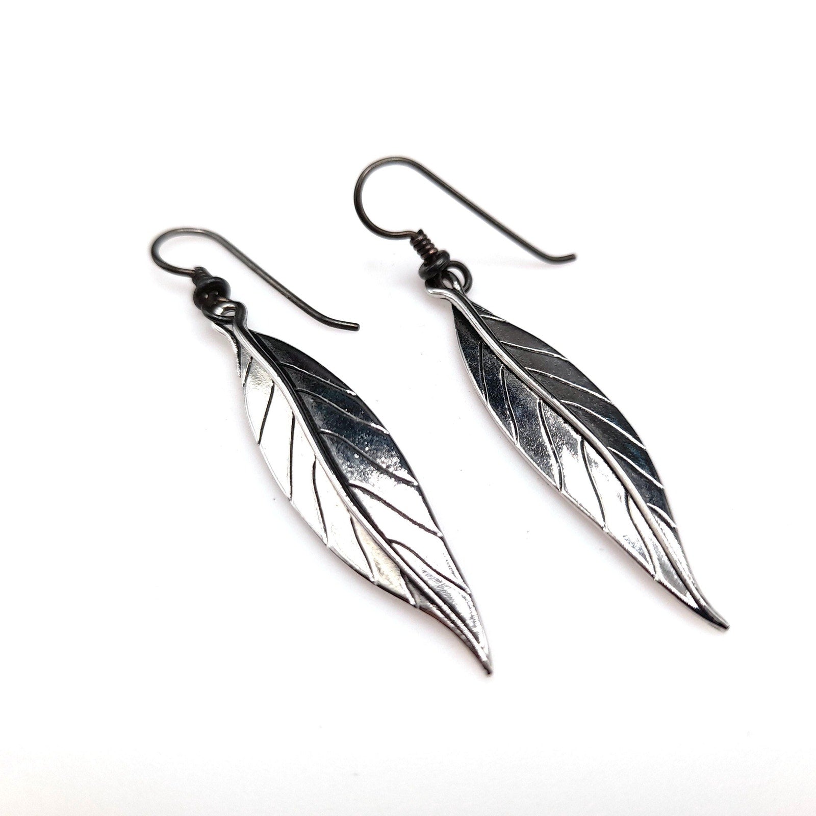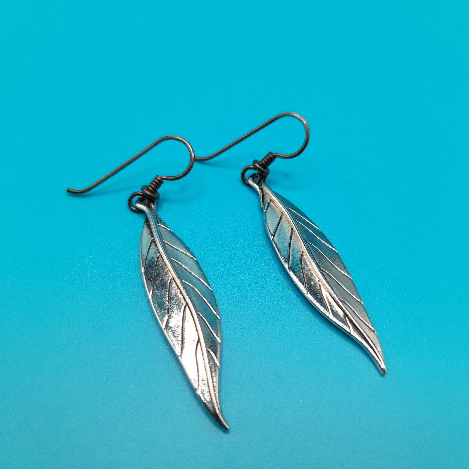 *Description: This is a great pair of Laurel Burch Leaf drop earrings from the 1980s. Each leaf is rhodium plated and on silver plated ear wires. Laurel Burch used black enamel in the lines of the design. Each earring is a single long leaf. This would be a great addition to your vintage jewelry collection or make a great vintage gift!