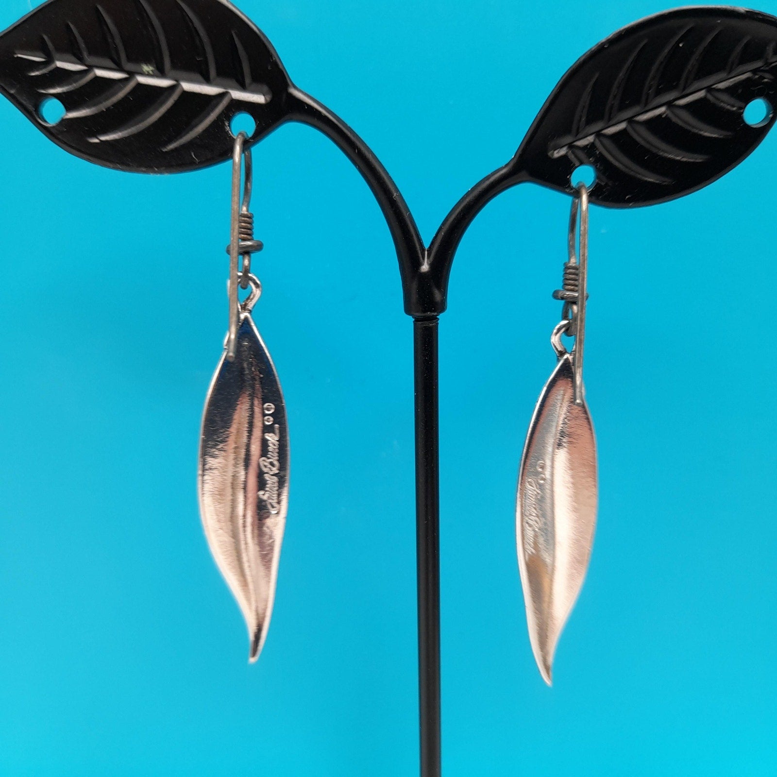 Vintage Laurel Burch Leaf Drop Earrings, Rhodium Plated Leaves