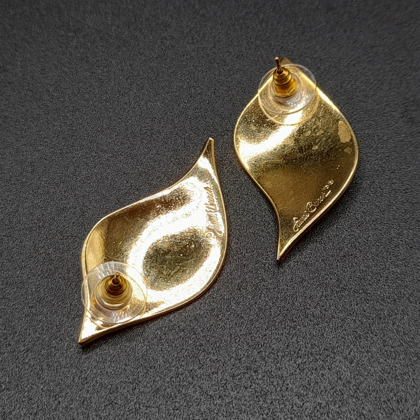 Vintage Laurel Burch Leaf Post Earrings, Gold Plated, 1 5/8 Inches