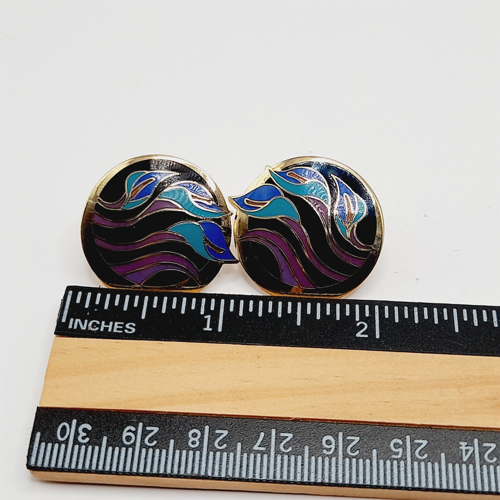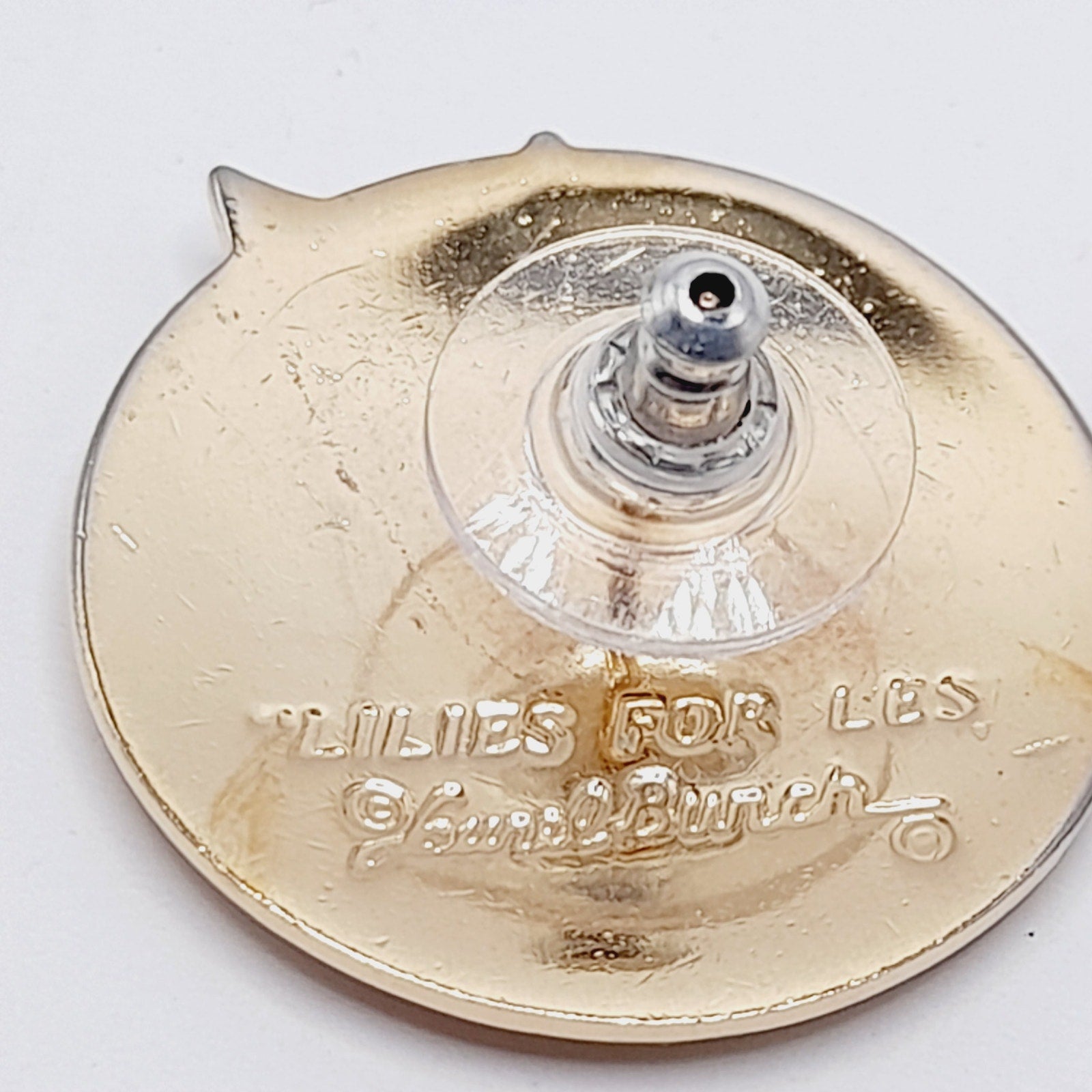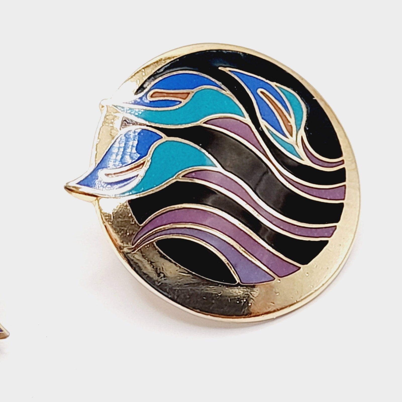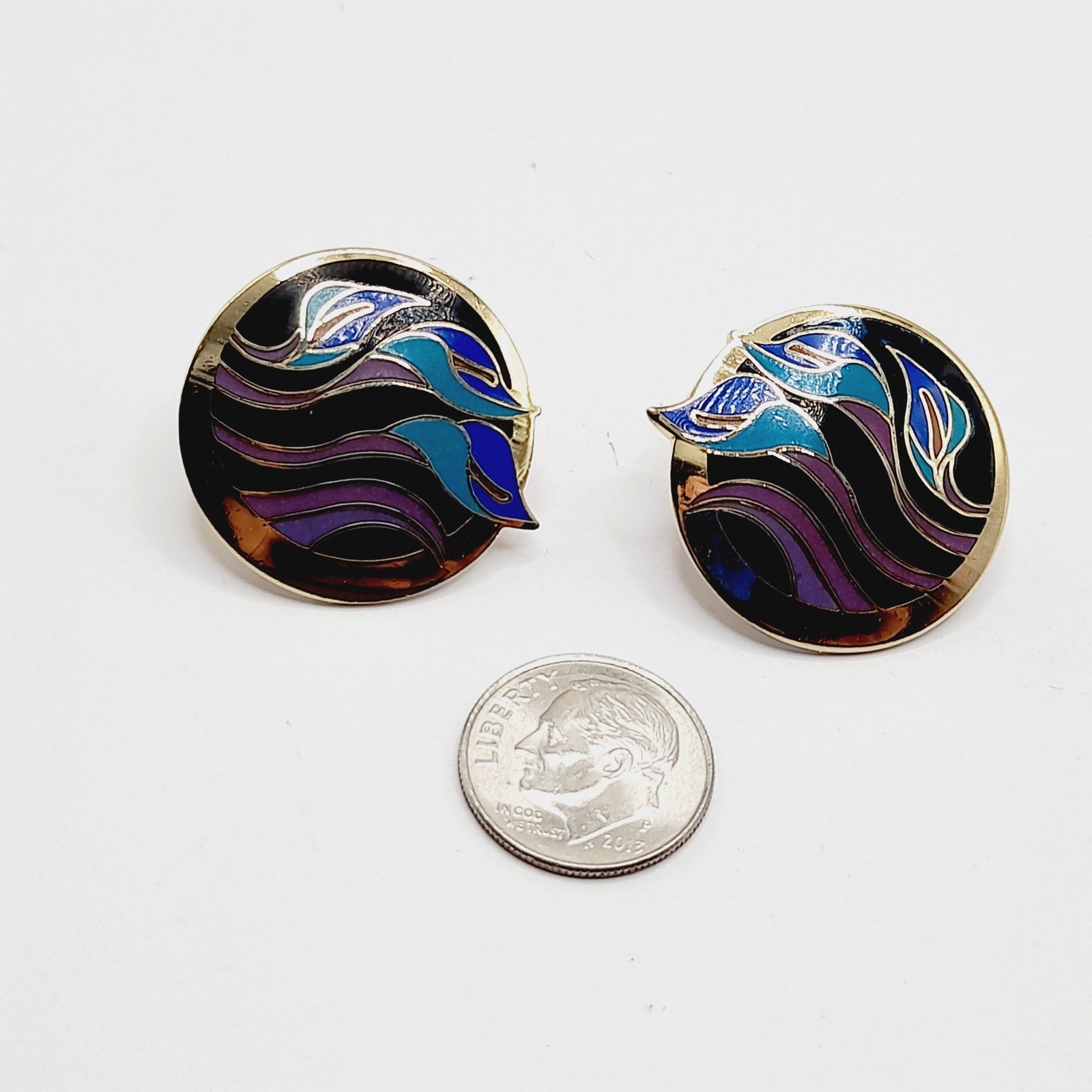 Celebrate the artistry of Laurel Burch with these vintage “Lilies for Les” post earrings, a rare and collectible design from her vibrant enamel jewelry line. Crafted with rich purple and blue enamel over a warm gold-plated base, each earring features a stylized lily motif that captures Burch’s signature blend of bold color and whimsical elegance. Measuring approximately 1 inch, these earrings are the perfect size for everyday wear while still making a statement. Lightweight and comfortable, they are ideal for vintage jewelry collectors, Laurel Burch fans, or anyone who appreciates distinctive, art-inspired accessories.