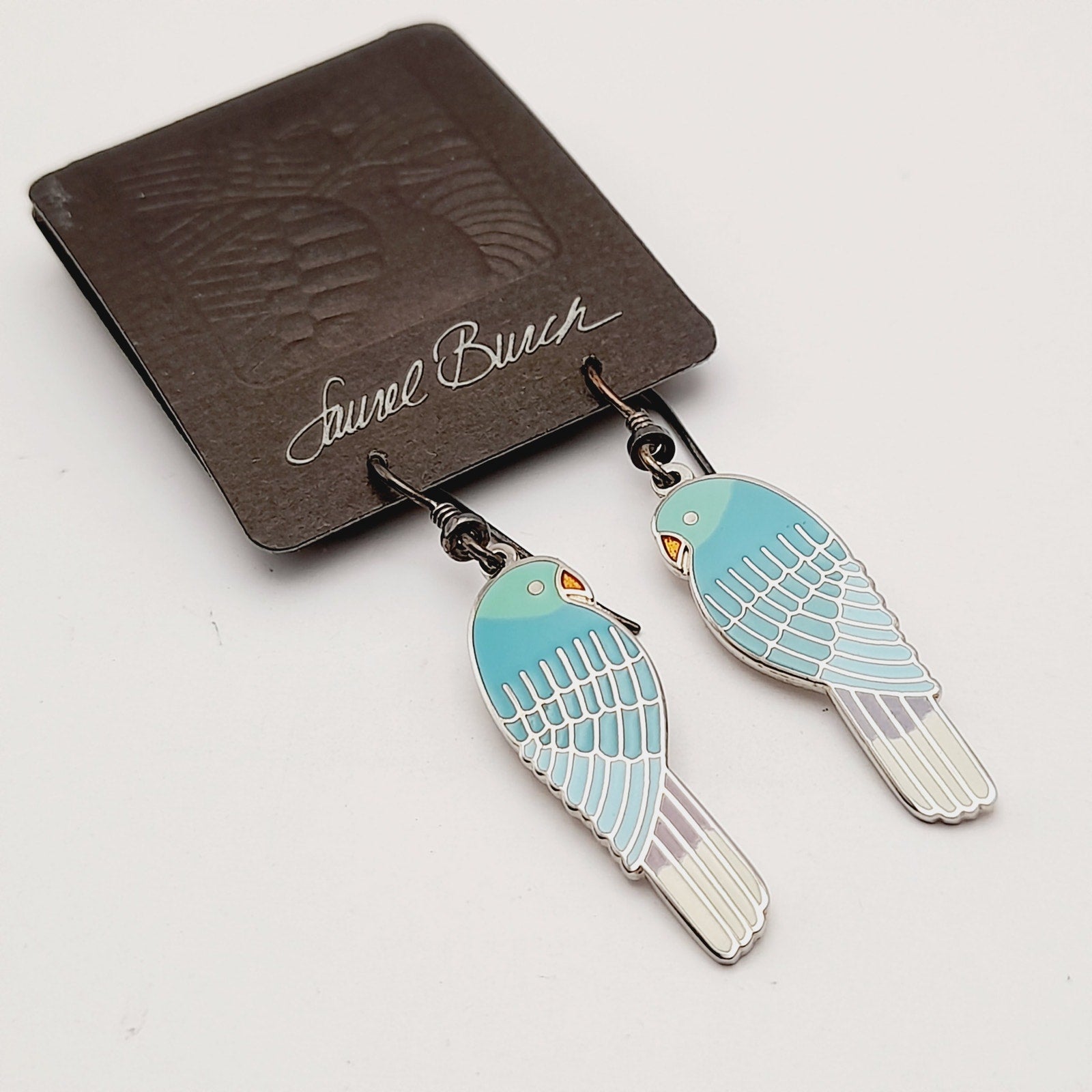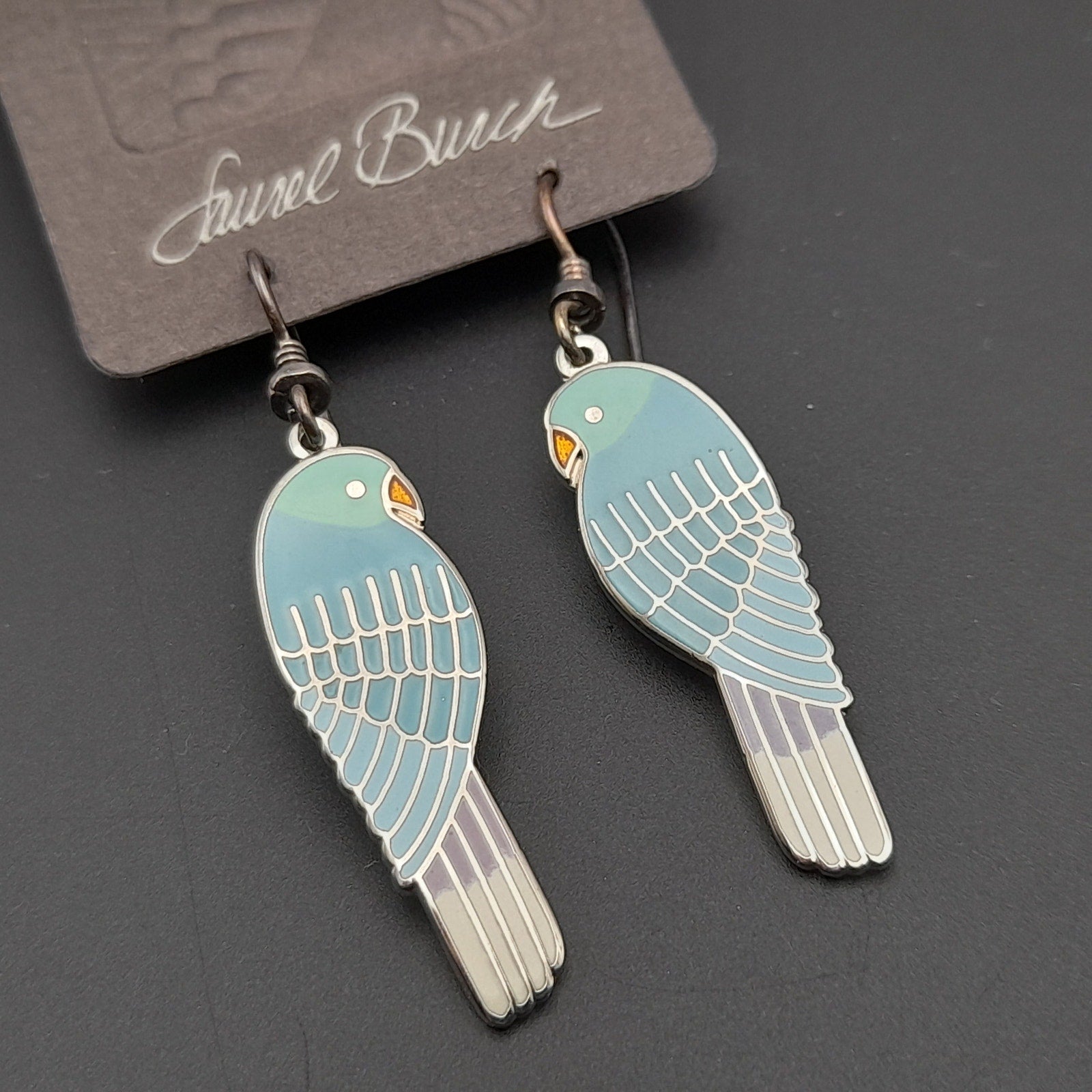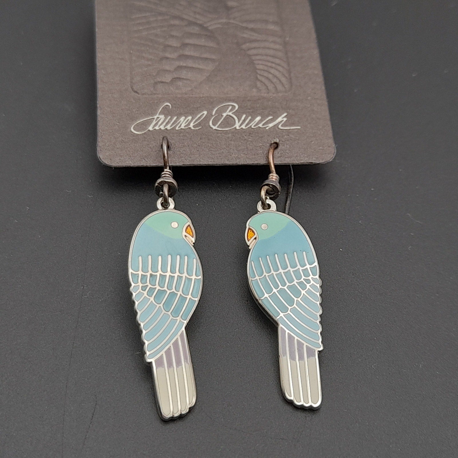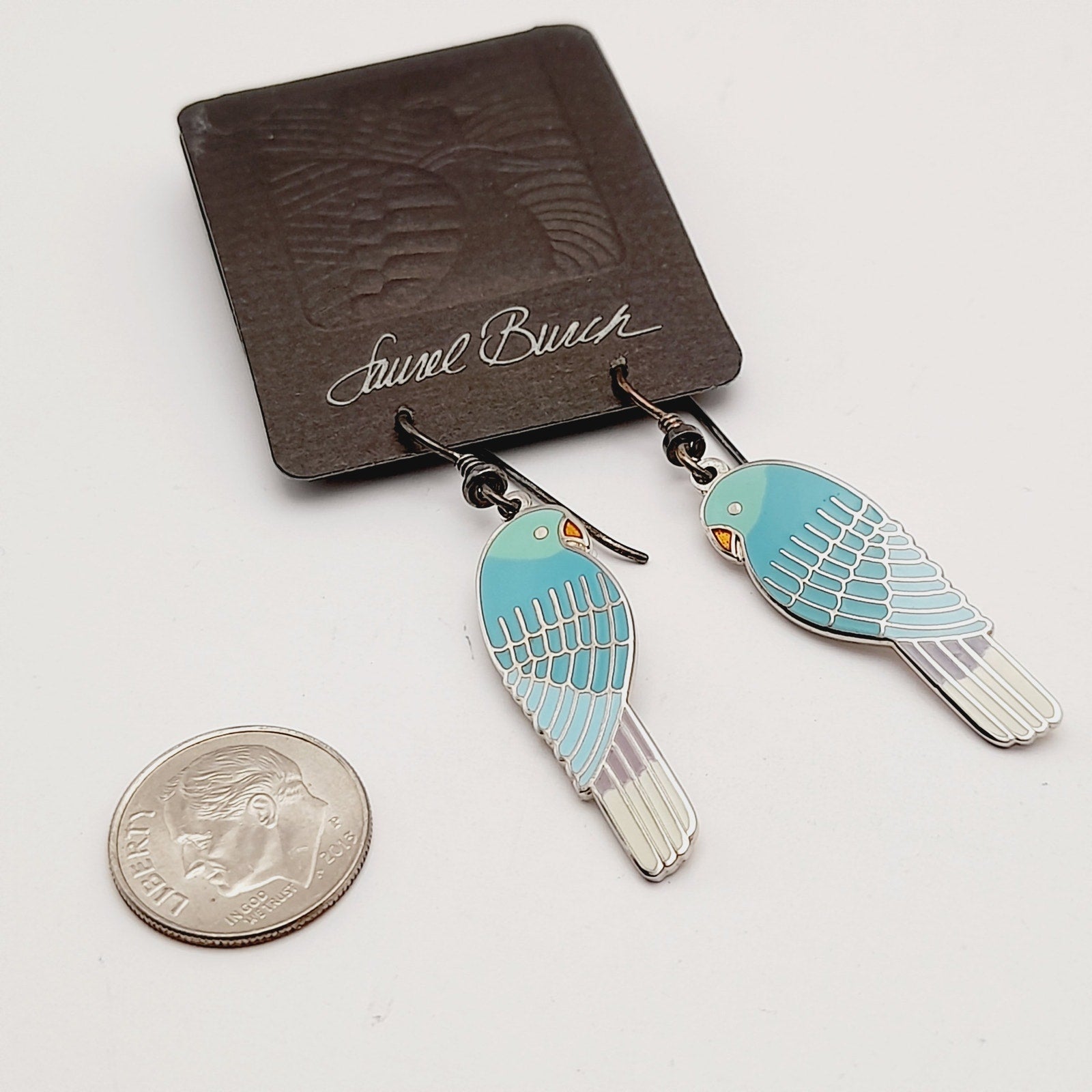 Vintage Laurel Burch Lorikeets Light Blue Enamel Rhodium Plated 1988 Earrings - Silver Plated Earwires - Original Card
