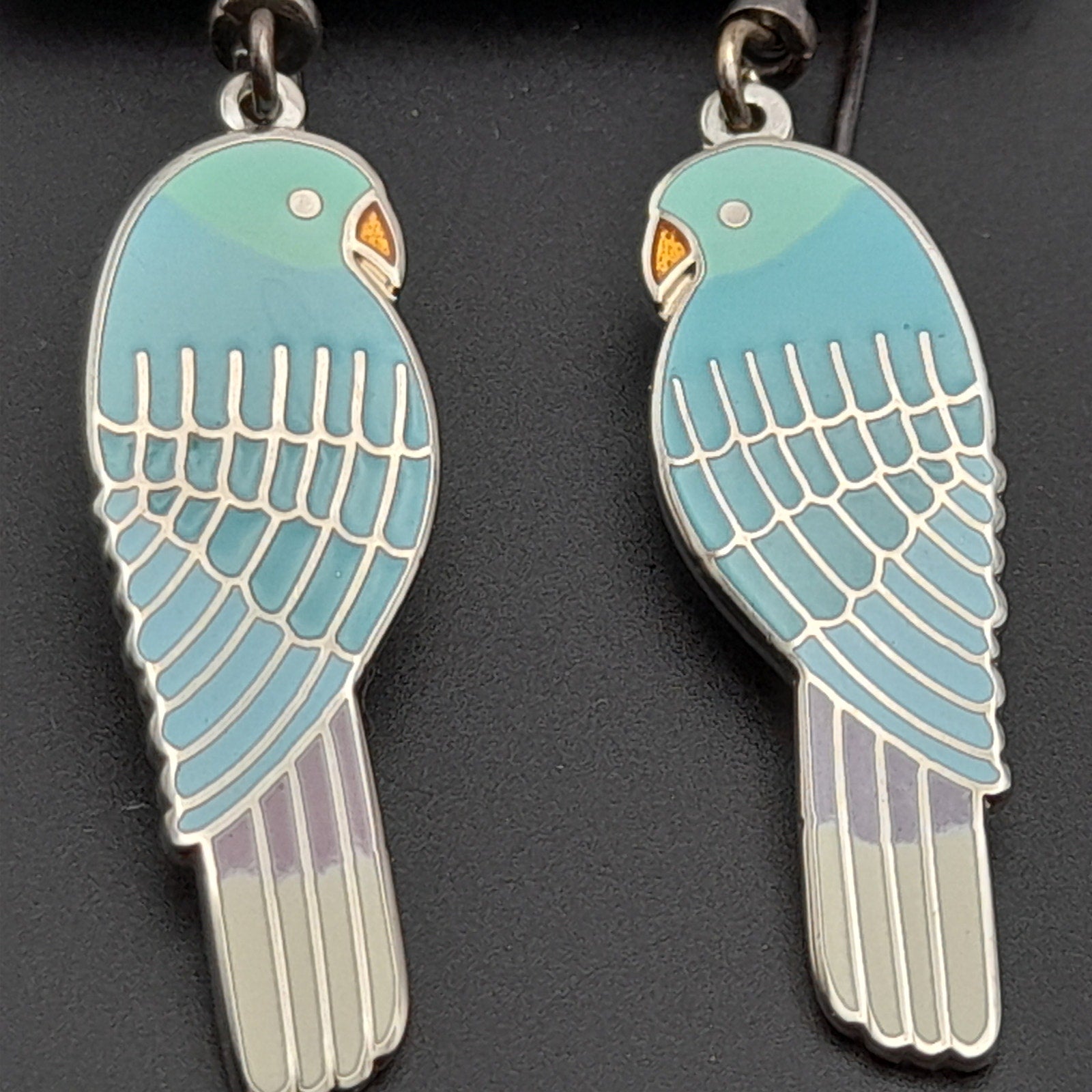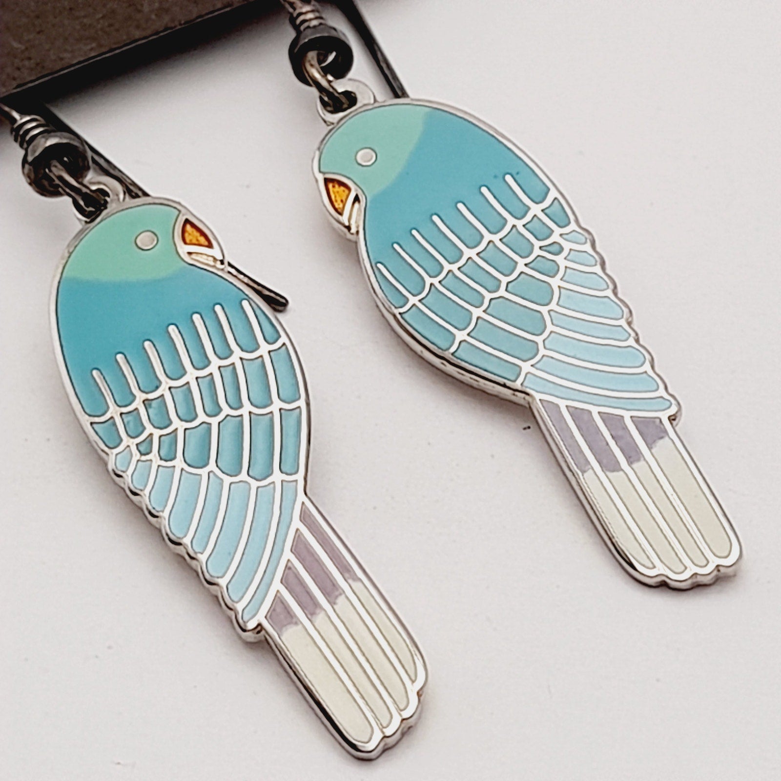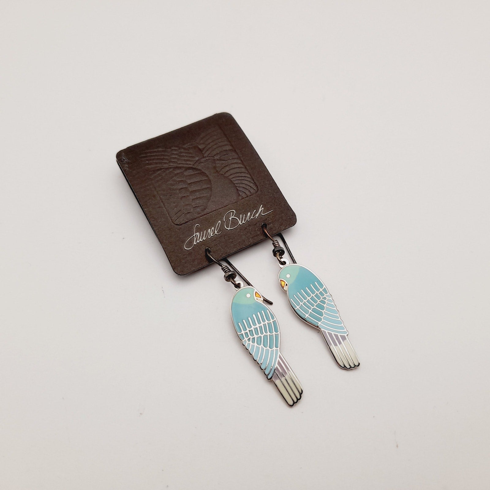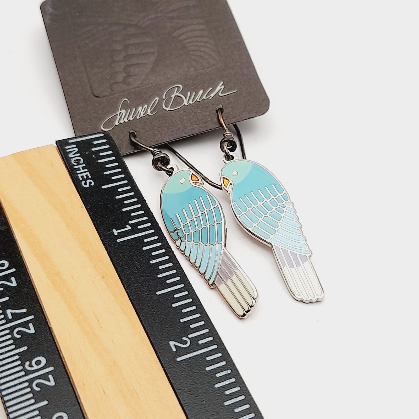 Vintage Laurel Burch Lorikeets Light Blue Enamel Rhodium Plated 1988 Earrings - Silver Plated Earwires - Original Card