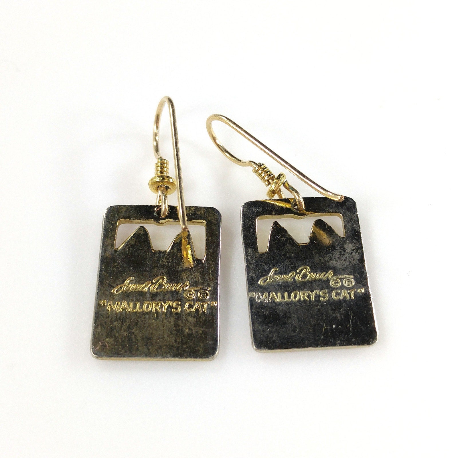 Vintage Laurel Burch "Mallory's Cat" Drop Earrings, Gold Plated