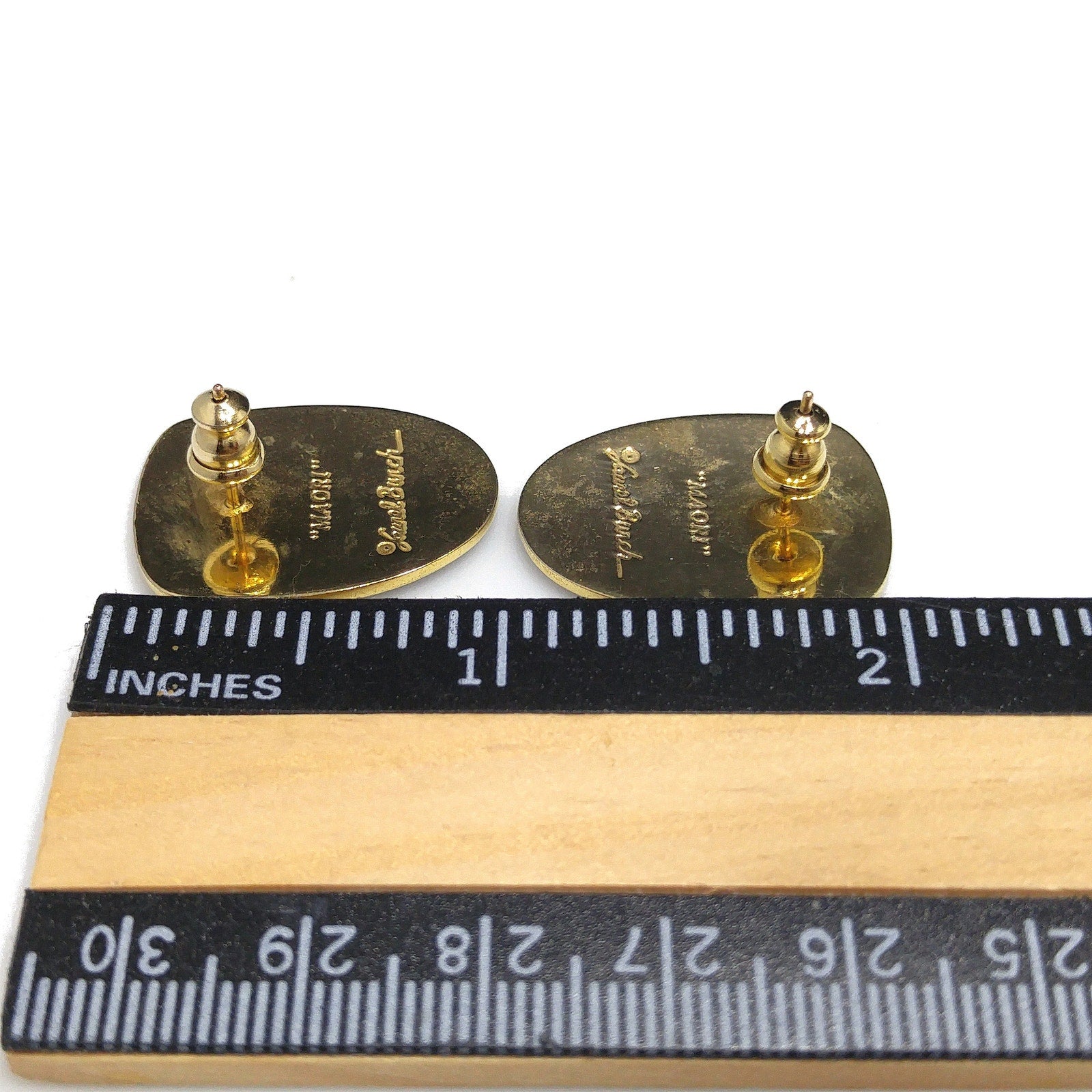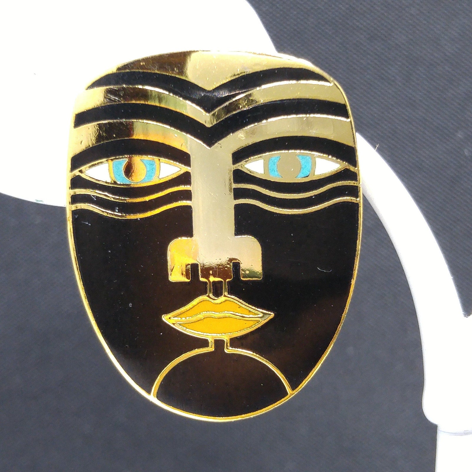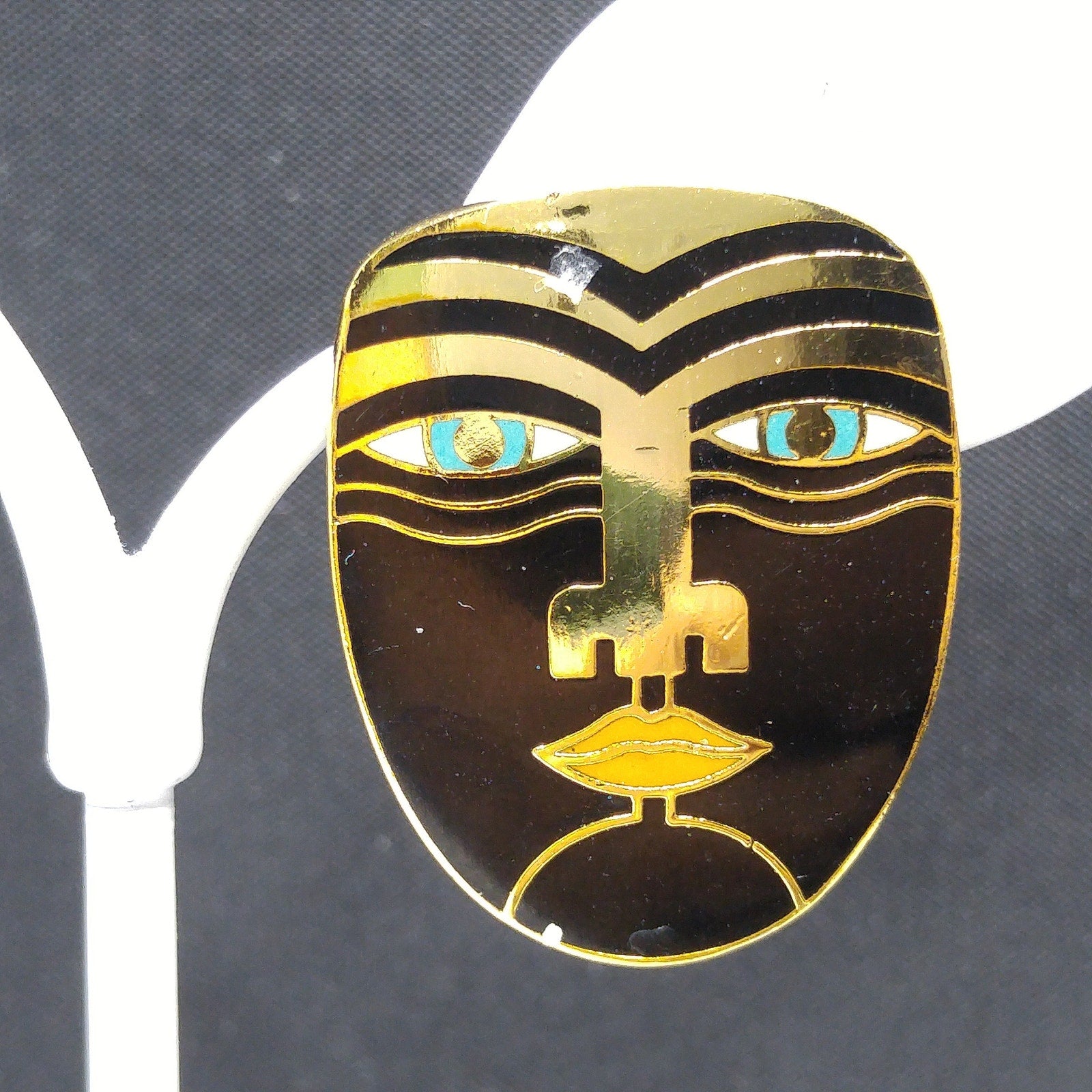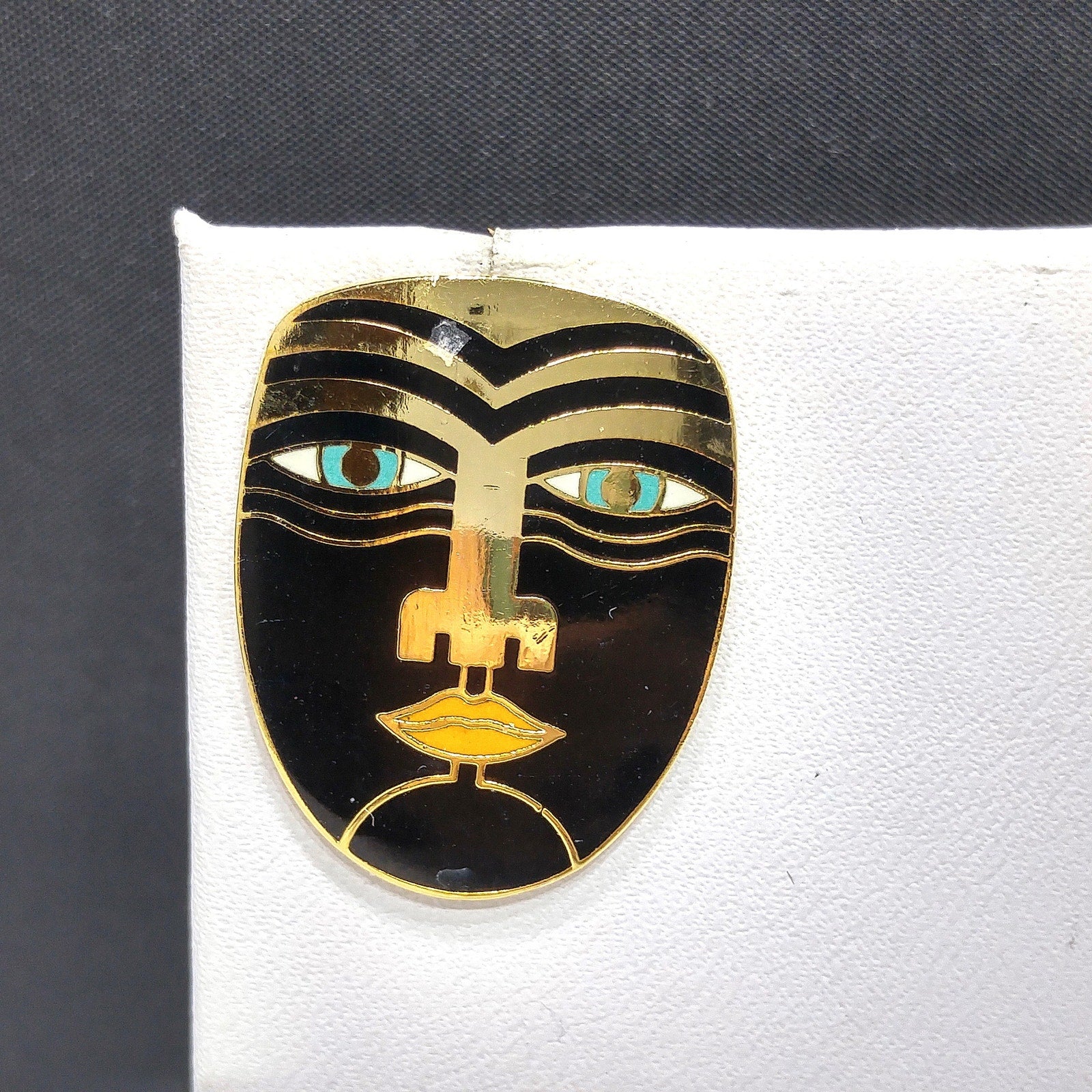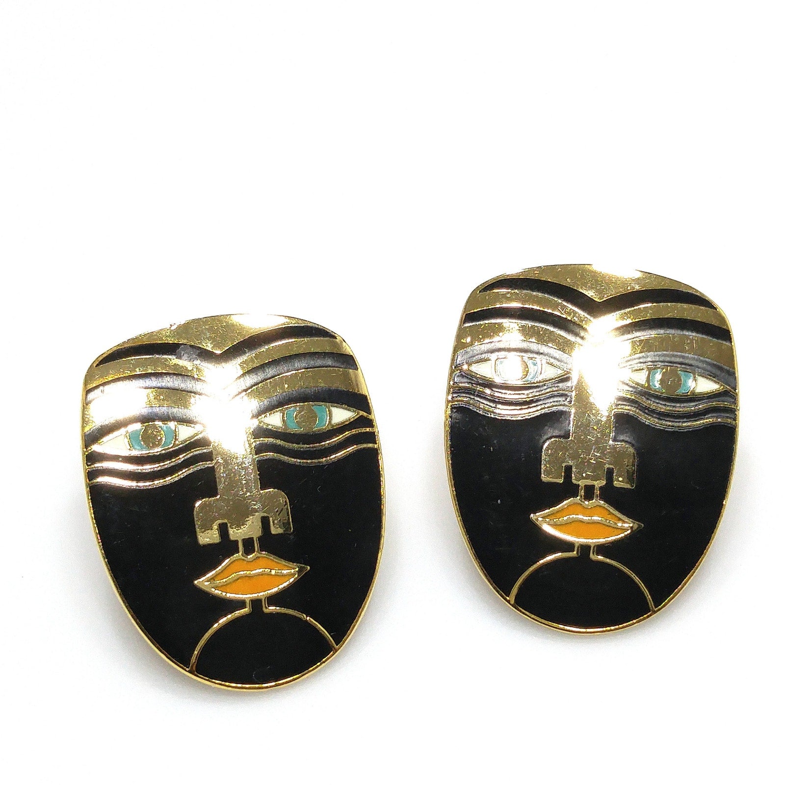 *Description: This is a great pair of Laurel Burch cloisonne post earrings entitled "Maori" from the 1980s. The gold plated cloisonne has a black enamel face with teal and peach accents. The posts are gold filled. Look at the photos closely. There is a little silver mark on one earring on the forehead area. Otherwise, they are in excellent condition. This would be a great addition to your vintage jewelry collection or make a great vintage gift!