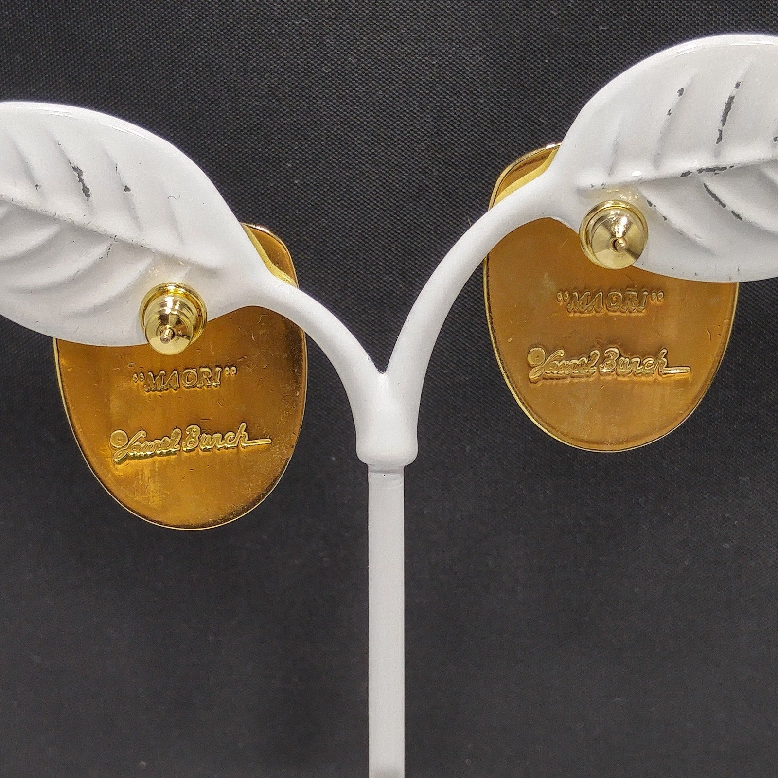 Vintage Laurel Burch "Maori" Post Earrings, Tribal Faces, Gold Plated