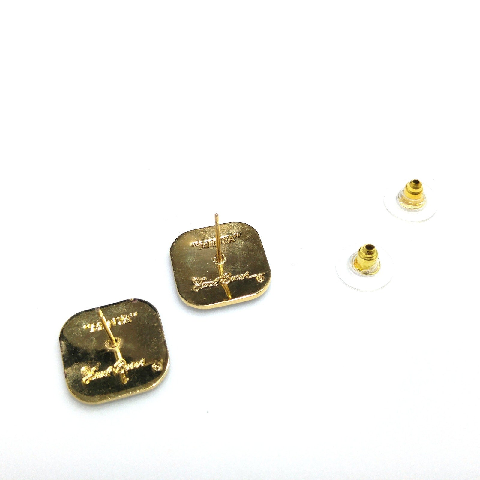Vintage Laurel Burch "Minya" Post Earrings, Gold Plated, Enamel Cloisonne, 1980s