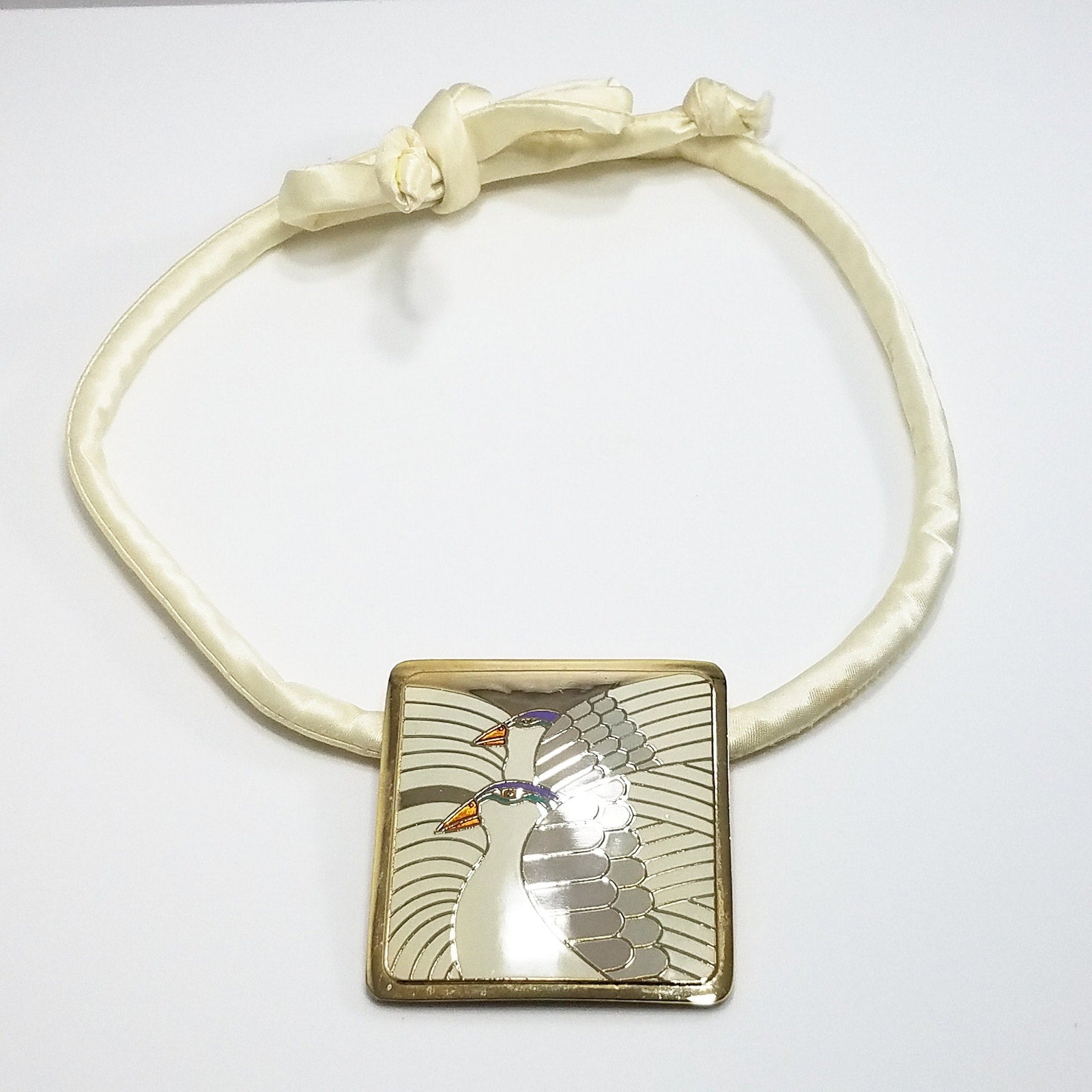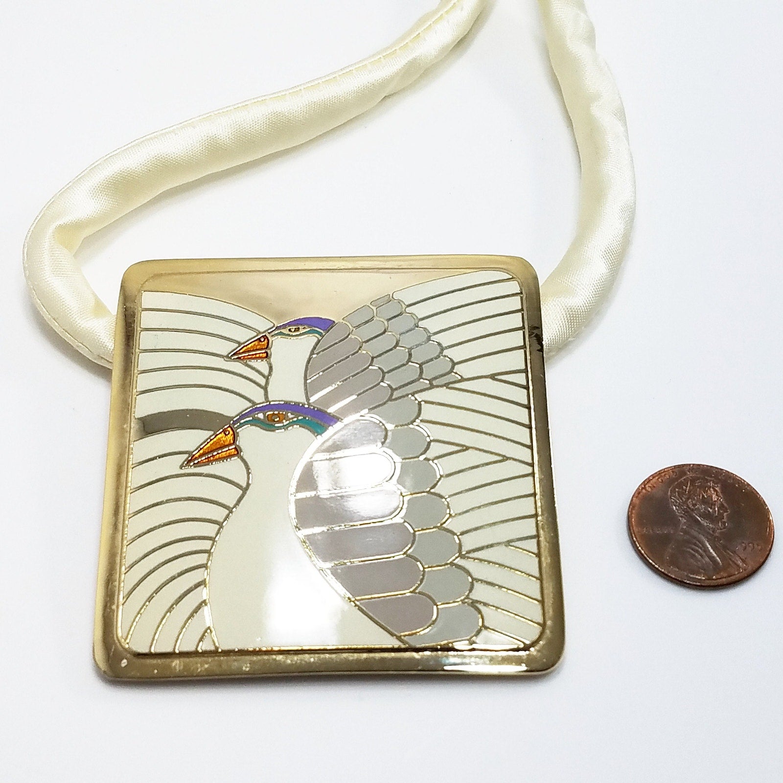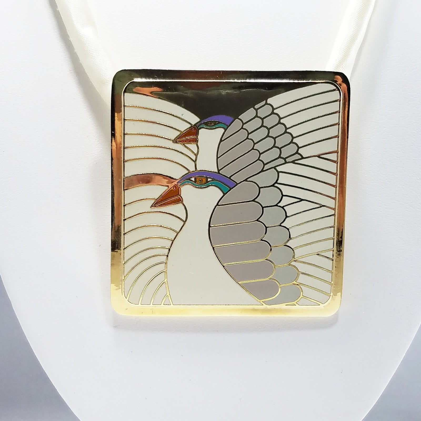 Vintage Laurel Burch "Moon Doves" Pendant Necklace, Gold Plated Cloisonne