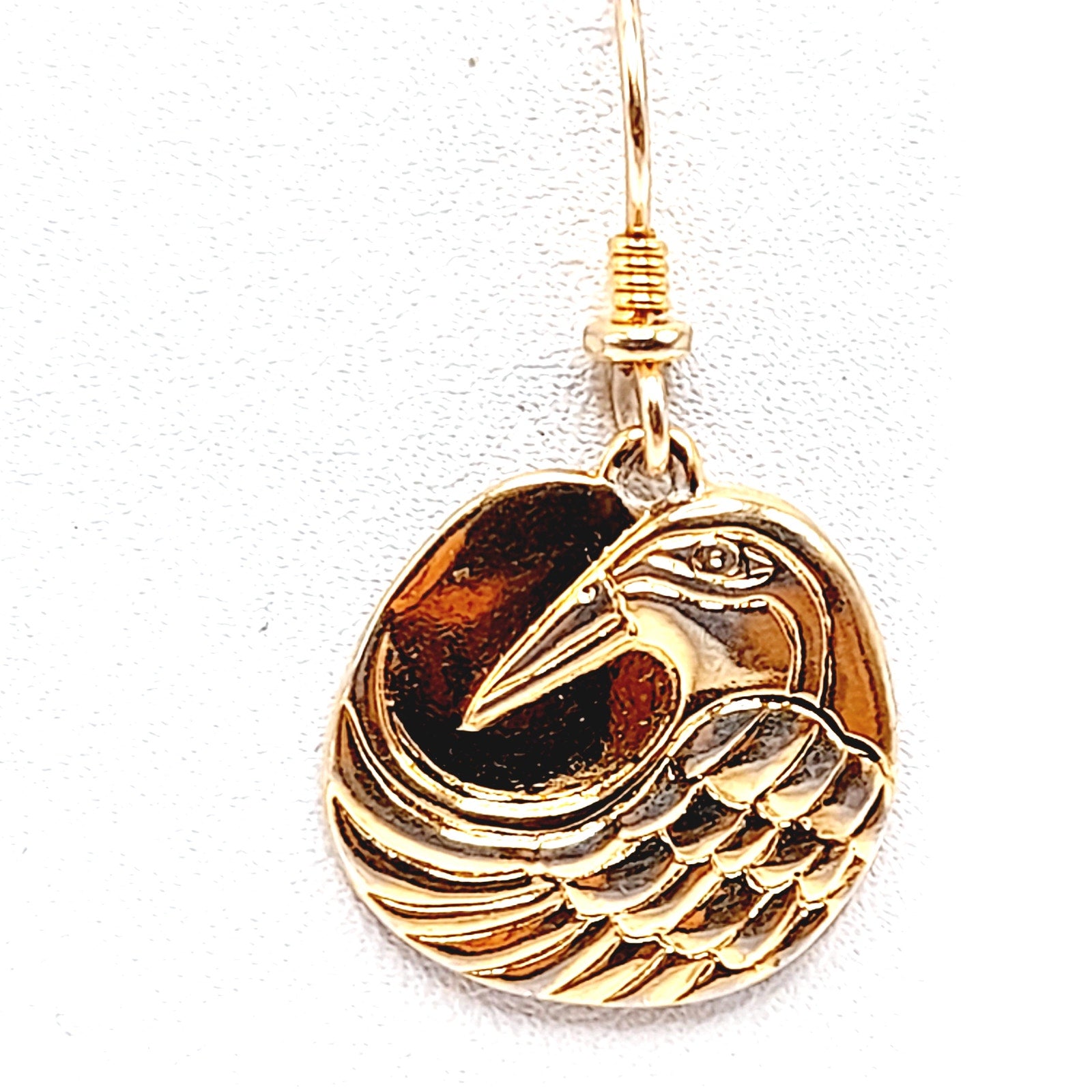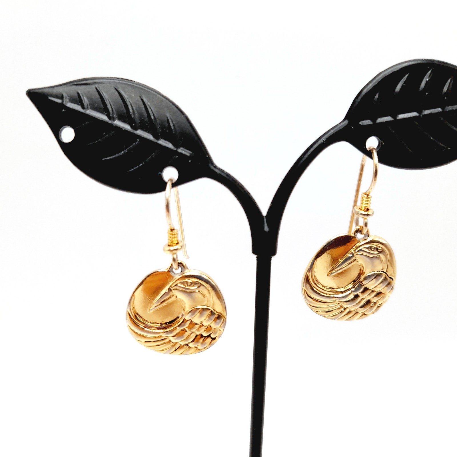 Vintage Laurel Burch Mynah Bird Gold Plated Drop Earrings - 1 1/4 Inches