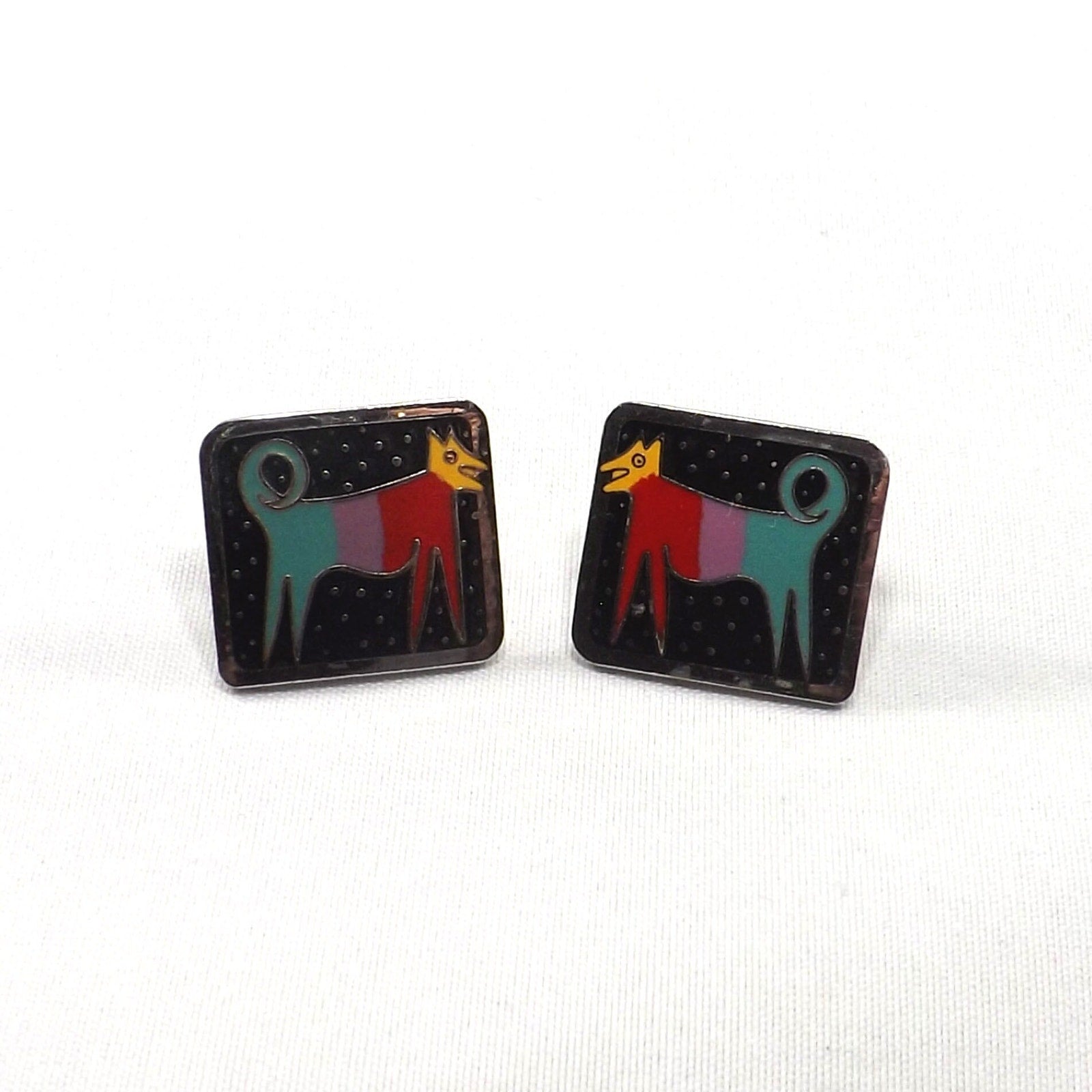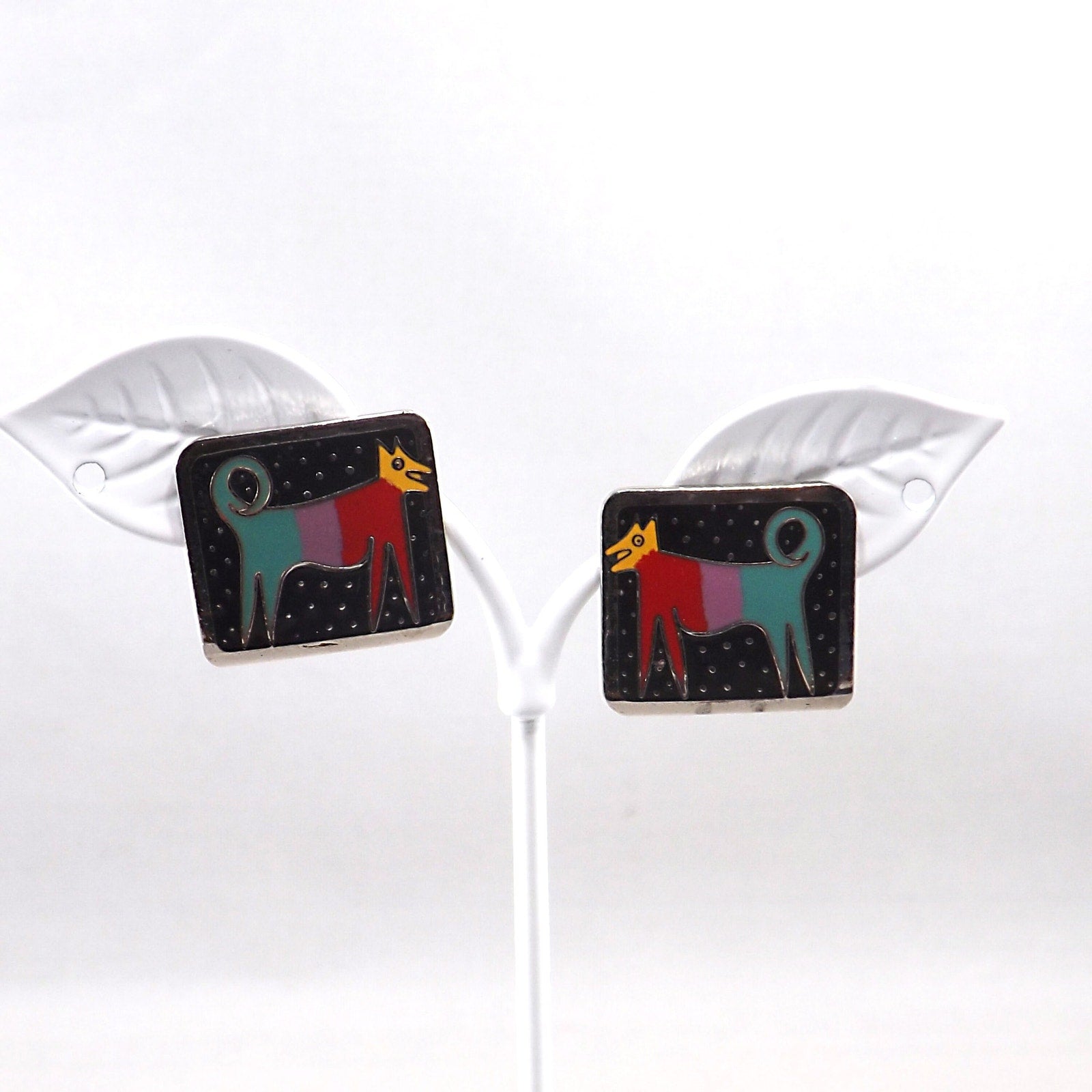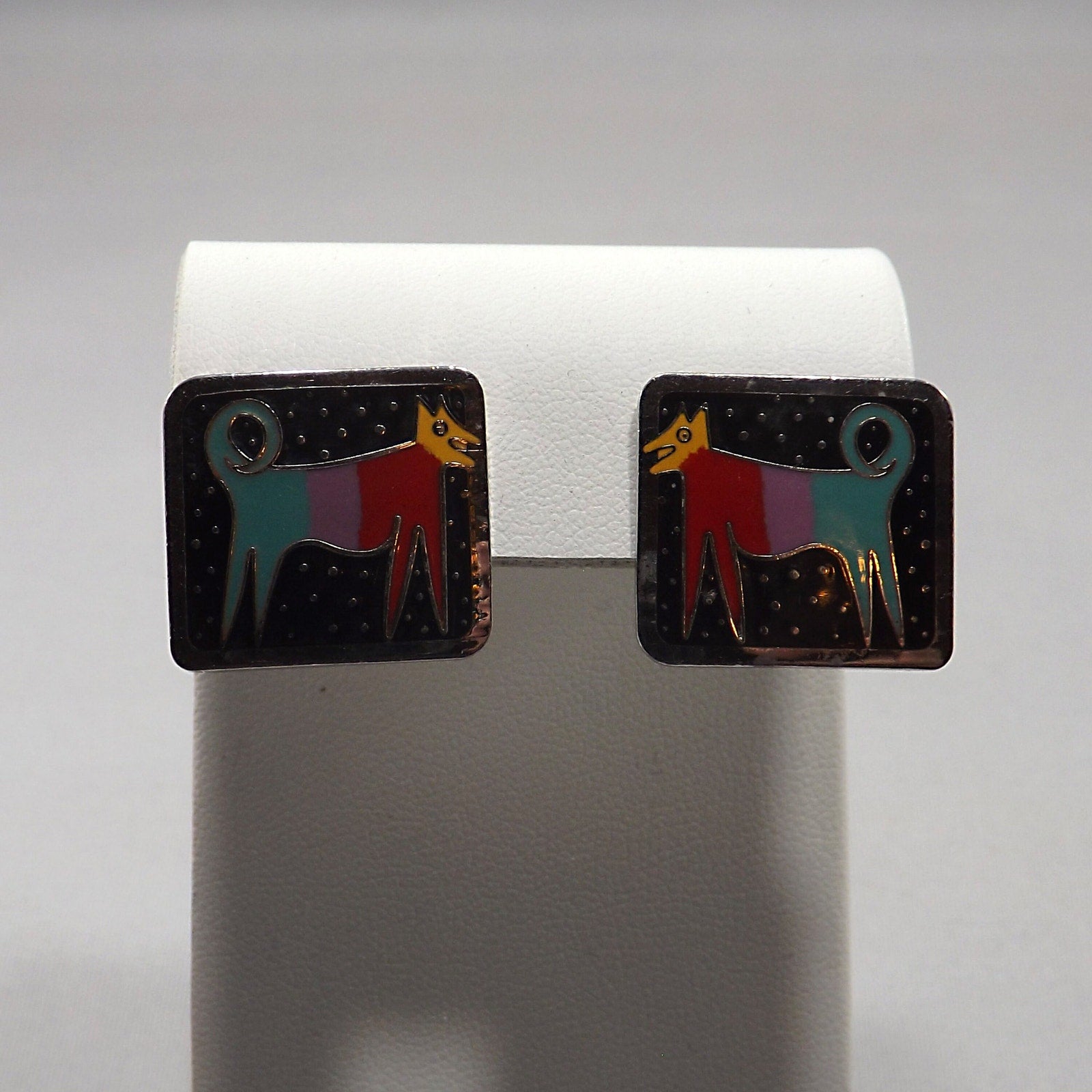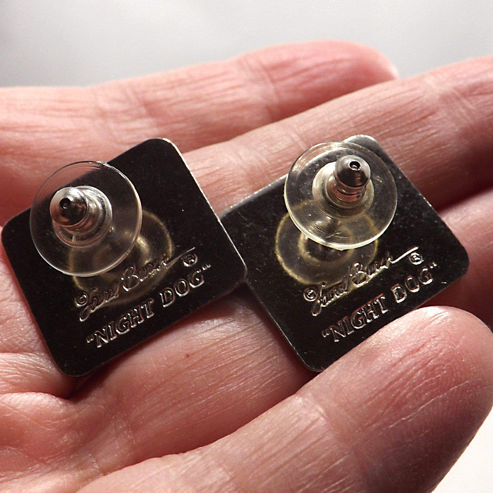 Vintage Laurel Burch "Night Dog" Post Earrings, 1980s Vintage Jewelry