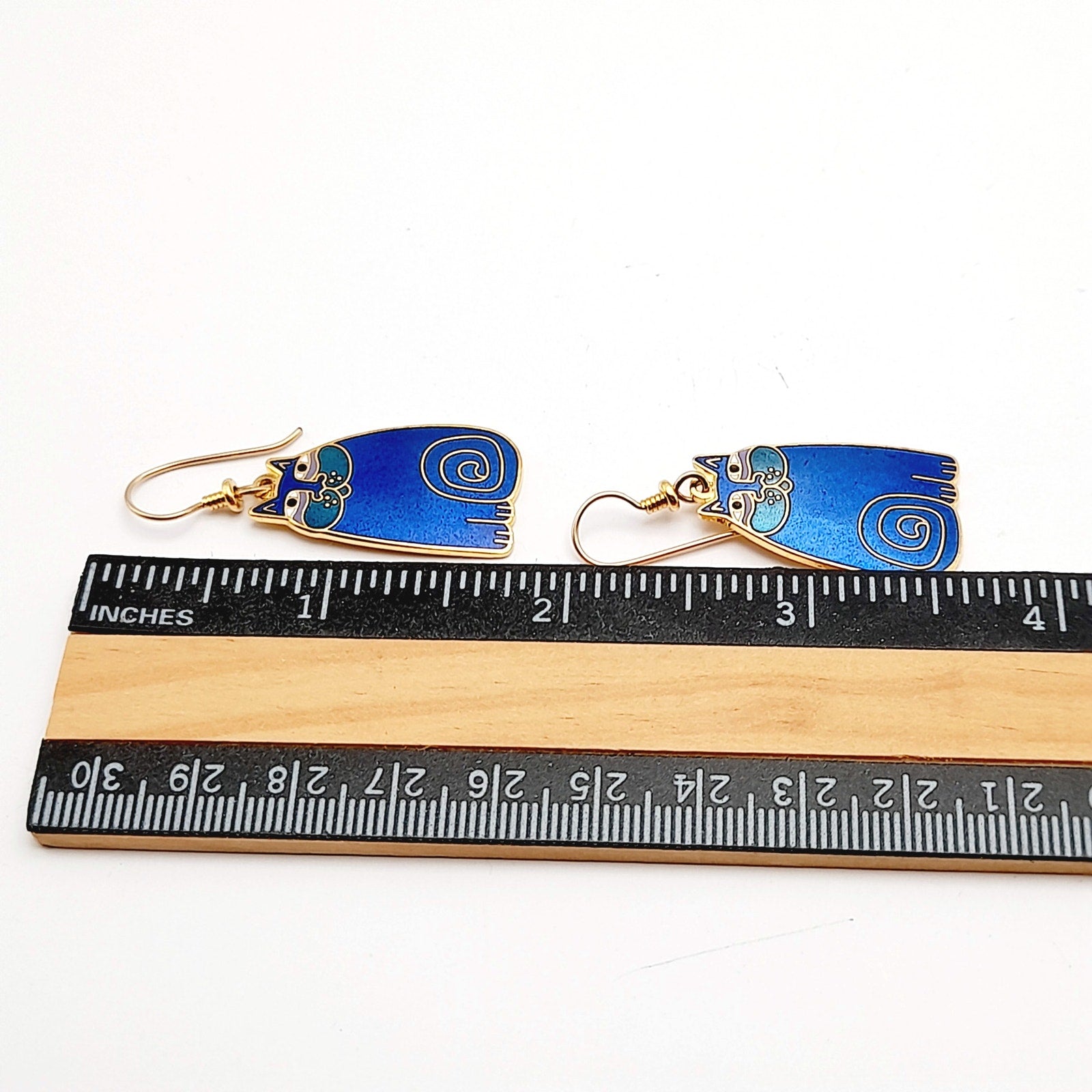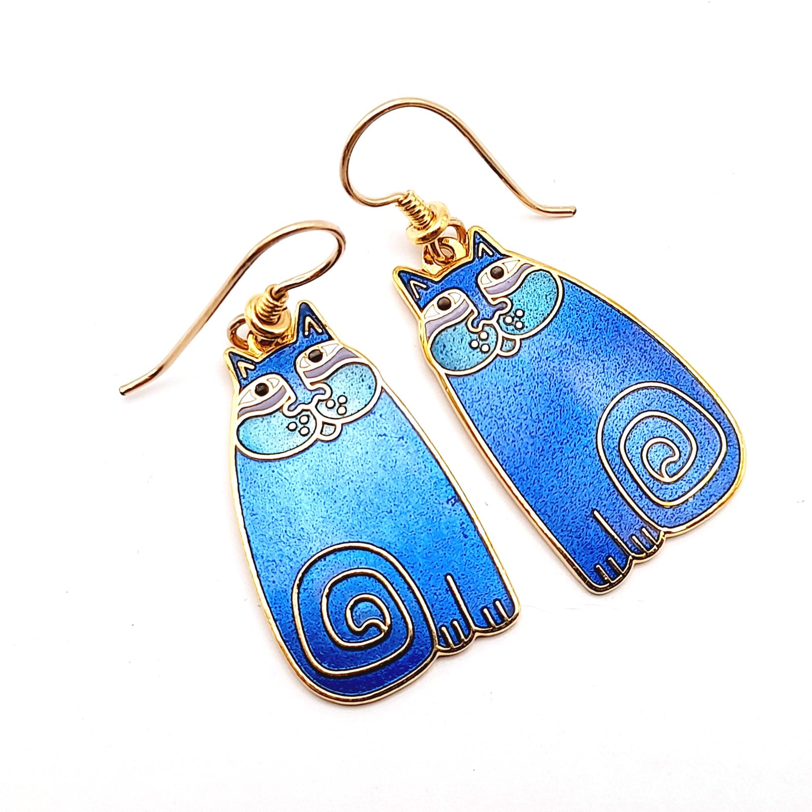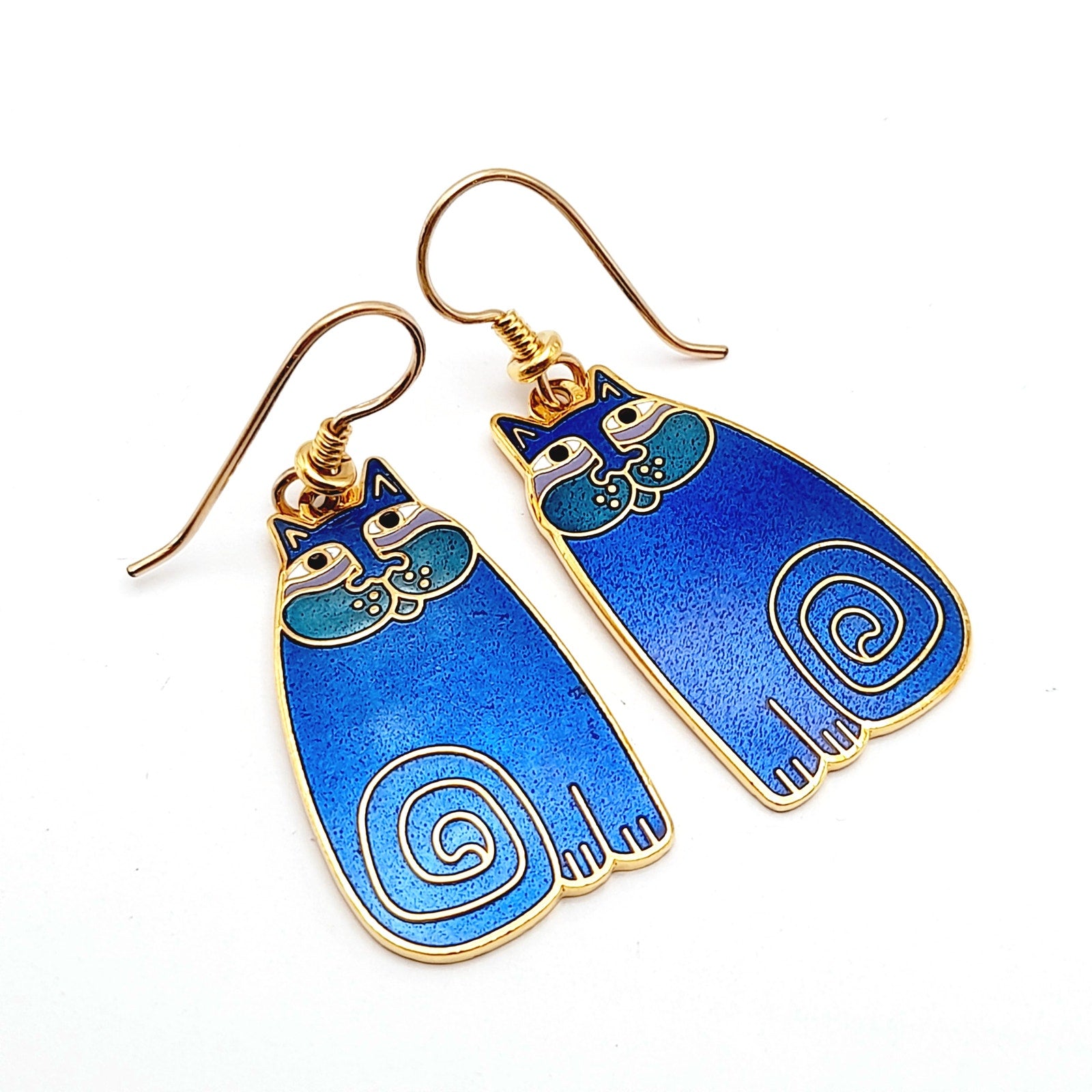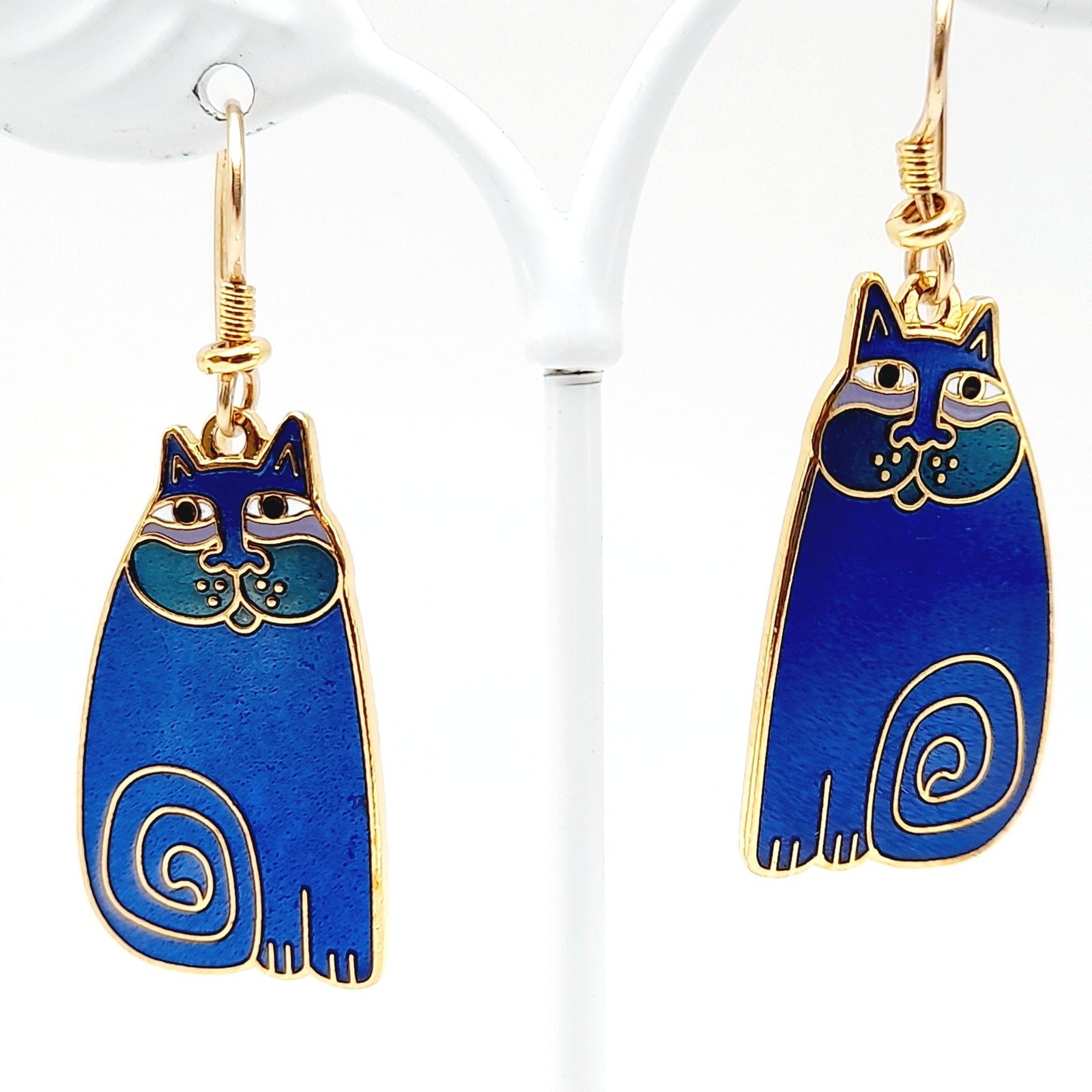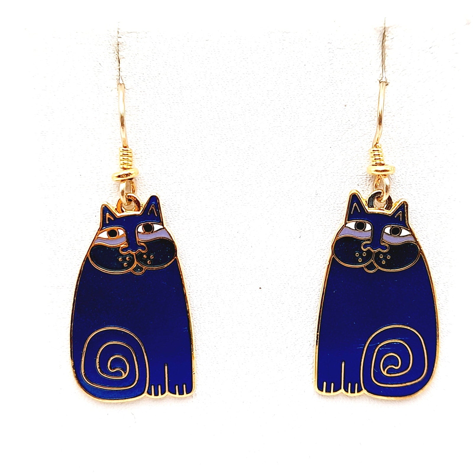 Vintage Laurel Burch Olivia Blue Cat Earrings Gold Plated