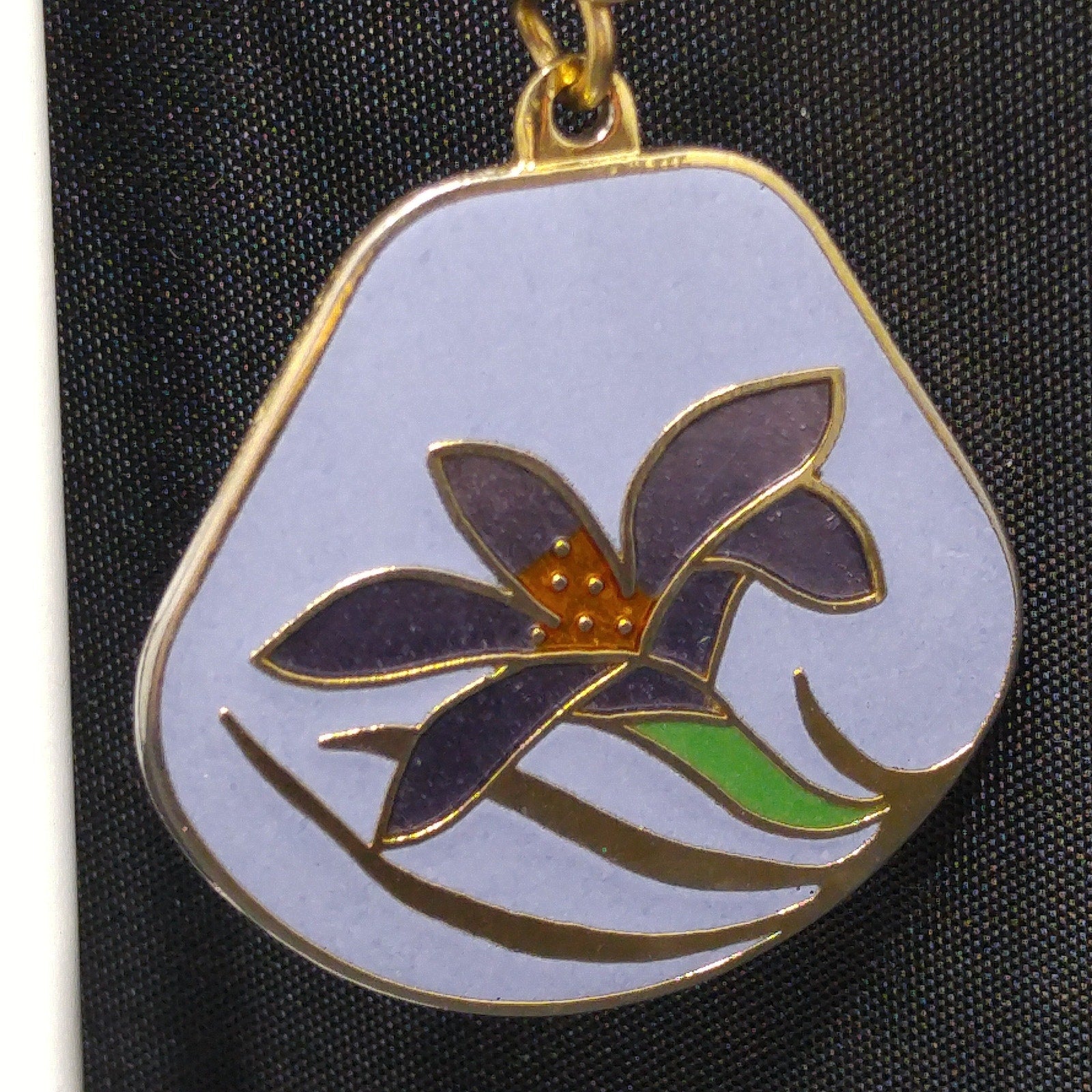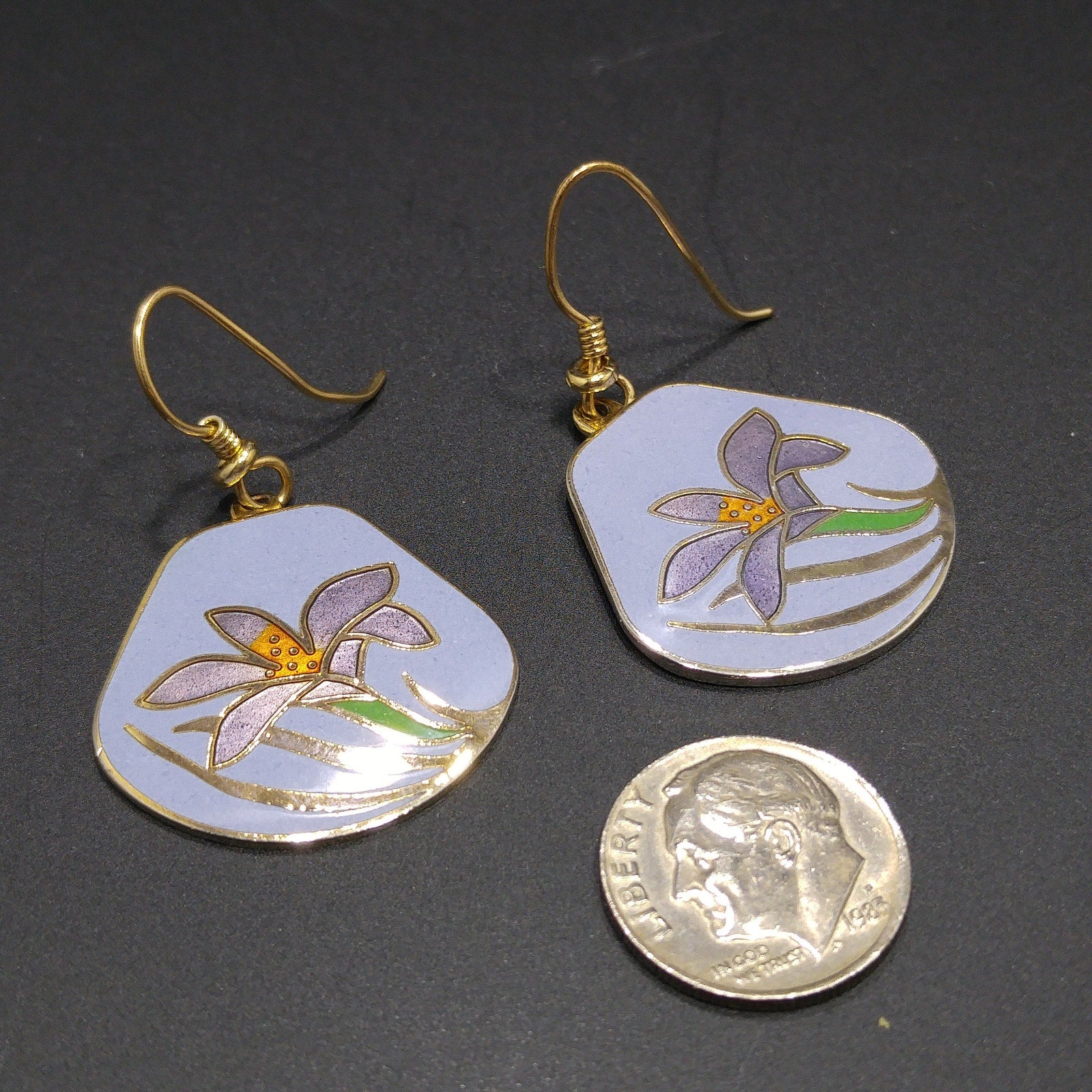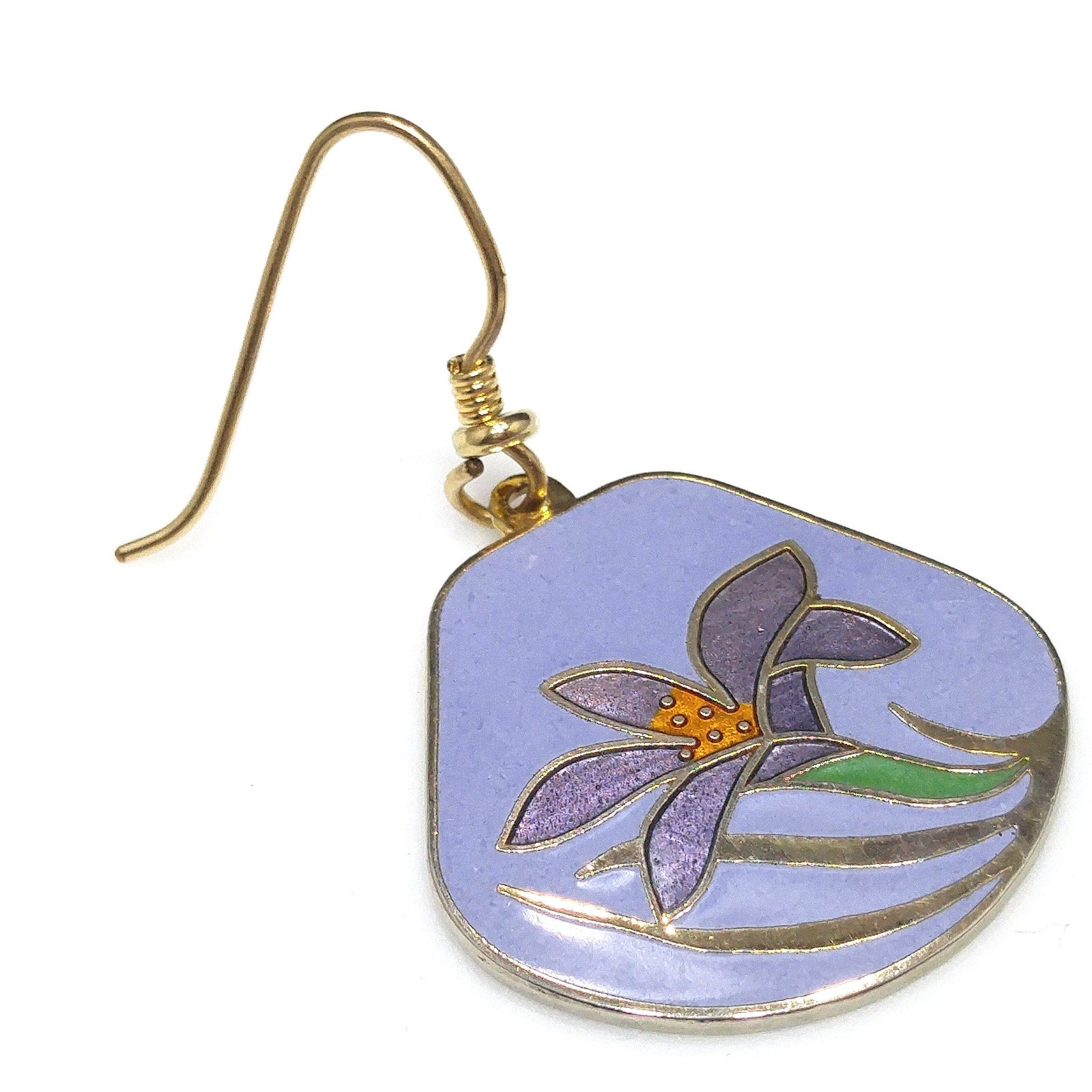 Vintage Laurel Burch Purple Lily Earrings, Cloisonne Enamel, Gold Plated