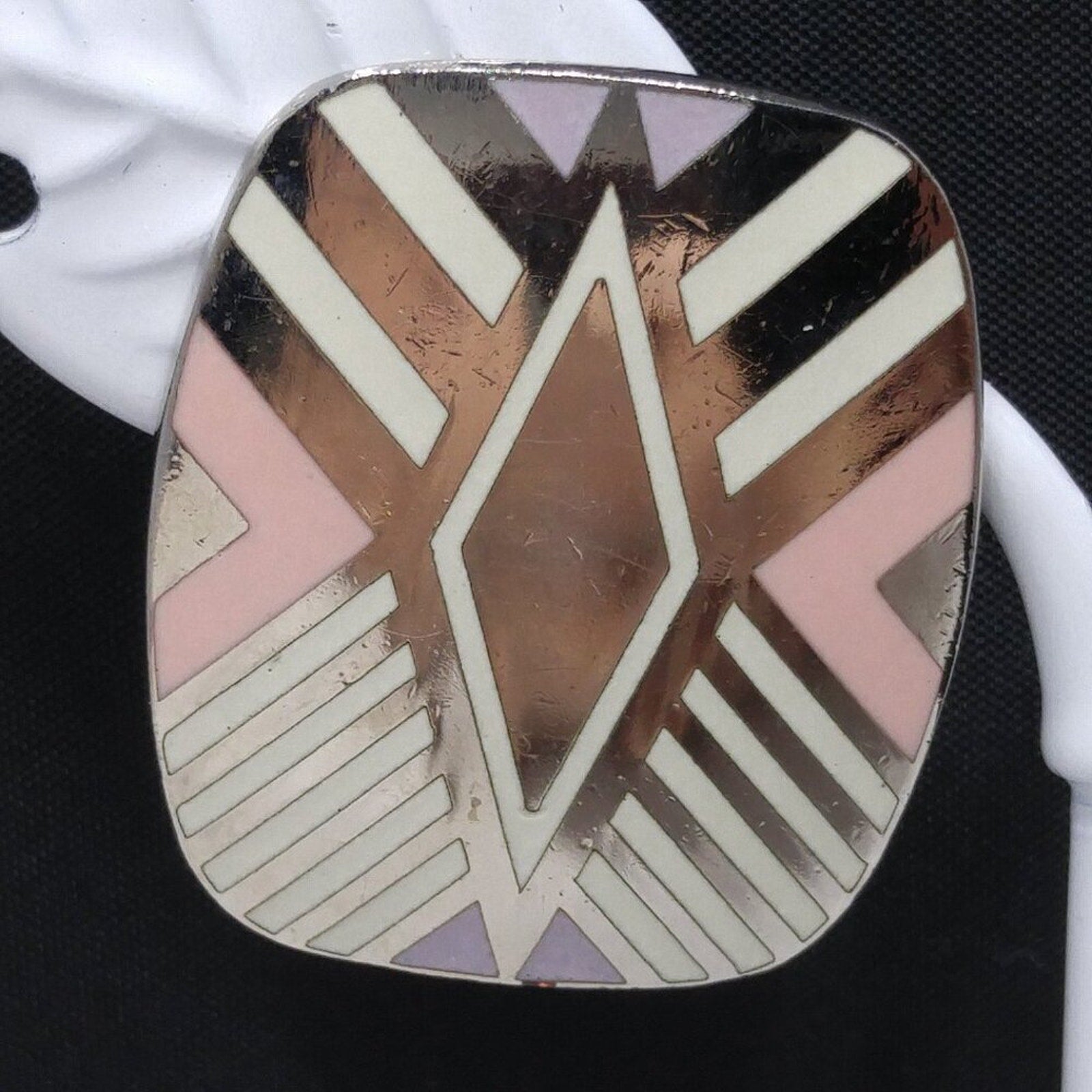 *Description: This is a great design by Laurel Burch from the 1980s entitled "Quintessence". It is on a very reflective silver tone pair of earrings, which tested at 10K gold surface metal, rhodium plated, and cloisonné enamel in pink, lavender, and white. They look beautiful, however, there are a couple of notes to be reviewed by you under the condition section. This is a great pair of earrings to add to your spring and summer outfits.