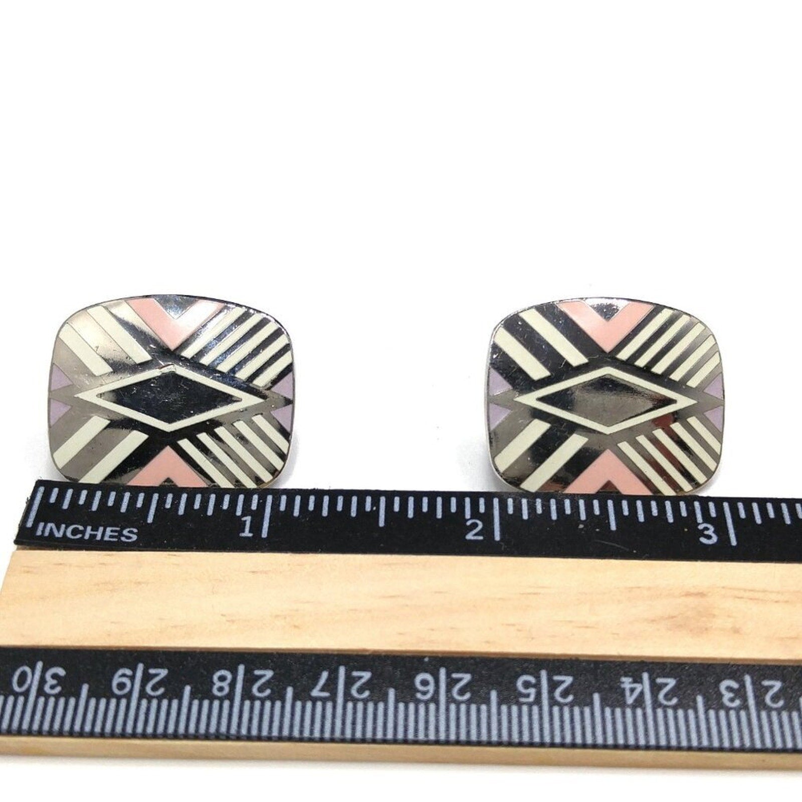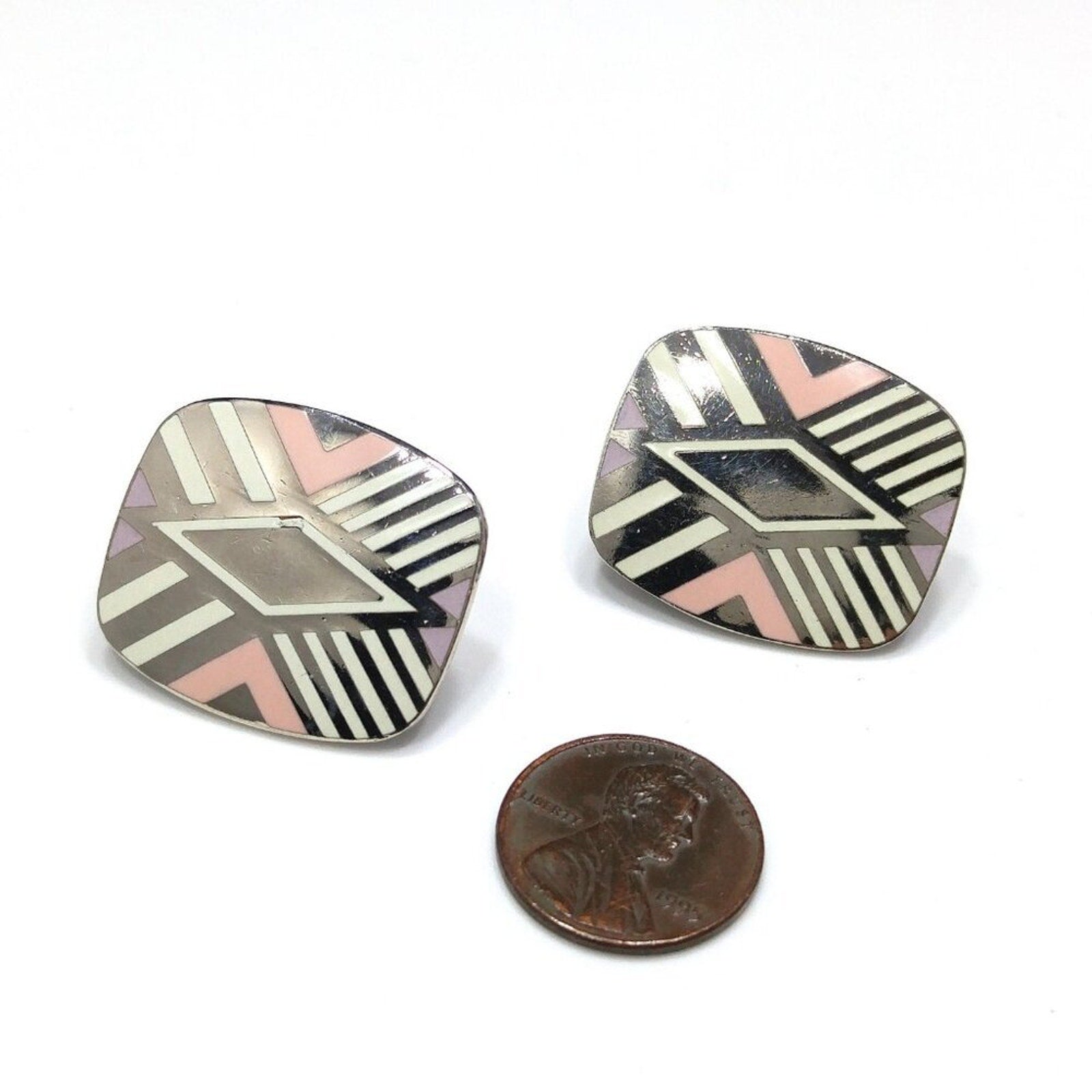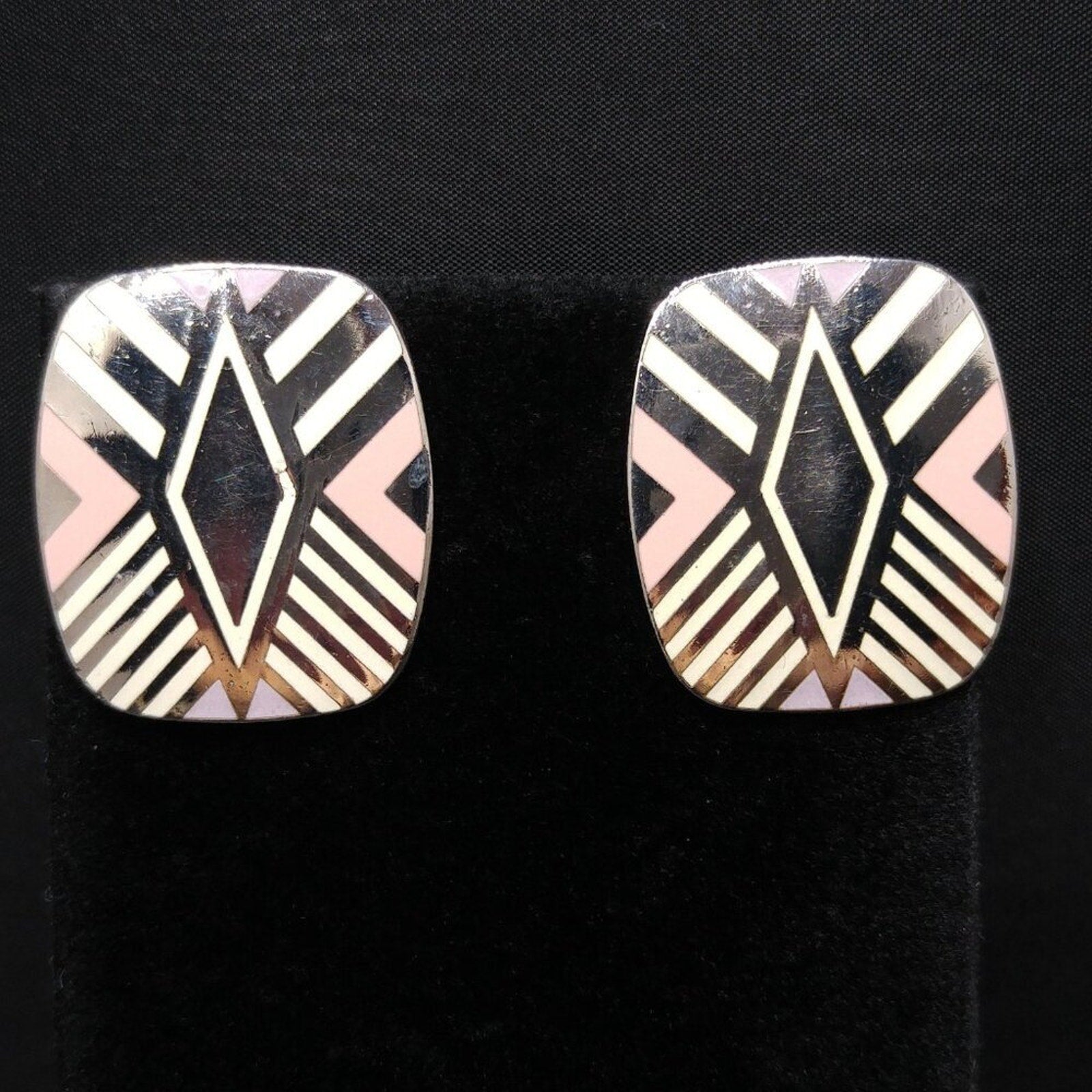 *Condition: Good vintage condition. There are two issues that you need to review. First, one of the posts has been repaired as a new post was securely added, second, there is a tiny crack in the enamel on one of the white stripes on one earring. See photos for details. May see other signs of wear under magnification.
