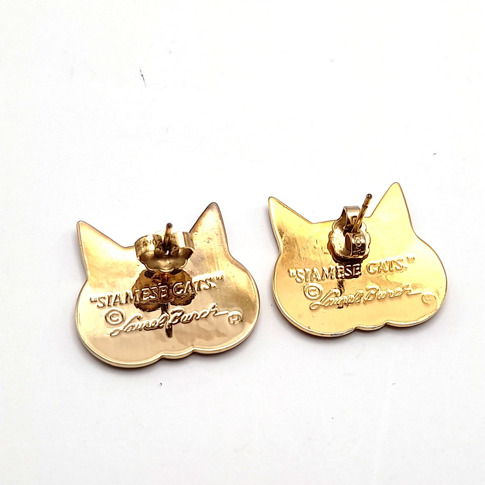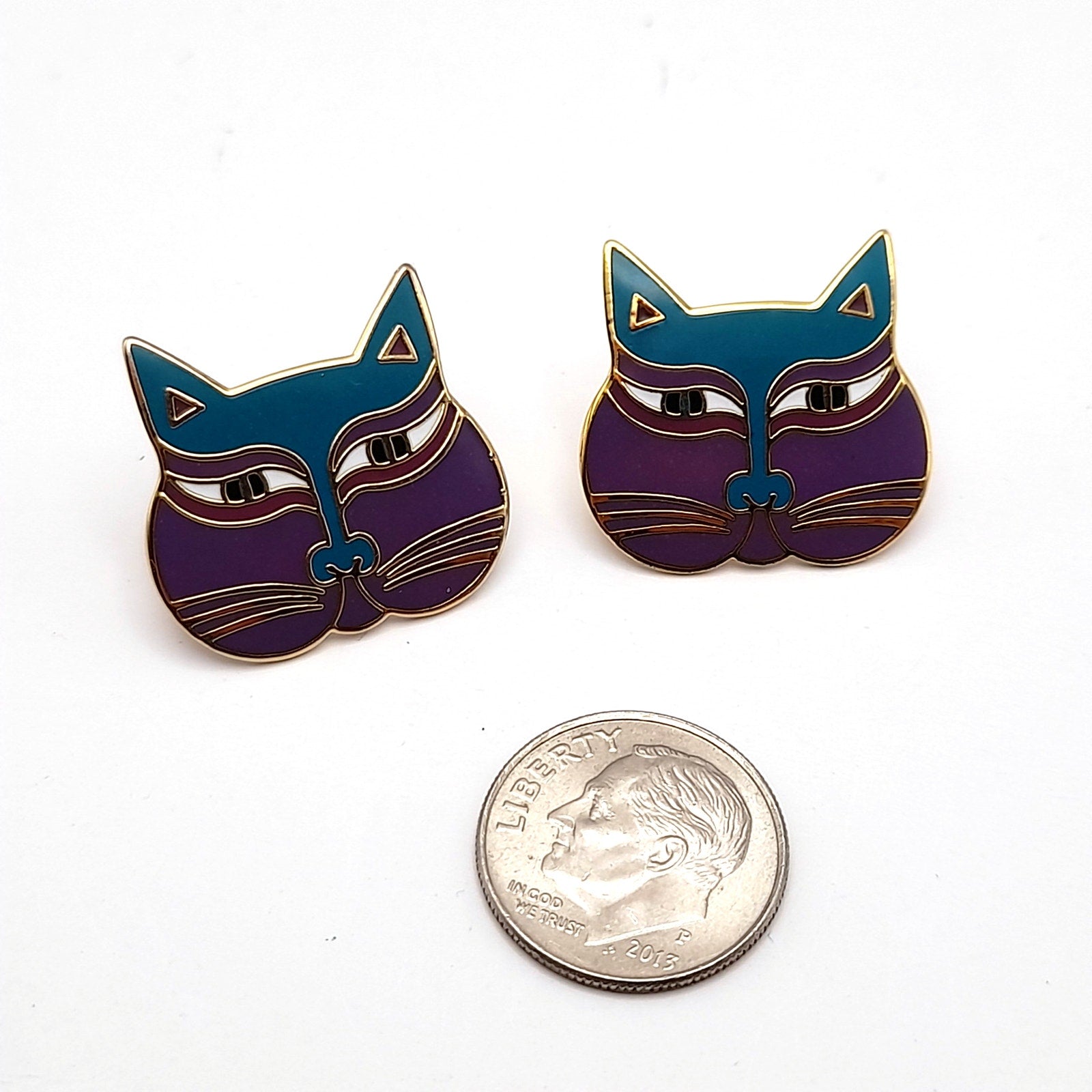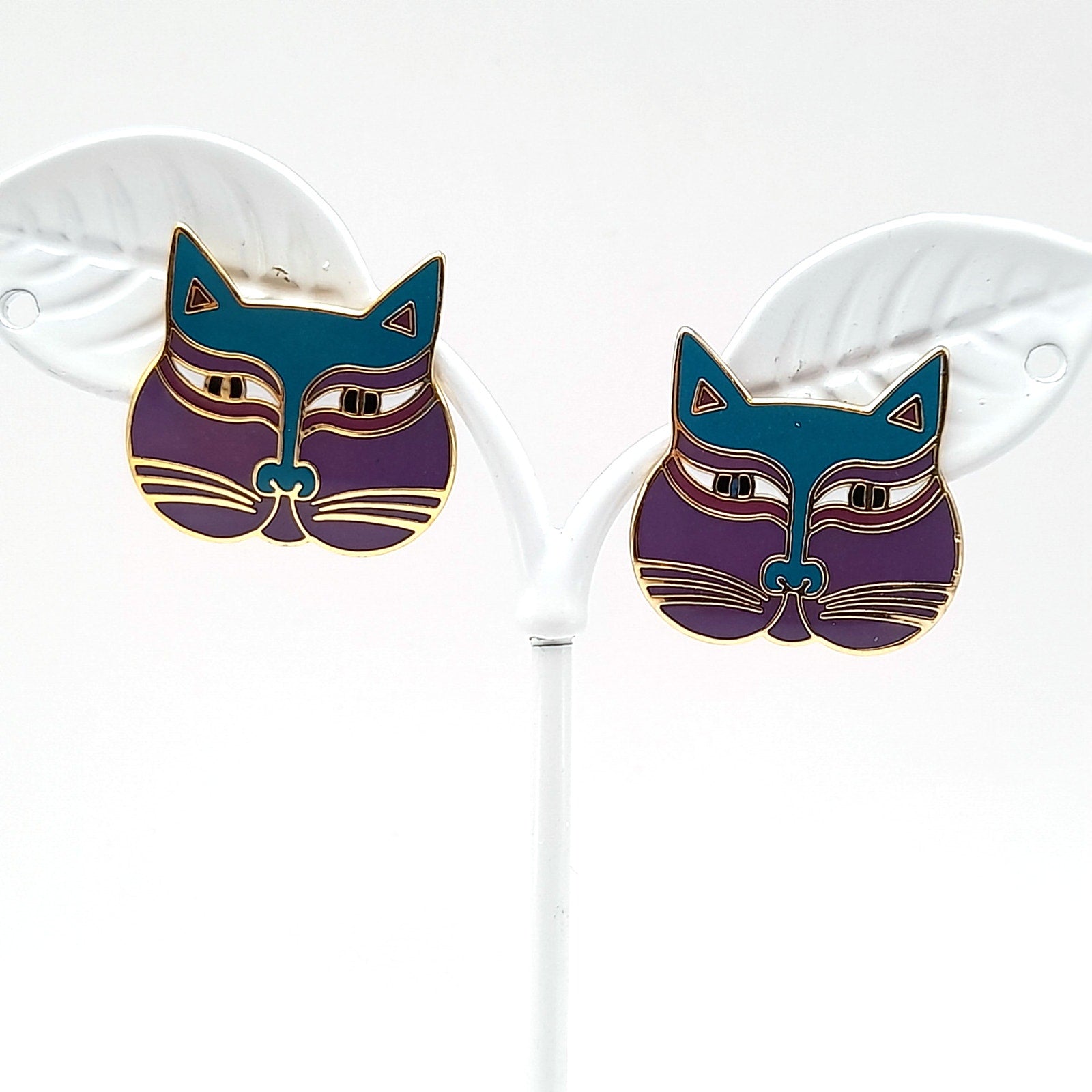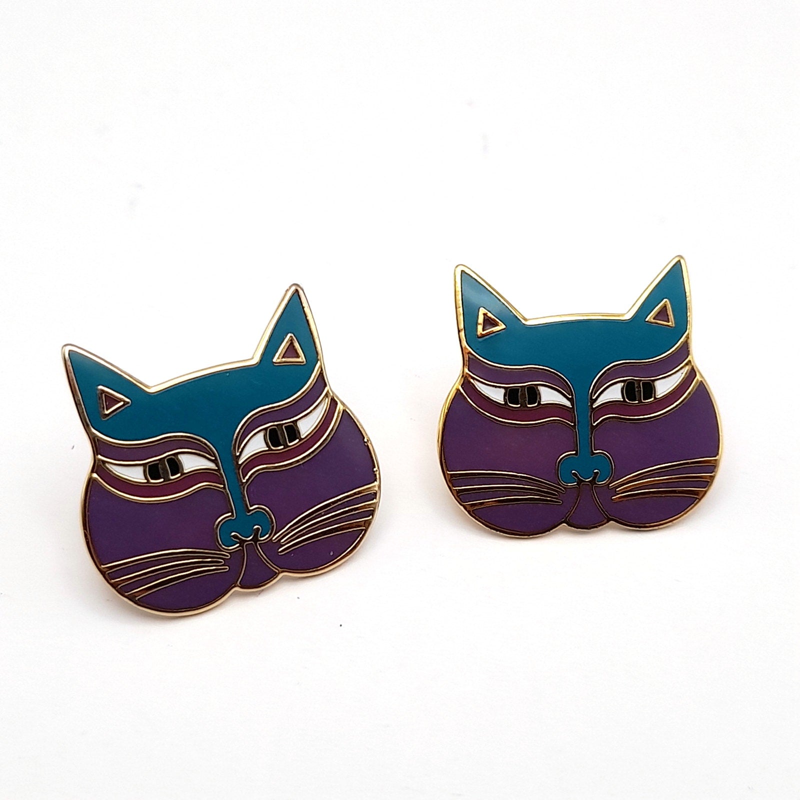 These adorable vintage Laurel Burch "Siamese Cats" post earrings are a must-have for any cat lover! The purple cat face design is eye-catching and unique.