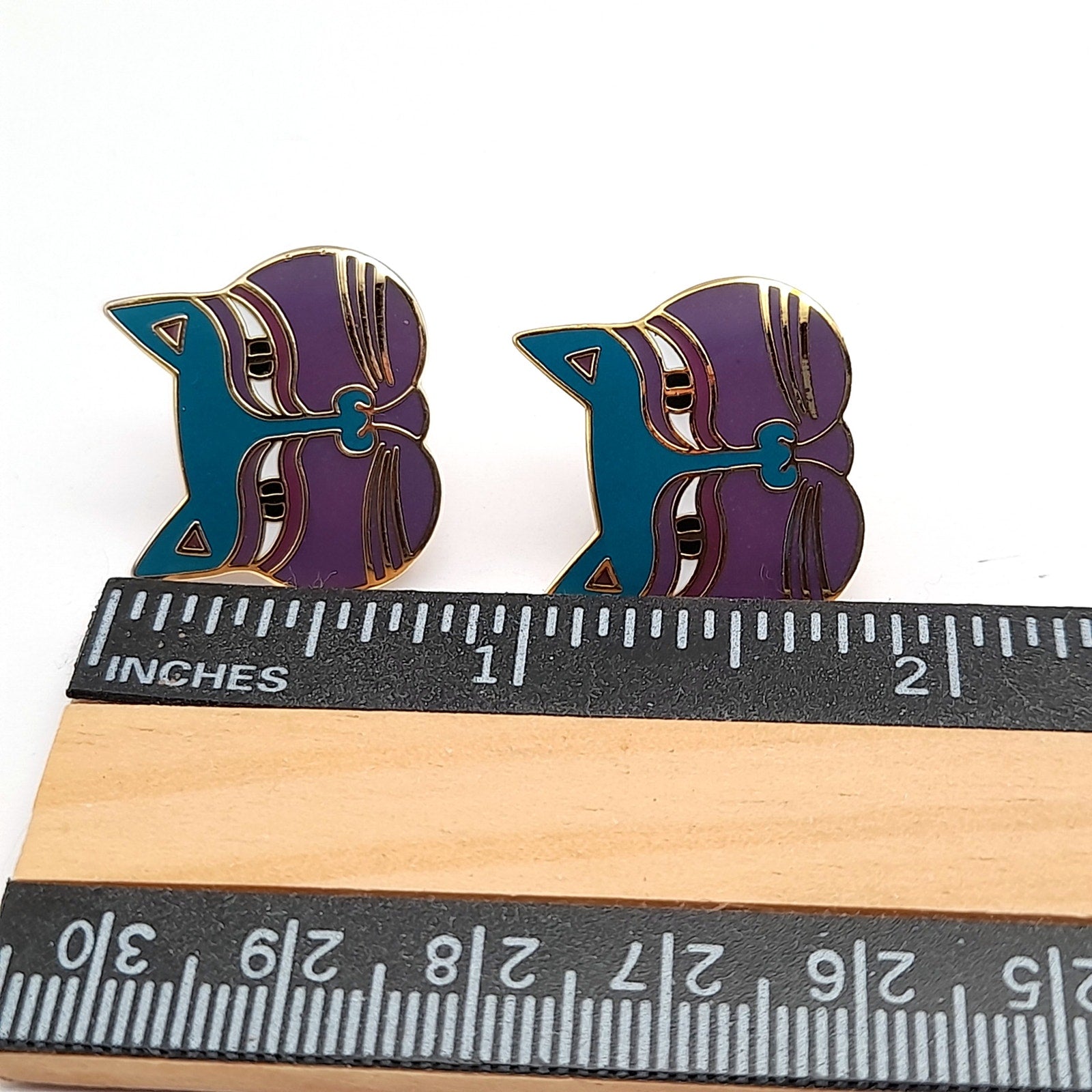 Vintage Laurel Burch Siamese Cats Purple Face Post Earrings