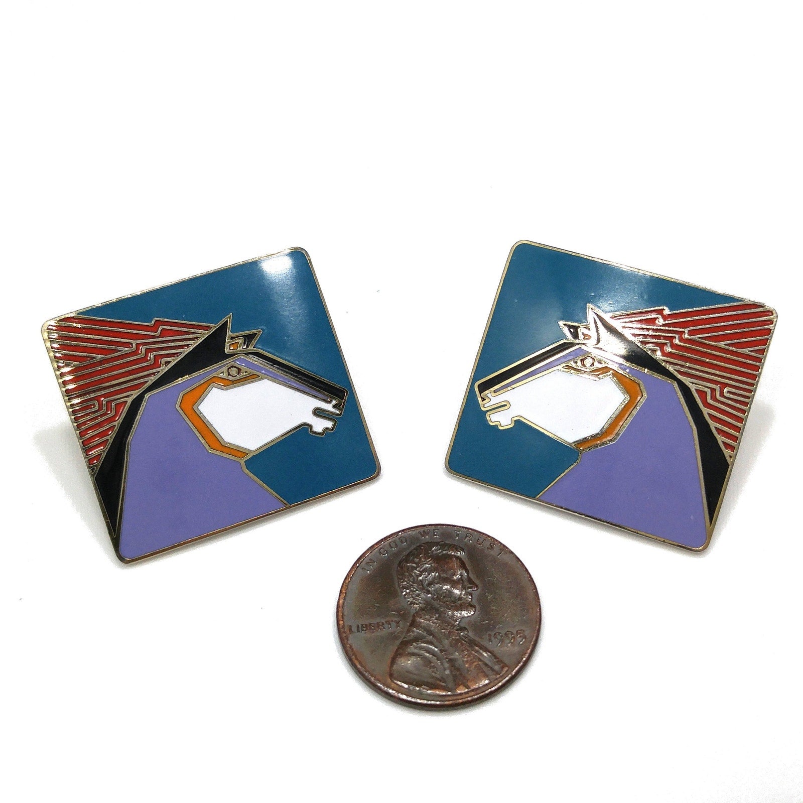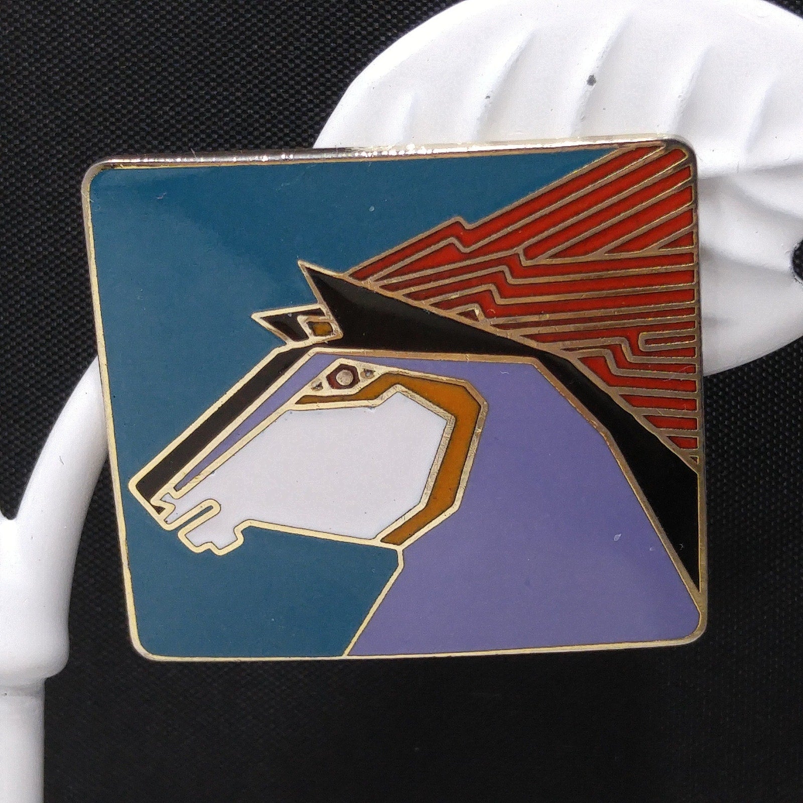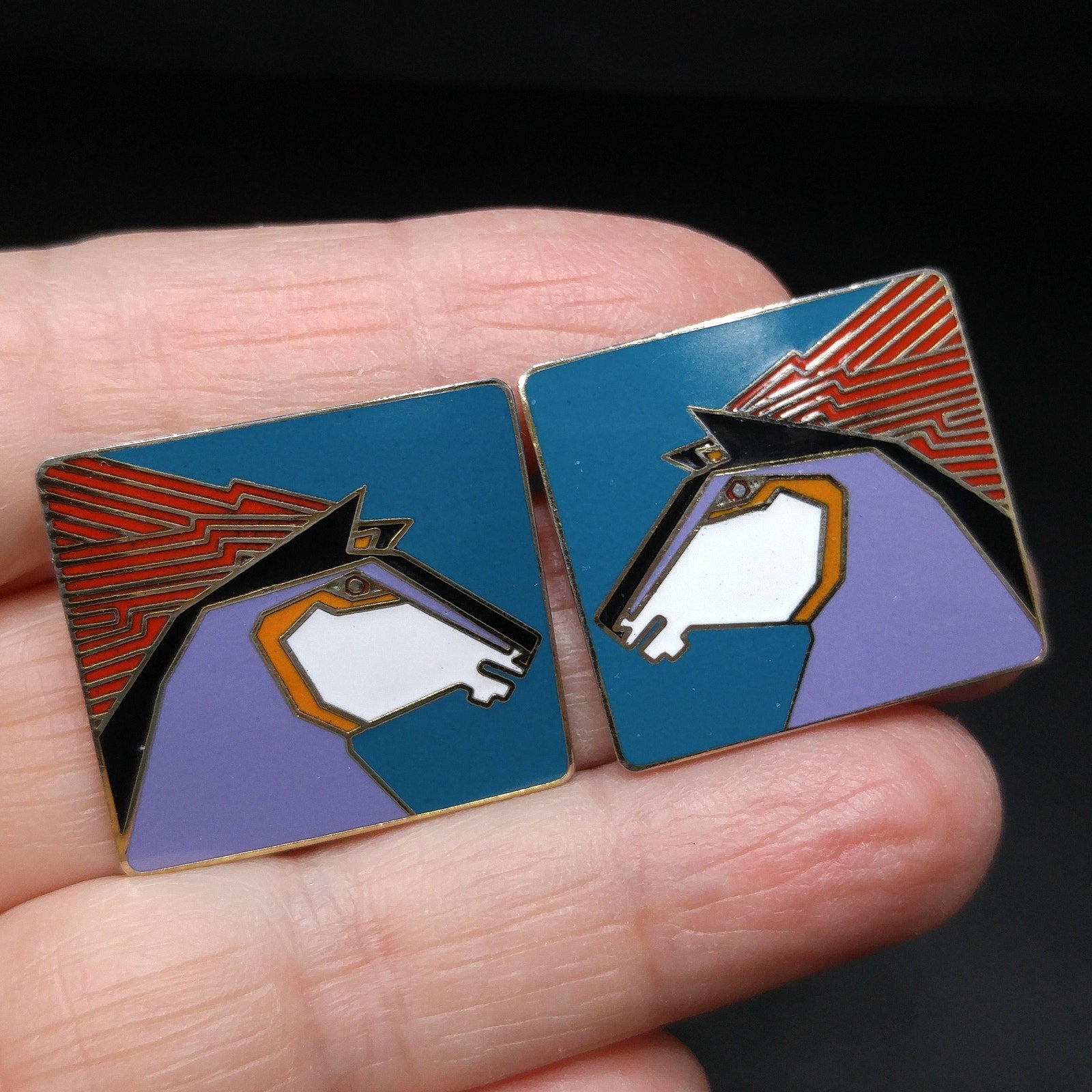 *Description: This is a beautiful pair of Laurel Burch "Stallion" horse cloisonné earrings from the 1980s. The earrings are gold plated and have enamel in teal blue, lavender, red, black, white, and orange. The front of each earring looks great. The back of each earring shows plating and surface wear. This color combination is more rare than some of the other varieties in this design. Perfect pair of earrings for someone who loves horses or all animals. This would be a great addition to your vintage jewelry collection or make a great vintage gift!