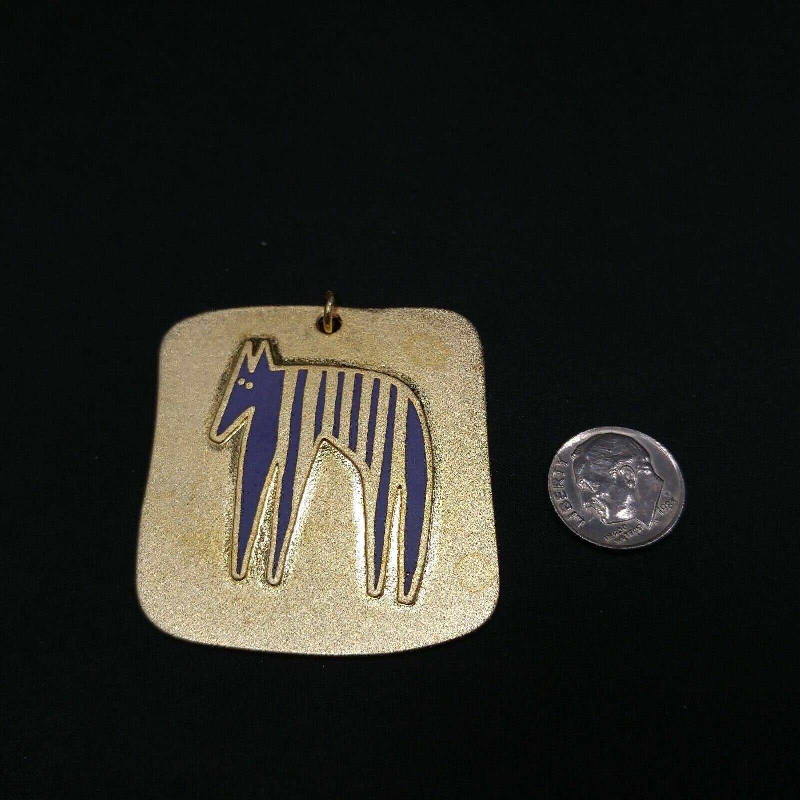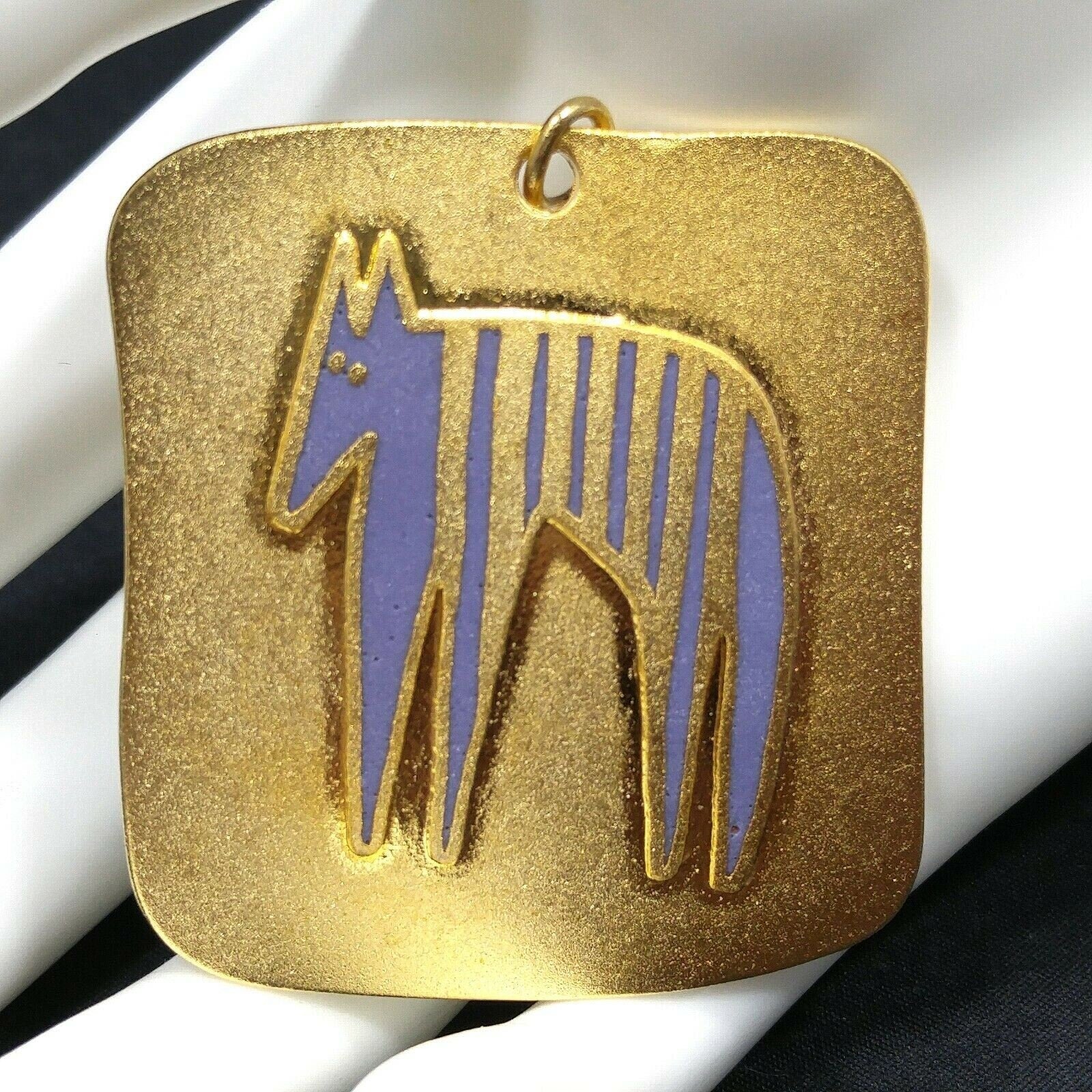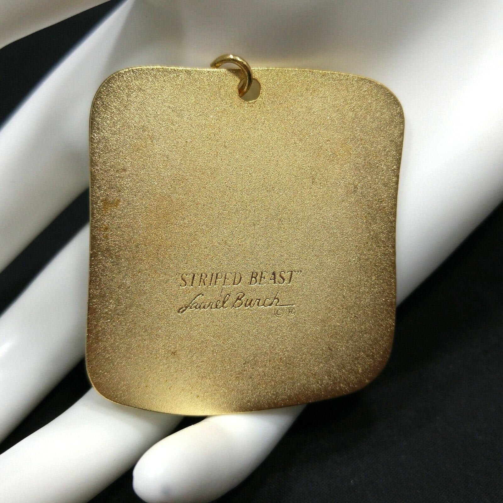 *Description: This is a great Laurel Burch pendant entitled "Striped Beast" from the late 1980s to 1990s. It is a gold plated satin finish with a gold loop bail. You will need to add your own favorite chain. This would be a great addition to your vintage jewelry collection or make a great vintage gift!
